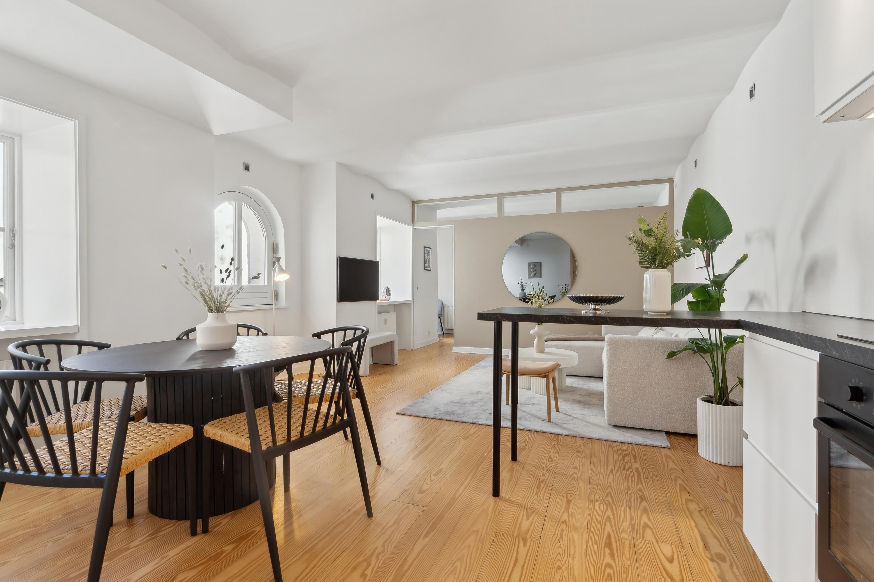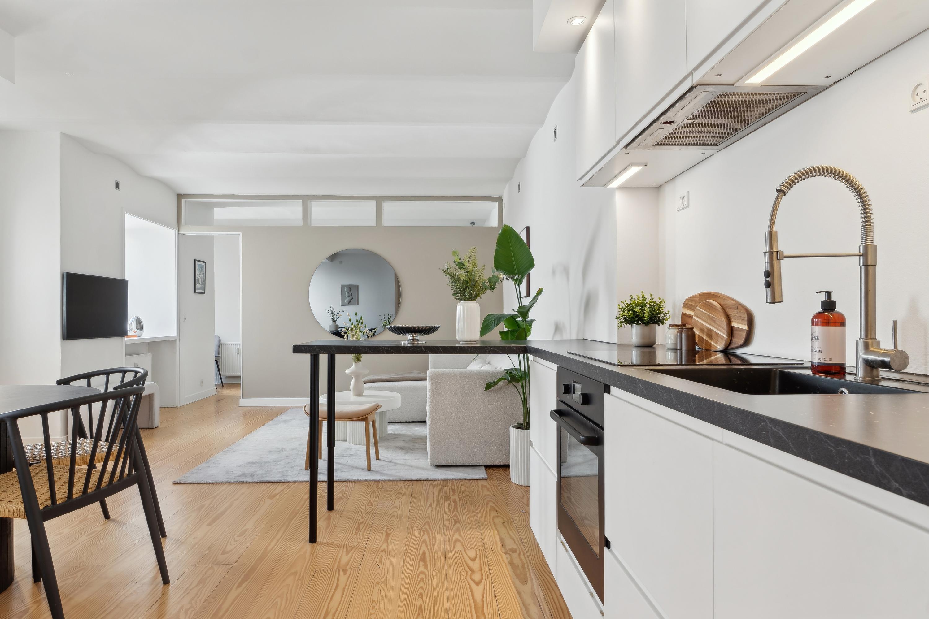 På Dronningens Tværgade 6B i Frederiksstaden finder I denne virkelig attraktive lejlighed, der passer perfekt til parret, der drømmer om et hjem med karakter og en fremragende beliggenhed. Lejligheden fordeler sig over et værelse, et badeværelse og et opholdsmiljø med køkken og stue i forening, og