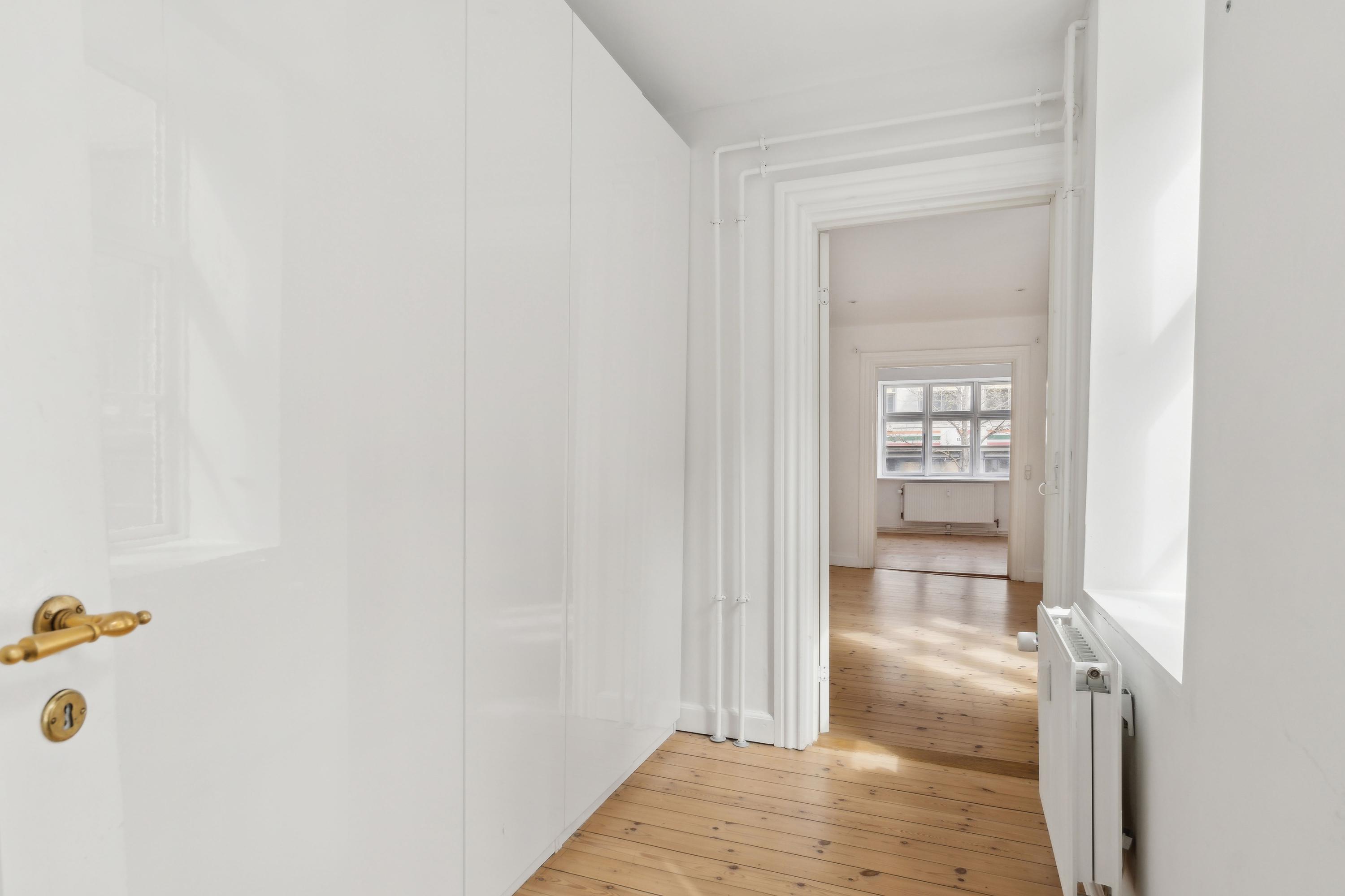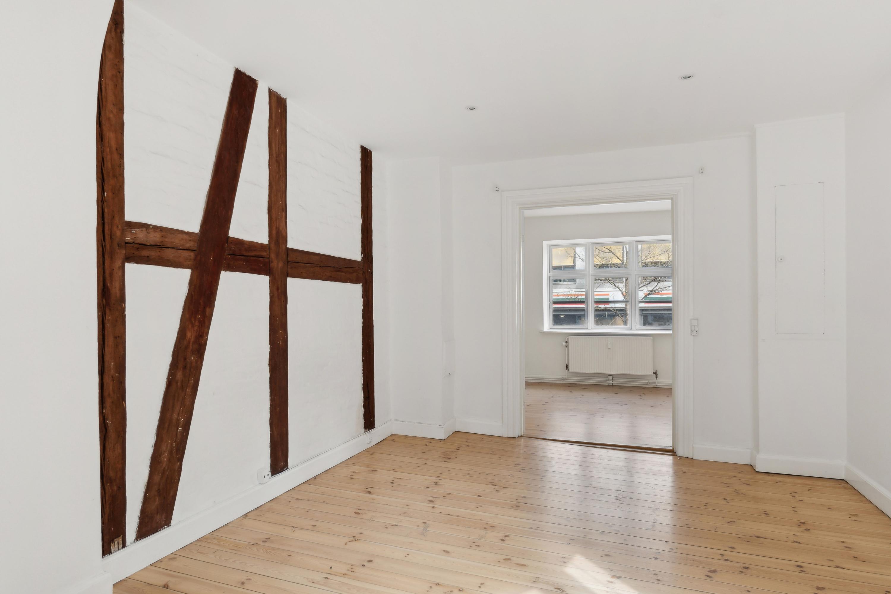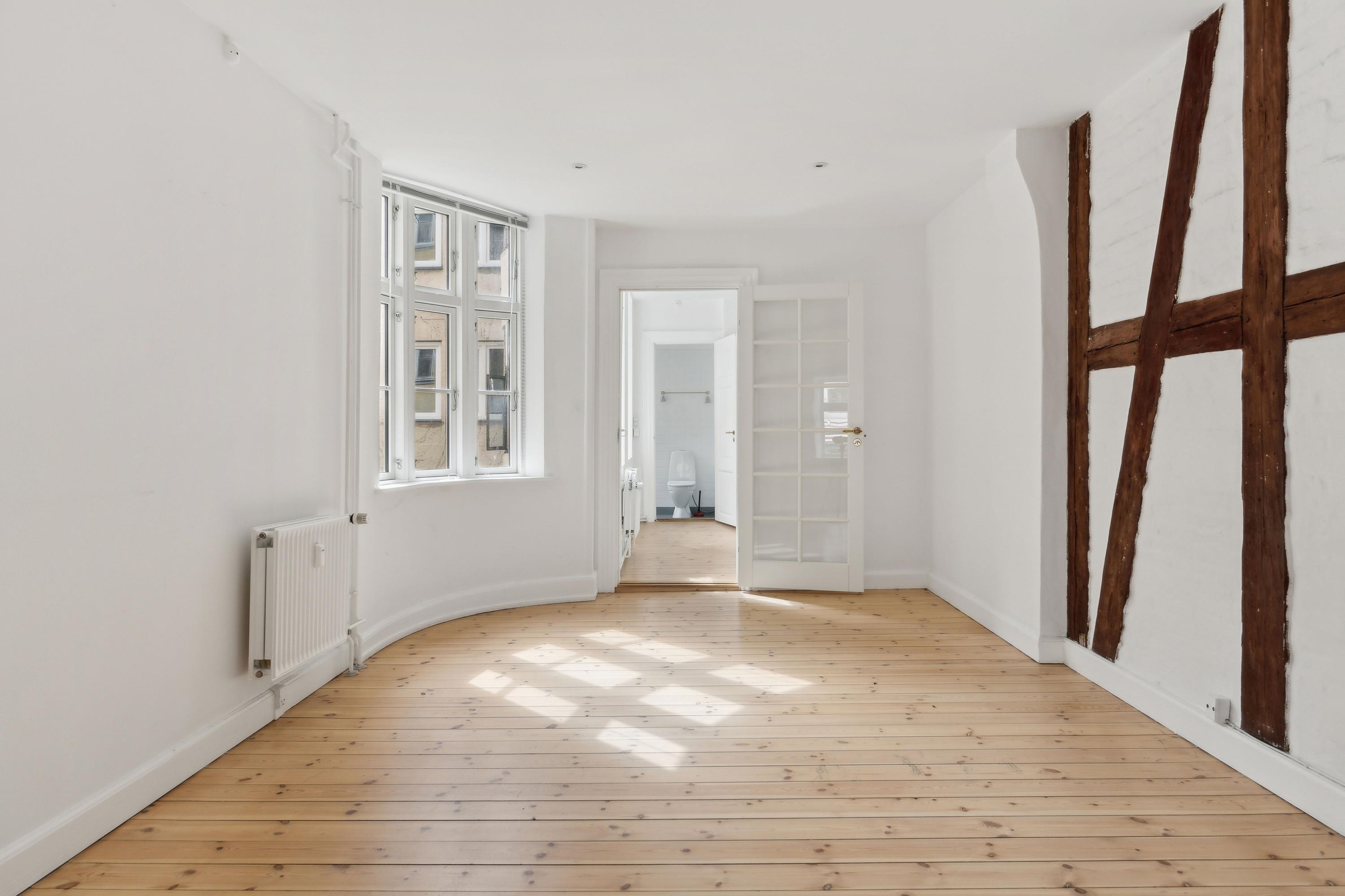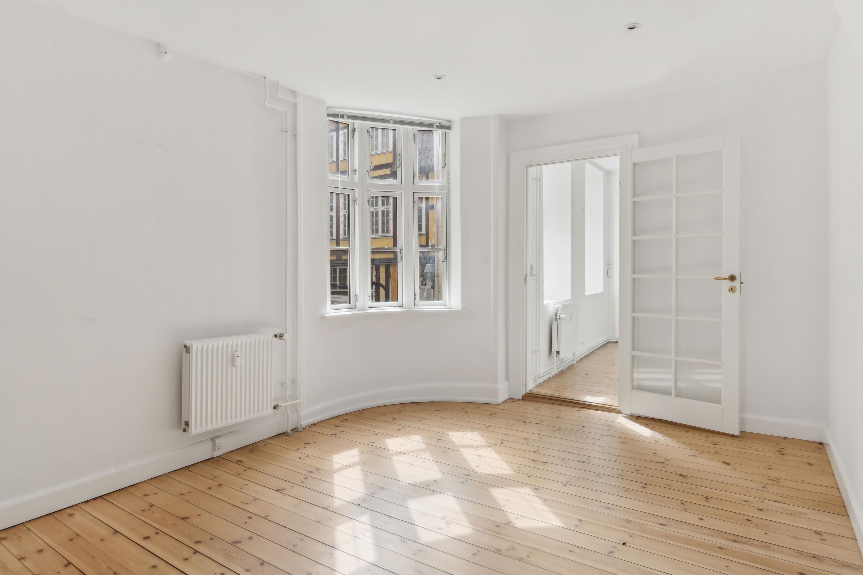 Midt i Indre By på en af hovedstadens mest ikoniske gader nær Kongens Nytorv finder I denne velindrettede lejlighed, hvor I får mange kvadratmeter for pengene. Hjemmet har en god planløsning, der fordeler sig over to værelser, et badeværelse, et disponibelt rum og et stort opholdsmiljø med