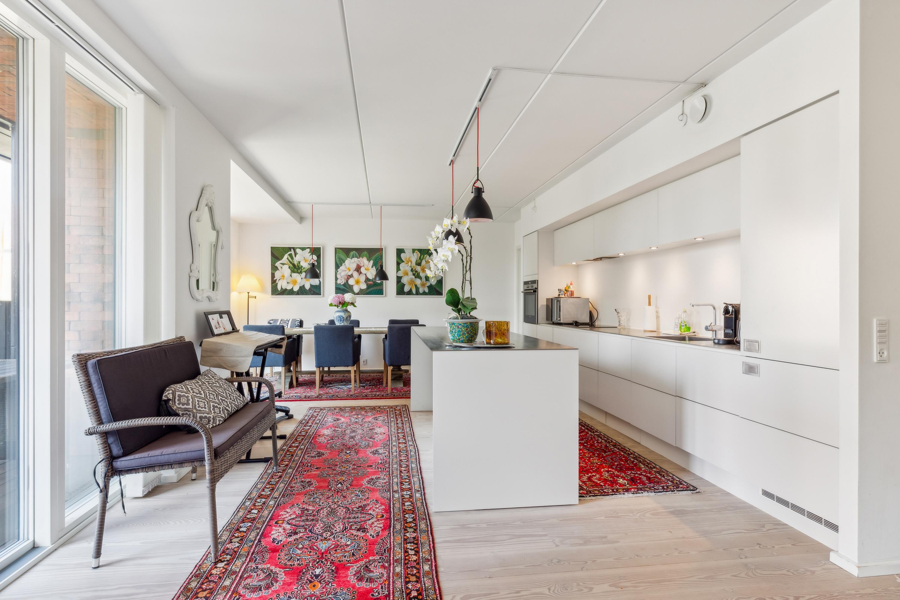 Den historiske varehusstil, som havnelivet ud til kanalerne engang var så fuld af, er genopfundet! Dét kan man sandelig mærke, når man står i denne lyse, flotte lejlighed, som vi har udbudt til salg. Denne luksuriøse sag er til parret, den lille familie eller simpelthen til livsnyderne, der søger