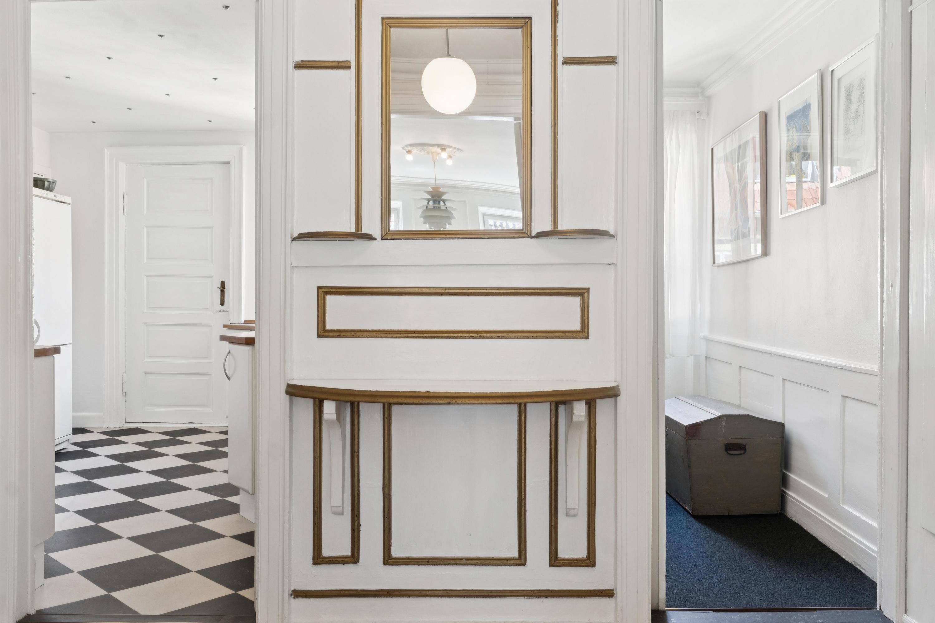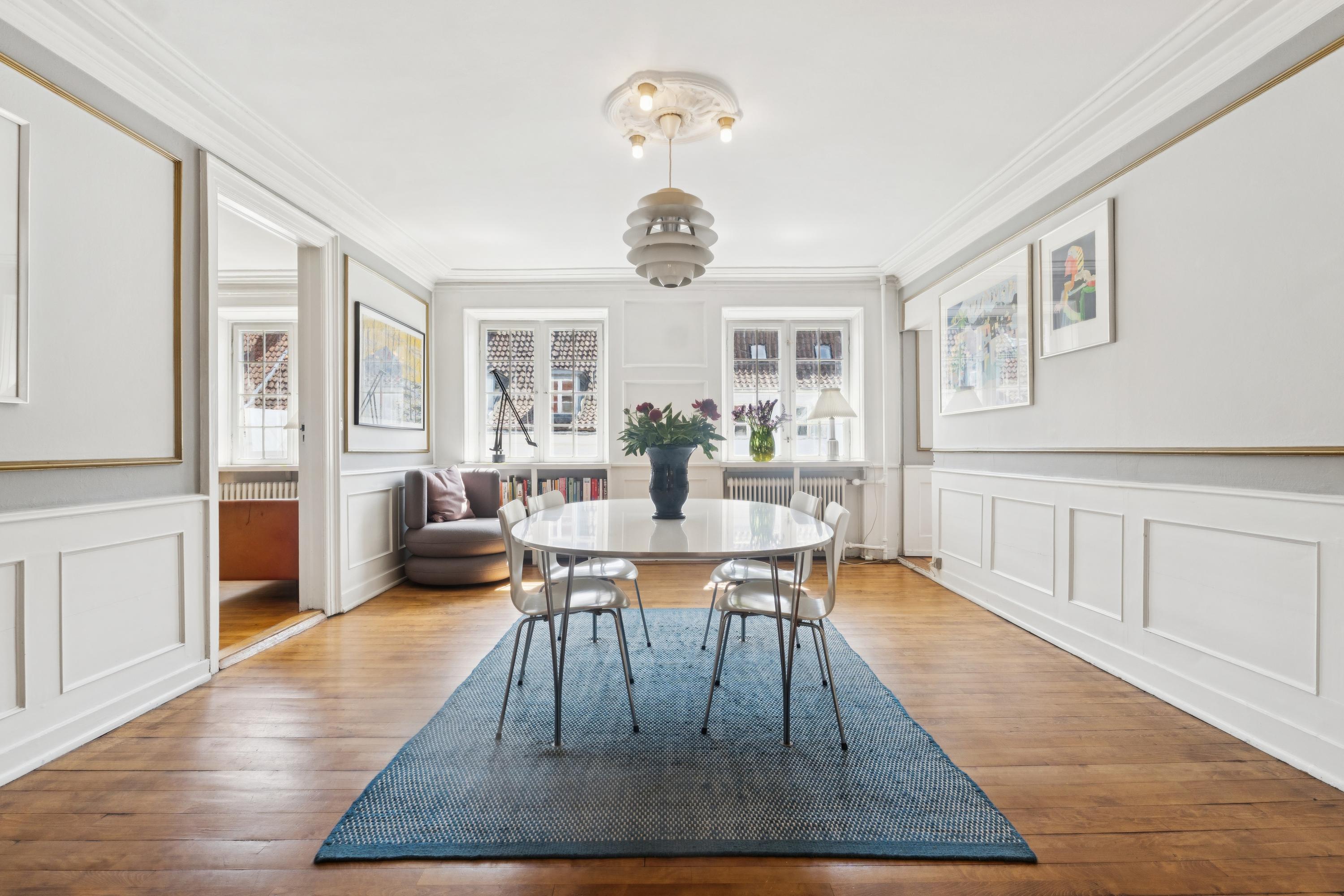 Adressen bliver nærmest ikke mere central end her, hvor I bosætter jer midt i Frederiksstaden tæt på byens tilbud, daglige gøremål og hovedstadens vartegn. I disse omgivelser møder I denne femværelses lejlighed med en perfekt rumfordeling og en dejlig mængde lysindfald.
