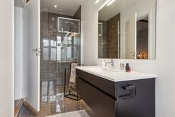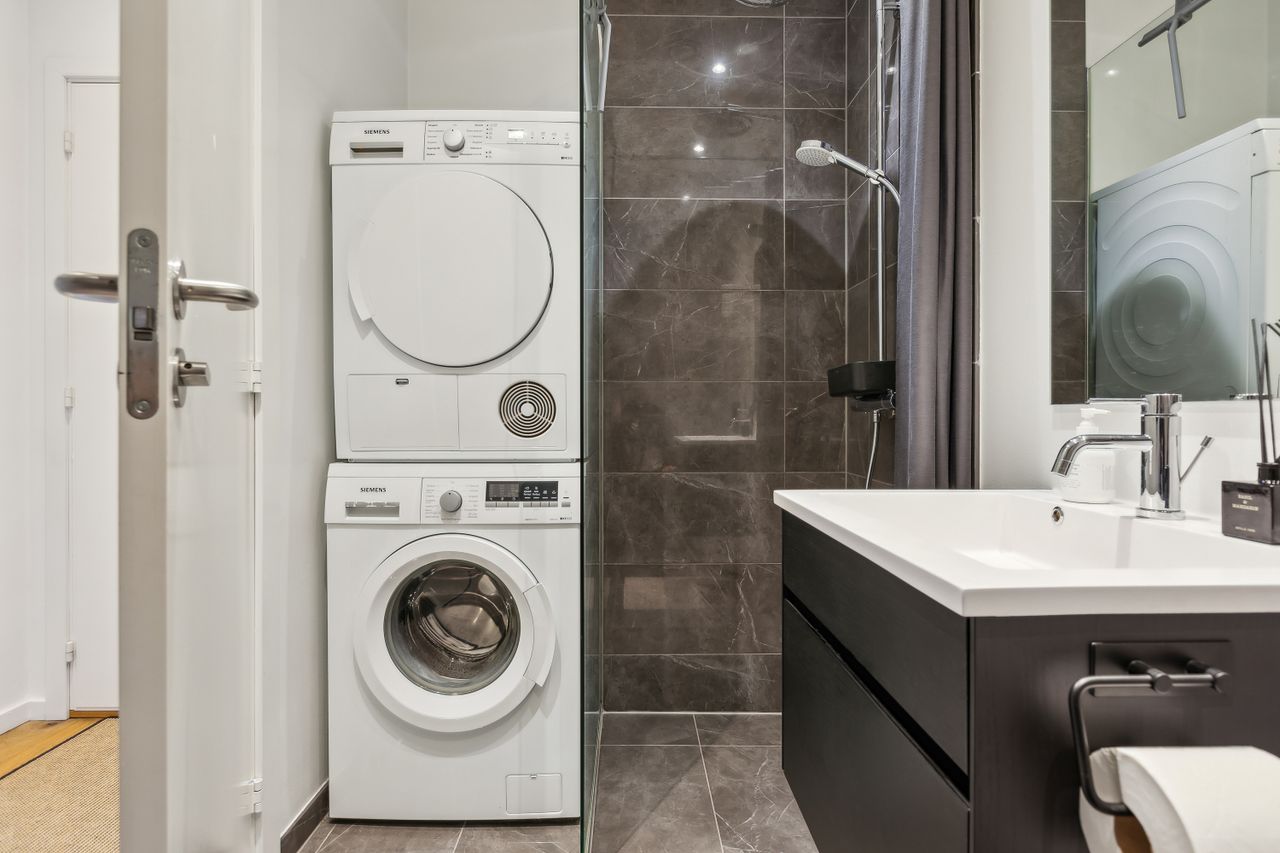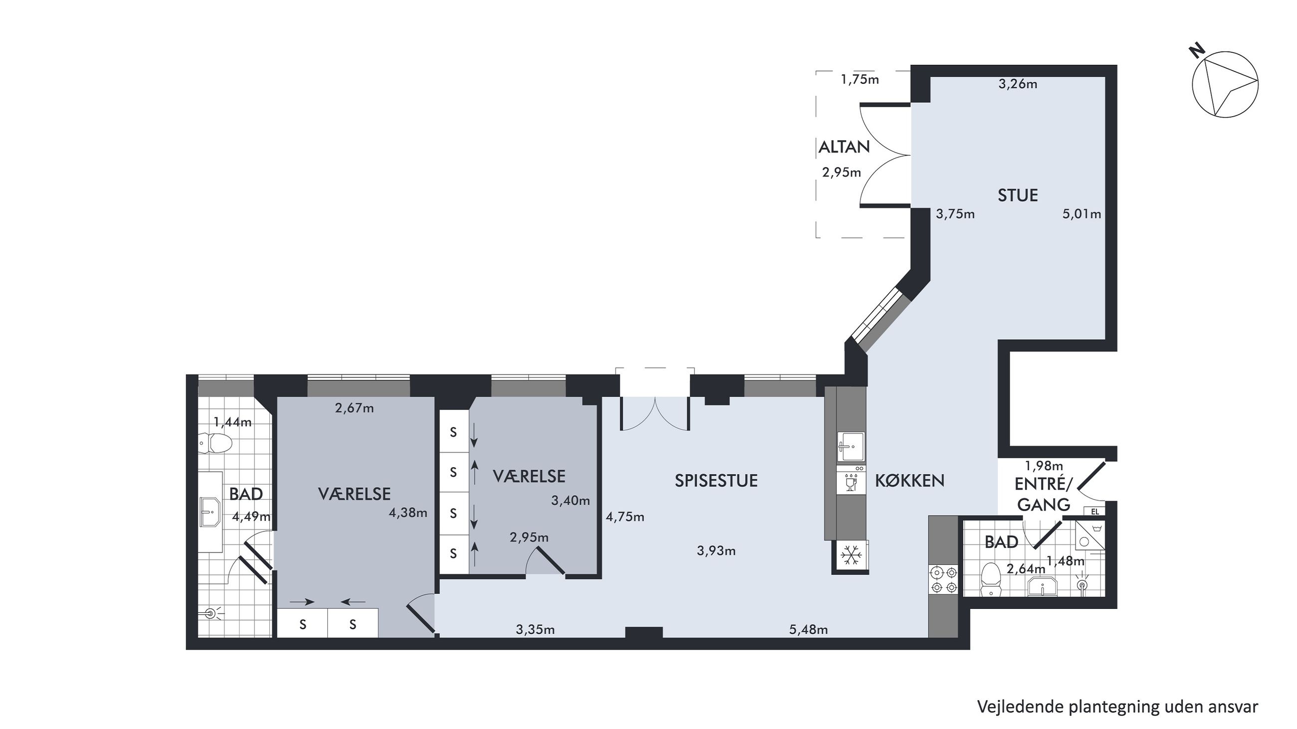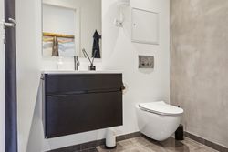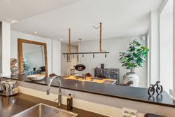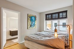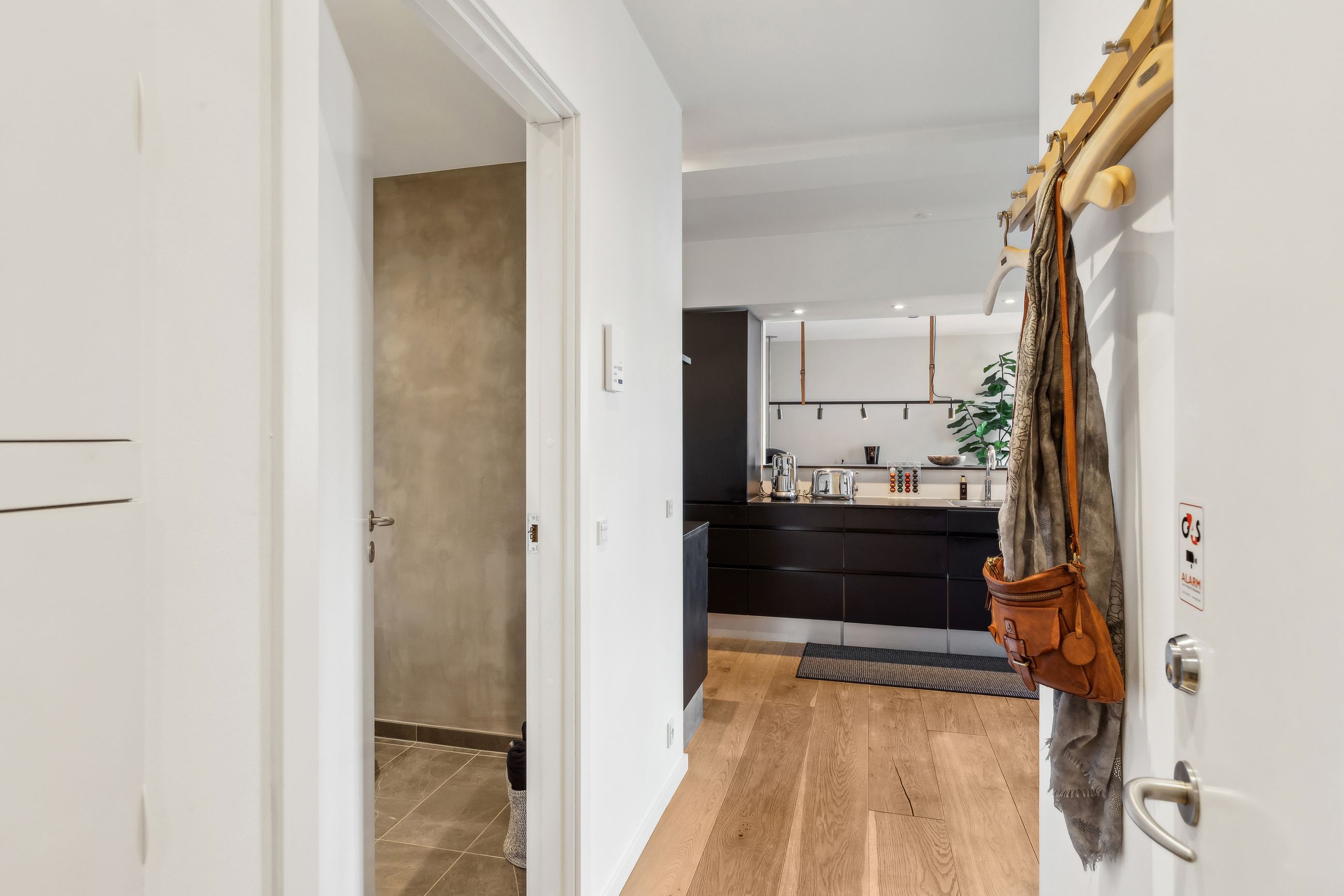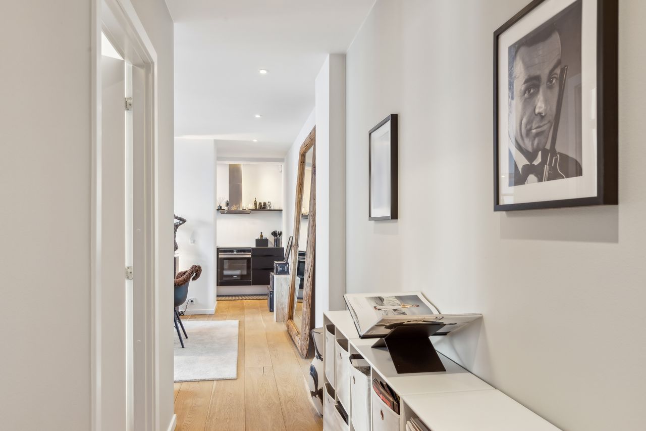 Kom med op på anden sal, hvor planløsningen tager sit afsæt i en fin entré. Herfra er der på venstre hånd adgang til hjemmets første badeværelse (for ja, der er to), hvor separat brus og vaskefaciliteter er blandt de nævneværdige faciliteter. Der er åben adgang fra entré til køkken, hvilket skaber en skøn rumfornemmelse helt fra start; en rumfornemmelse, der fortsætter videre ind i gennem hjemmet, bl.a. fordi køkkenet fra Svane, som bl.a. kommer med Quooker, også er åbnet op mod en stue til hver side. Du får altså et sammenhængende, men alligevel opdelt, fællesrum, hvor det er oplagt at underholde gæster, men hvor forskellige opholdszoner også skaber ro og et hyggeligt udtryk. Lejligheden afrundes af to soveværelser, begge med skabsplads, og slutteligt endnu et badeværelse, der, ligesom det første, er udstyret med separat brus. Vinduerne er blevet udskiftet, og i det hele taget er der tale om ordentlige, strømlinede og lækre rammer.