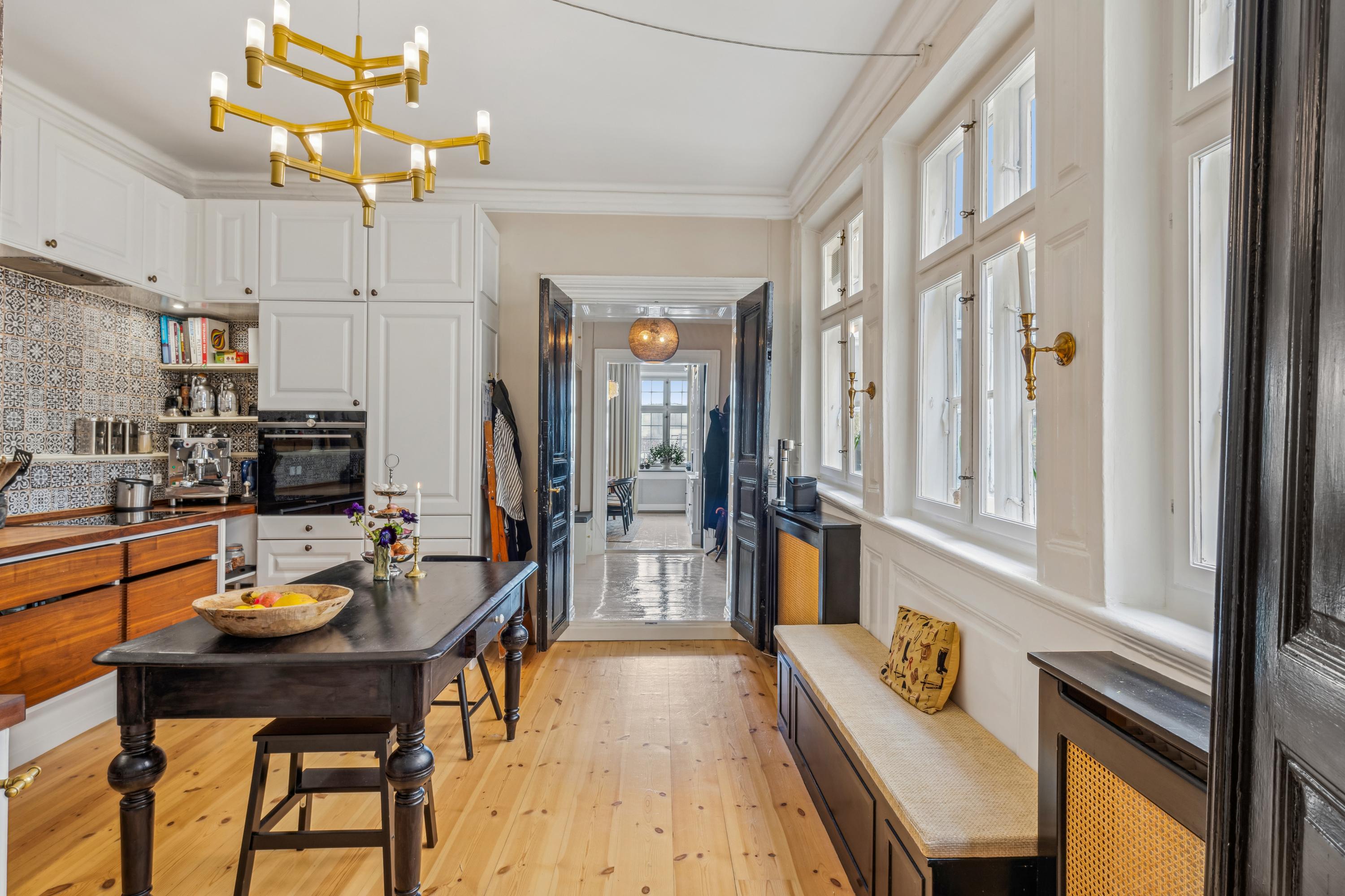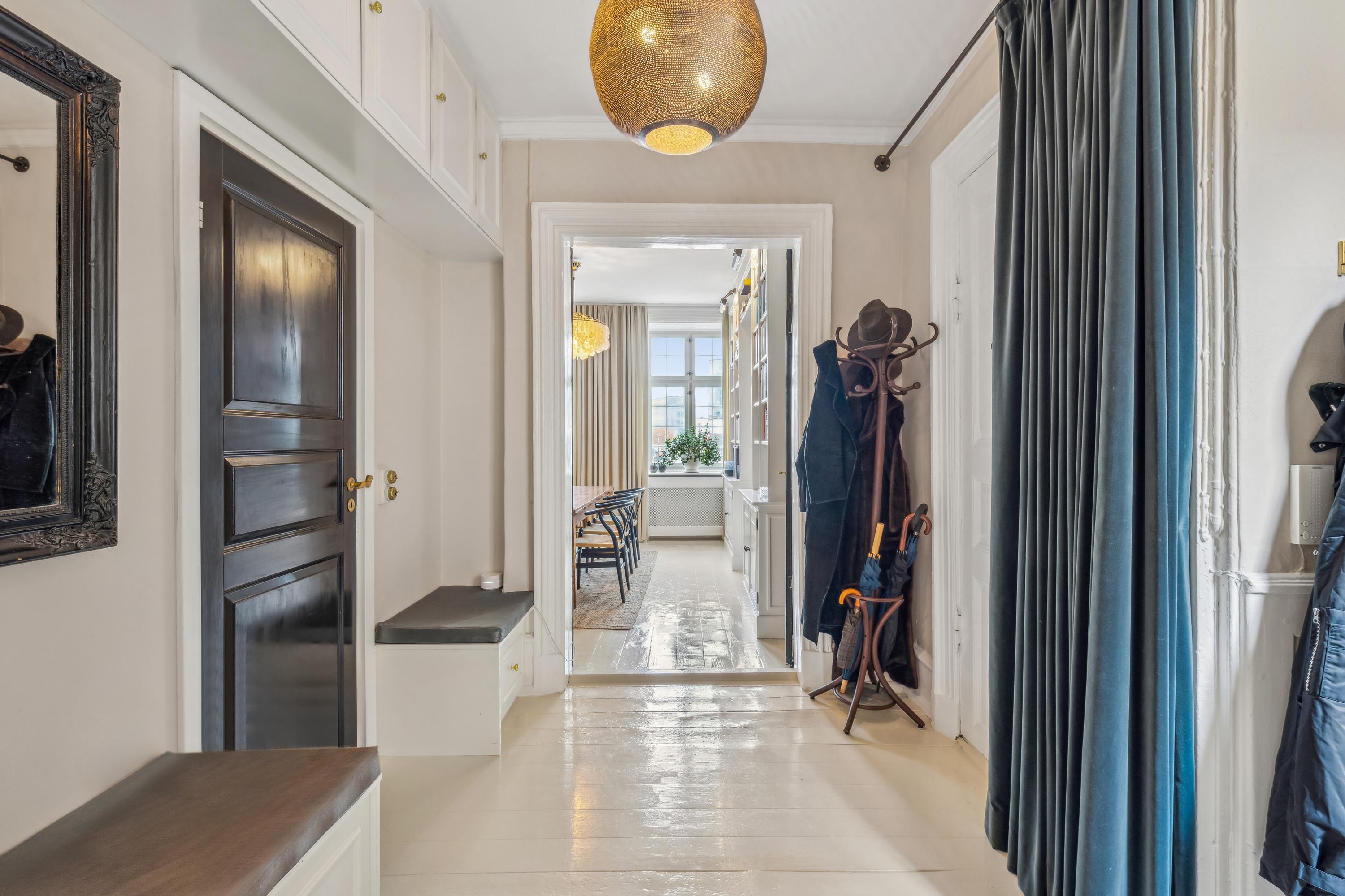 Velkommen til denne enestående herskabslejlighed, der oser af charme og historie. Med et boligareal på 110 kvadratmeter fordelt over en smukt istandsat ejendom fra 1720, tilbyder denne lejlighed den perfekte kombination af klassisk elegance og moderne komfort. Når du træder ind i den rummelige