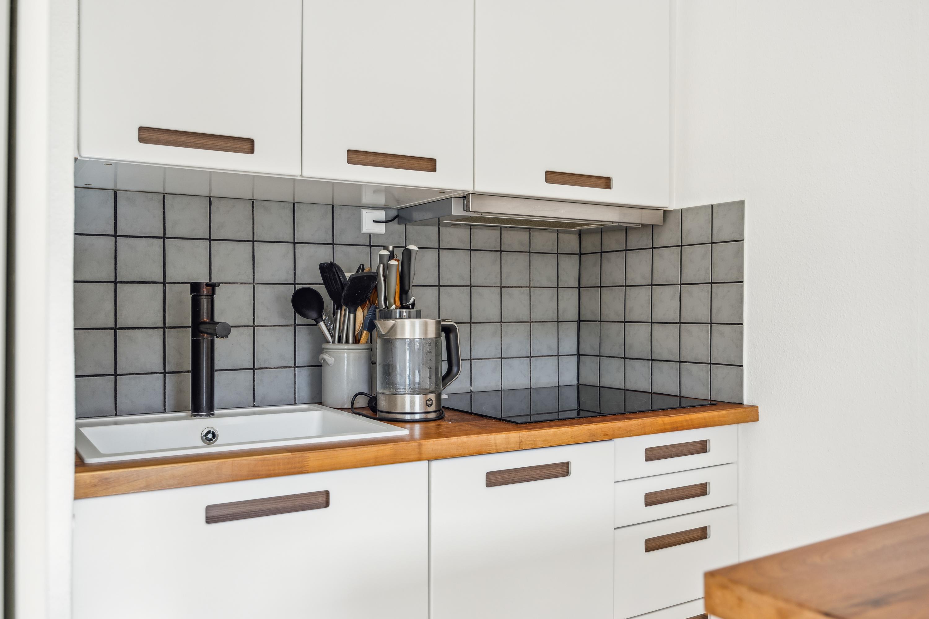 Gennemført lejlighed med lækkert køkken og fantastisk altan