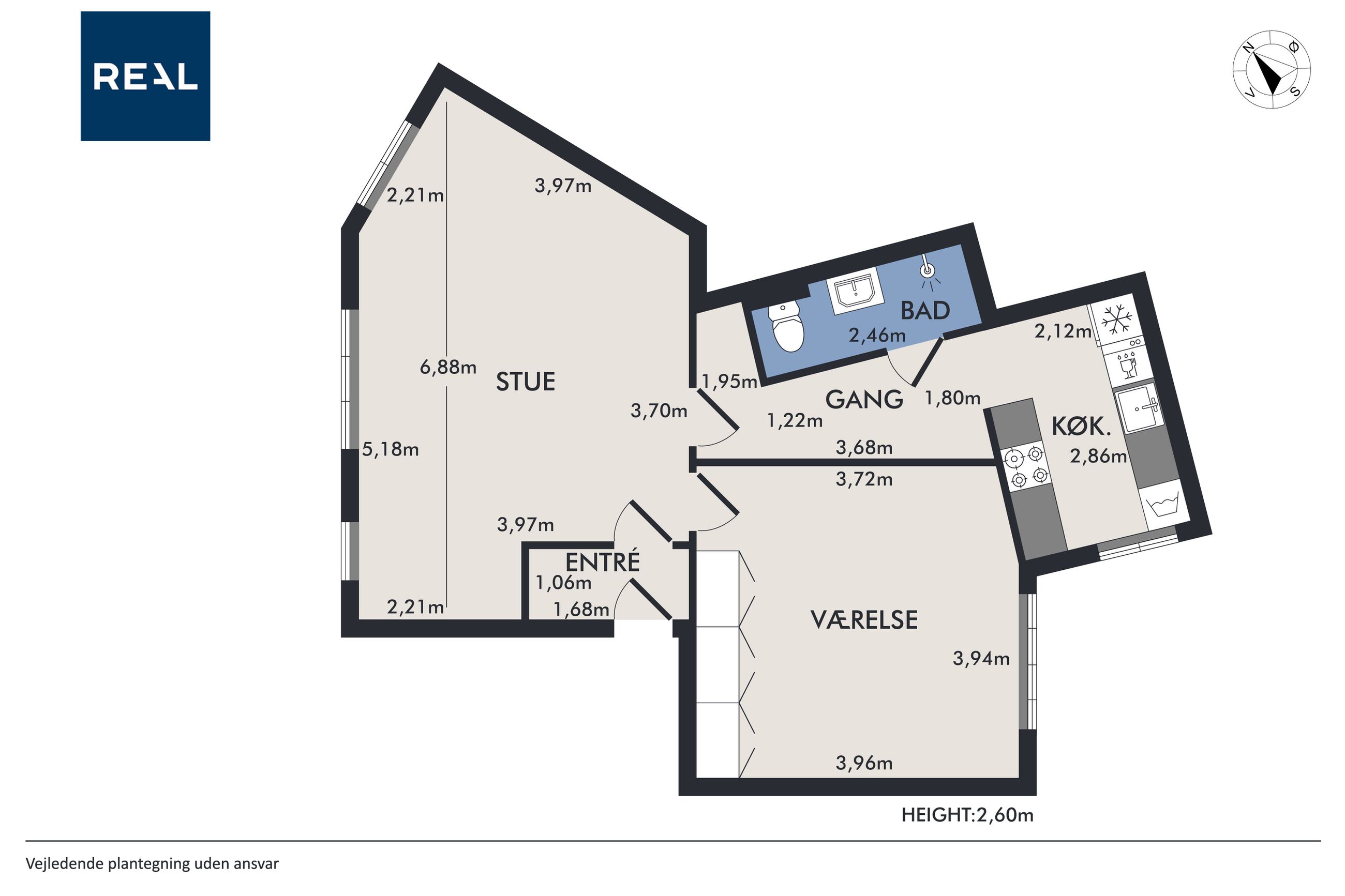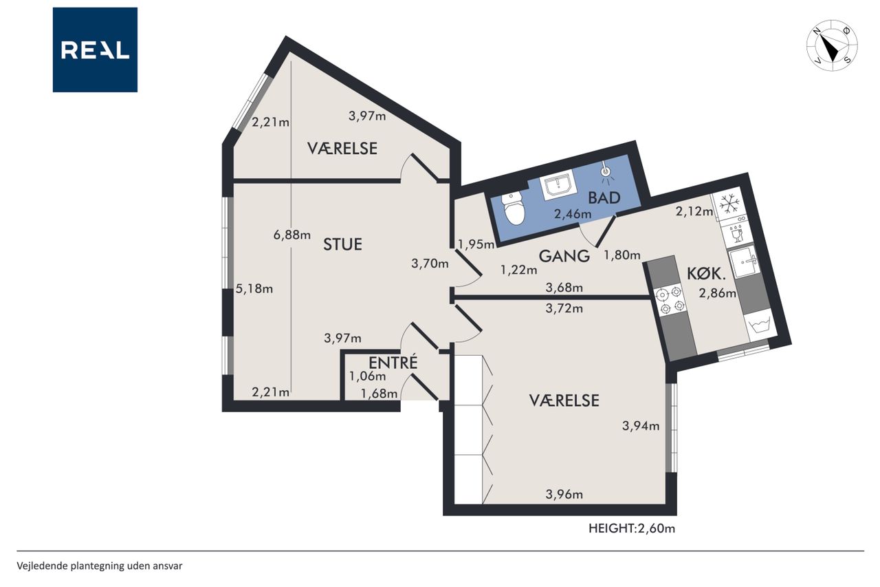 Velkommen til en rummelig og utroligt lækker lejlighed med store rum, fantastisk lysindfald og et gennemført tema hele vejen igennem! Lejligheden er for nuværende en 2-værelses men kan med fordel gøres til en 3-værelses, der i øvrigt vil være delevenlig.