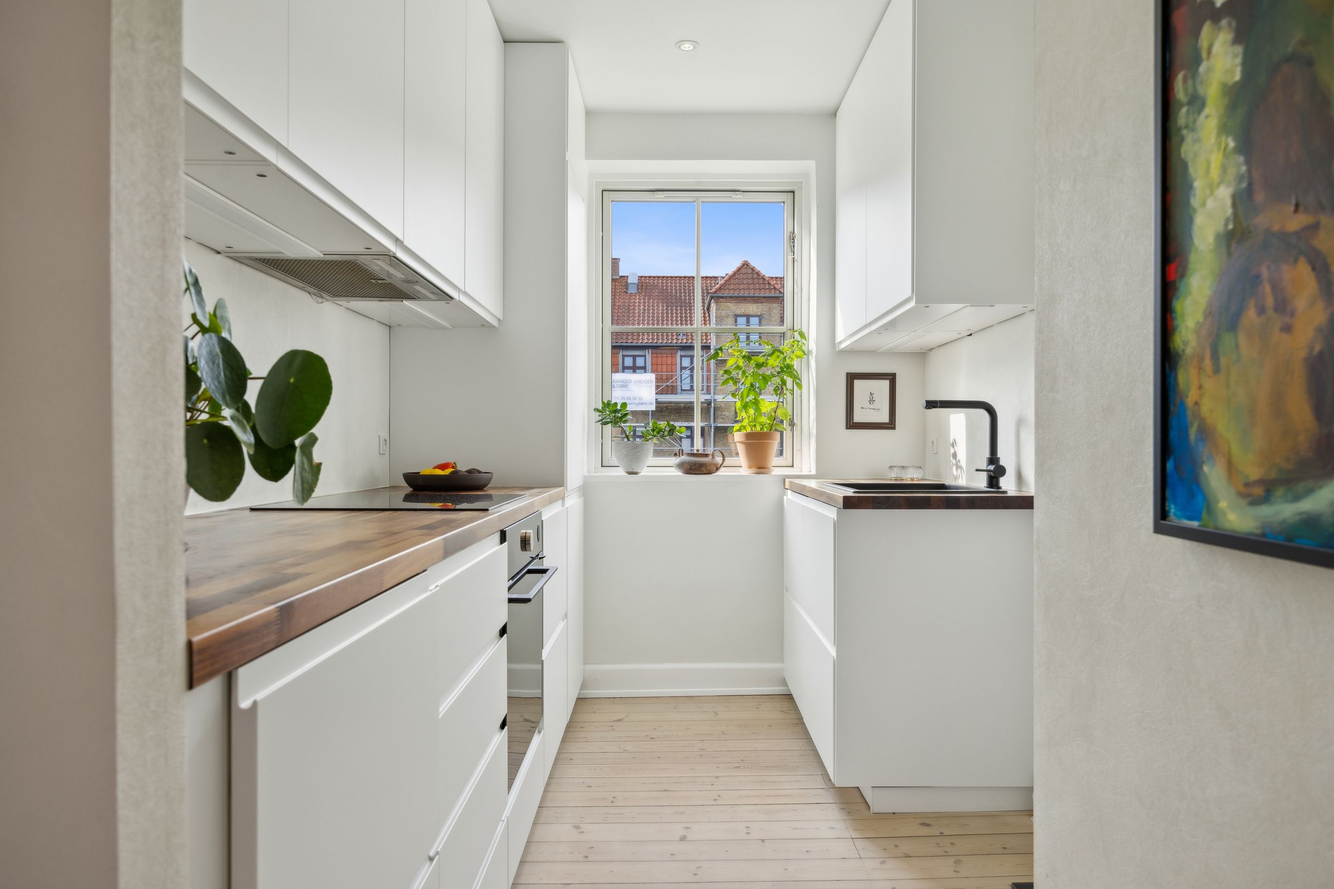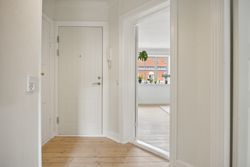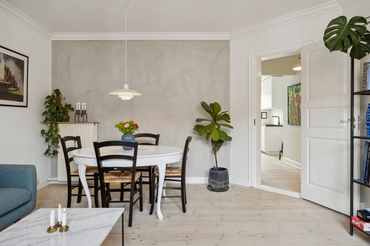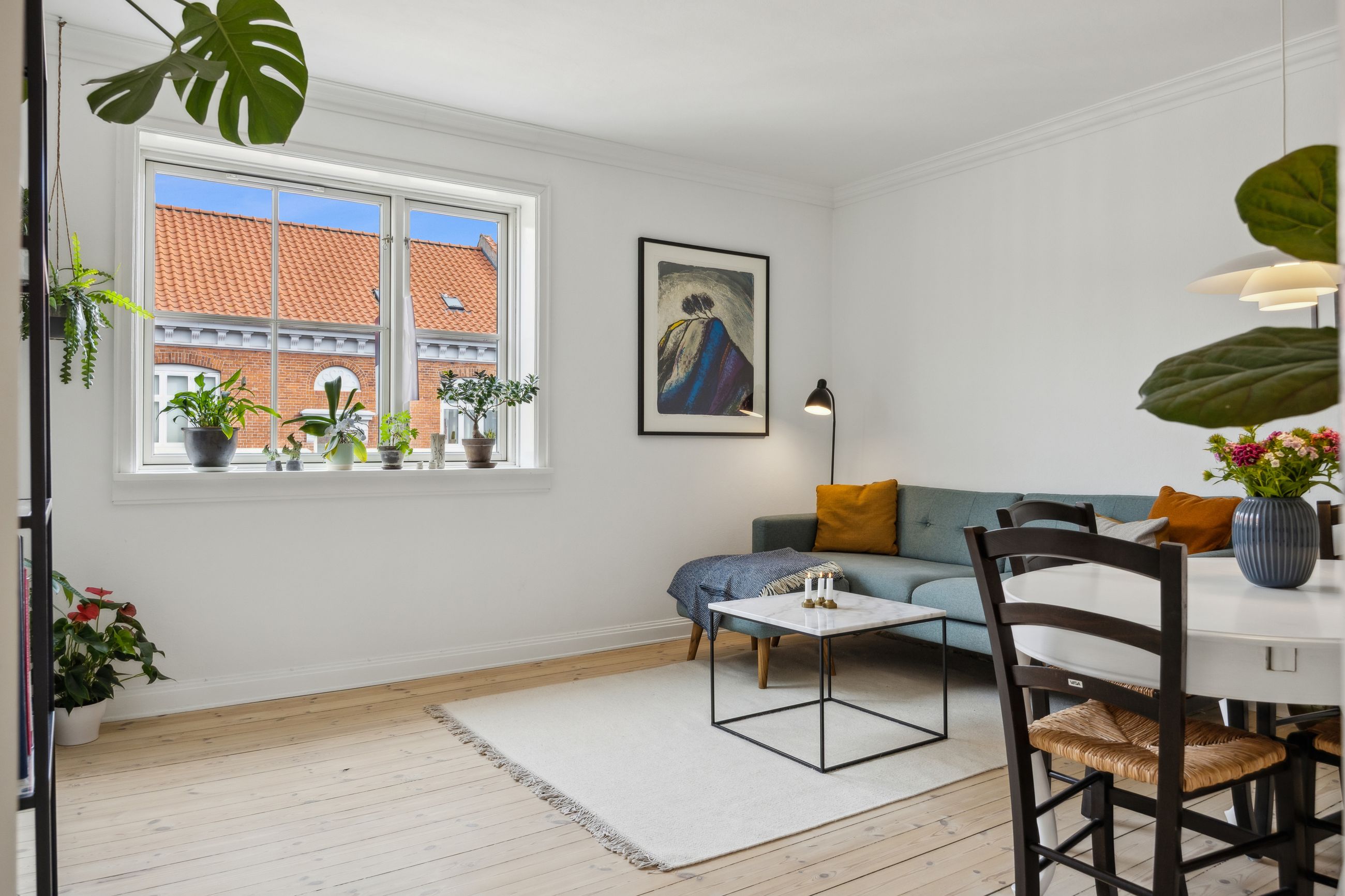 Velkommen til denne charmerende og lyse lejlighed øverst beliggende i en klassisk rød murstensbygning fra 1934. Med et boligareal på 61 kvadratmeter tilbyder denne lejlighed en perfekt kombination af historisk charme og moderne bekvemmeligheder. Når du træder ind, mødes du af lyse, flotte trægulve, der strækker sig gennem hele boligen og giver en varm og indbydende atmosfære.