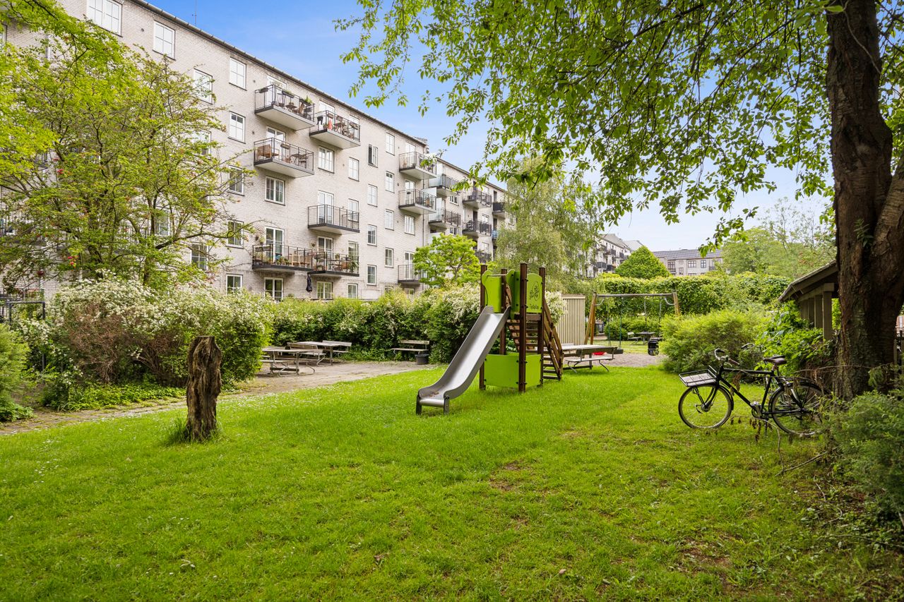 Ejendommen har desuden adgang til en stor grøn gård – et sjældent fund midt i byen – hvor man kan nyde udendørslivet. Beliggenheden kunne ikke være bedre; placeret på en stille sidegade til Amagerbrogade har du alle hverdagens fornødenheder lige rundt om hjørnet.