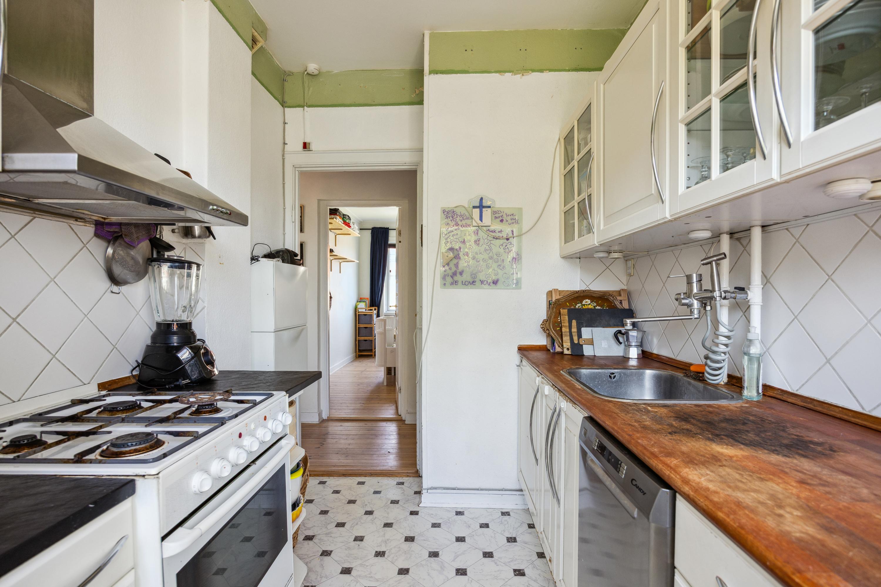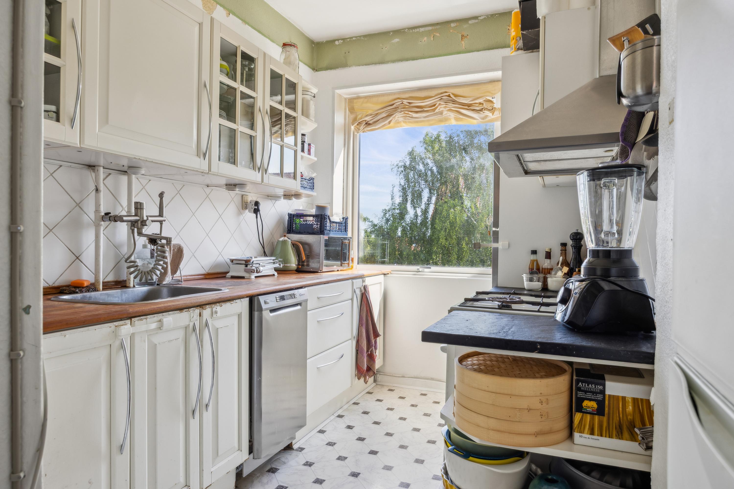 Lejligheden ligger i en velholdt murstensejendom fra 1935 og byder på 62 m2 fordelt på entré, rummelig stue med udgang til en stor vestvendt