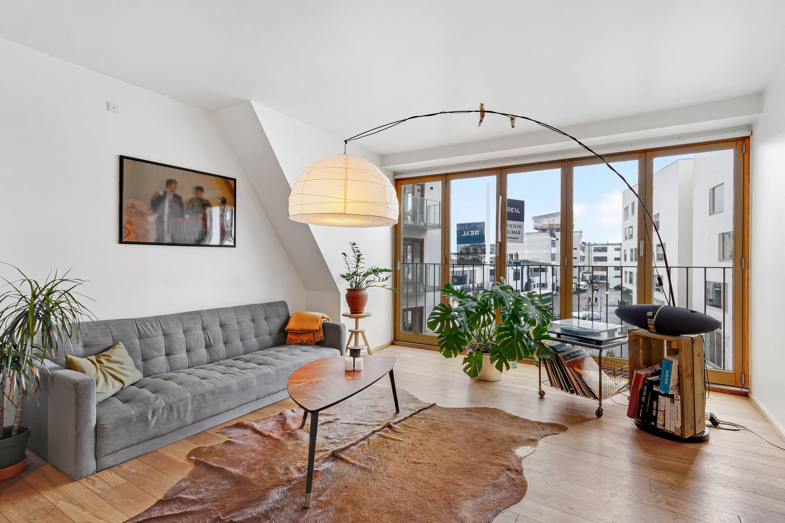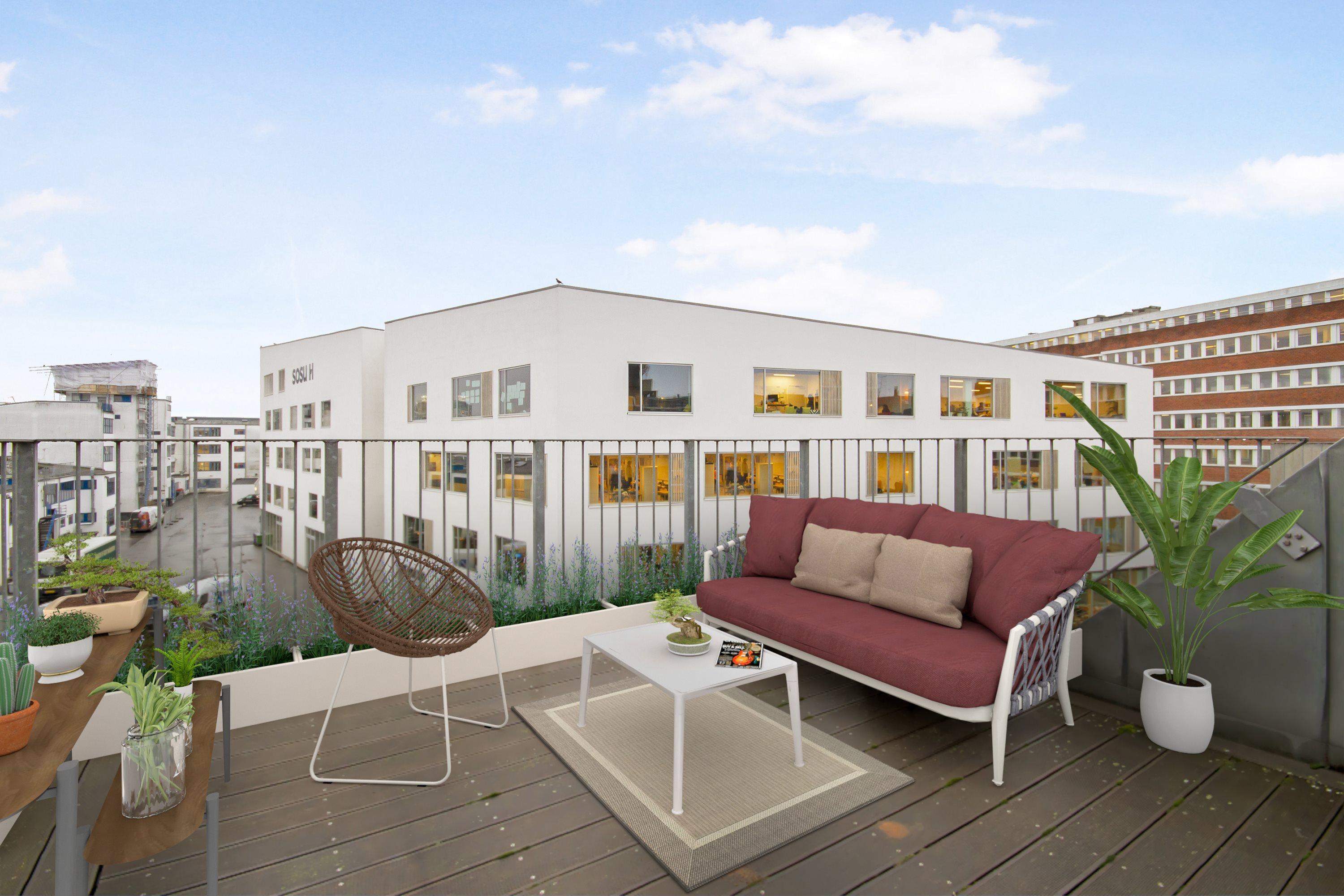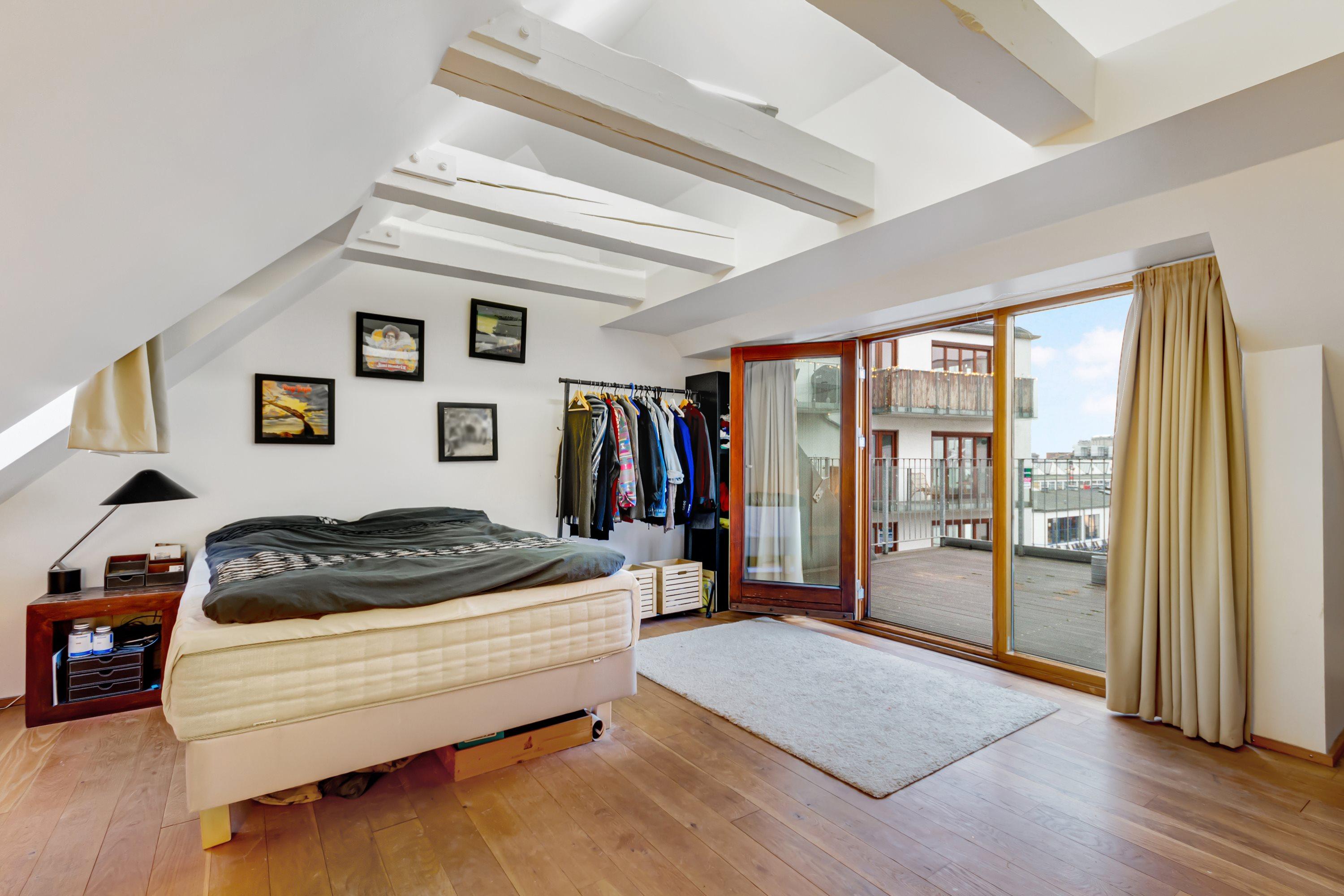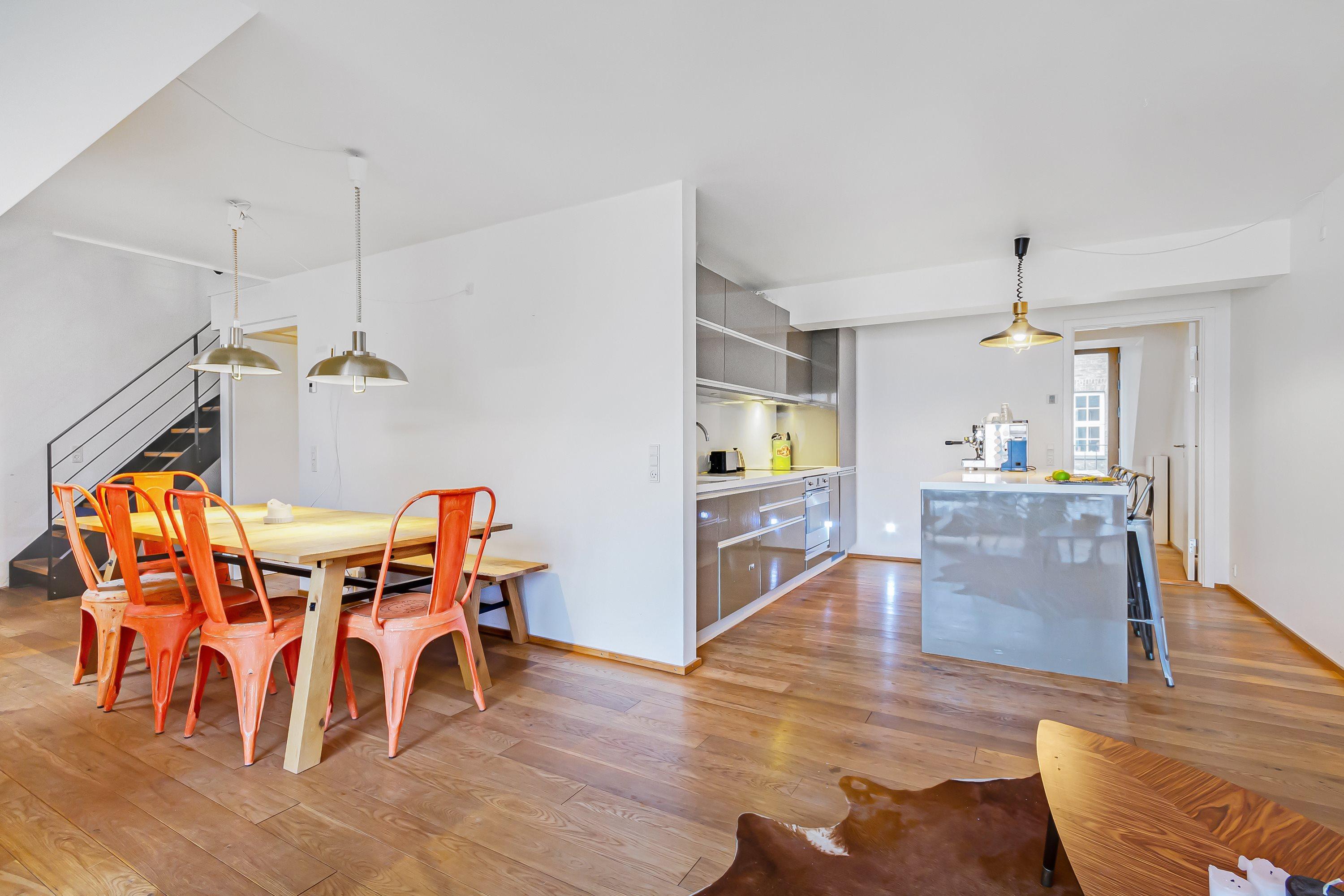 to etager! Lejligheden rummer 153 m2 med en åben planløsning og en absolut enestående privat tagterrasse. Du træder indenfor i en rummelig entré, hvorfra du har adgang til det eksklusive badeværelse,.. Læs mere...