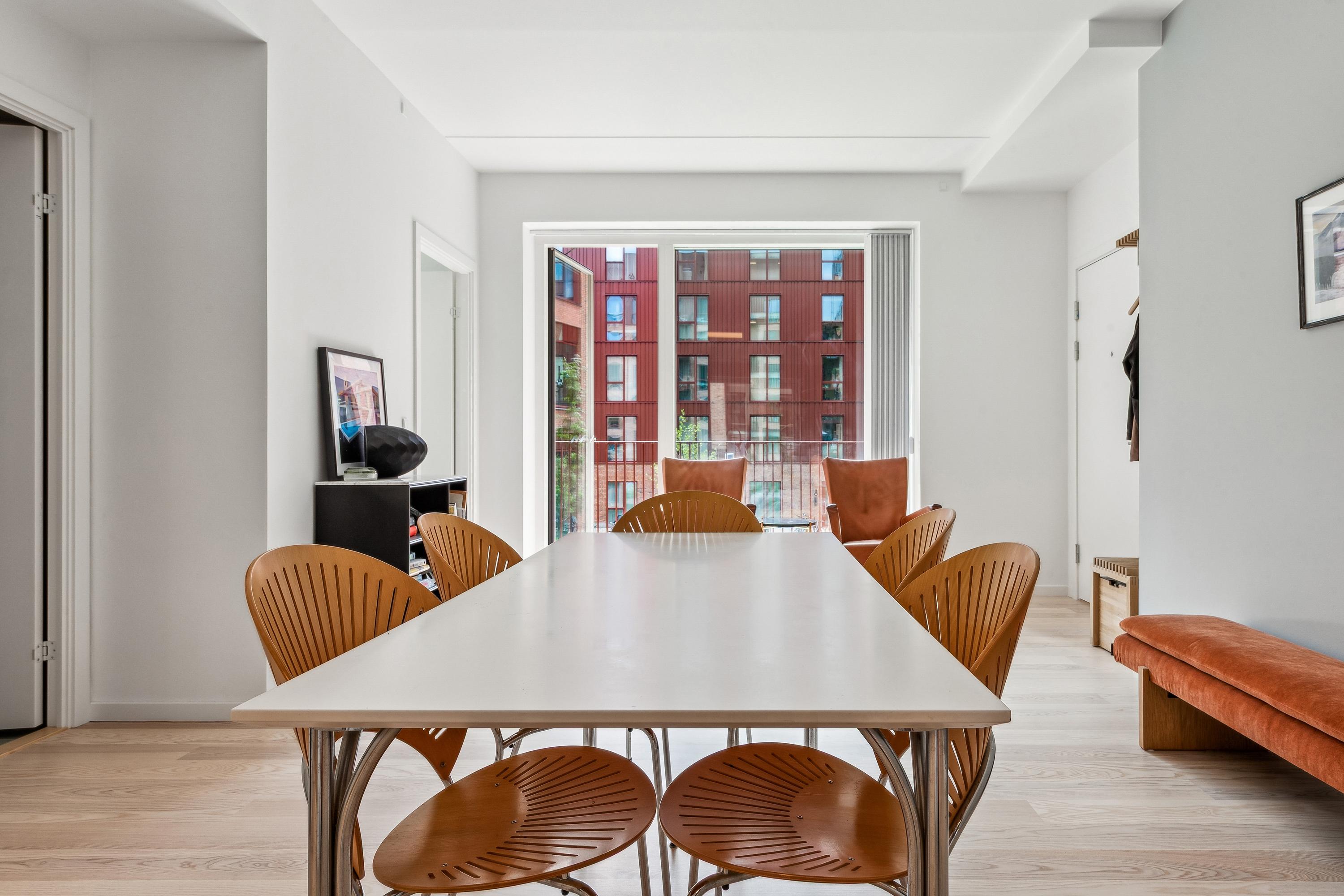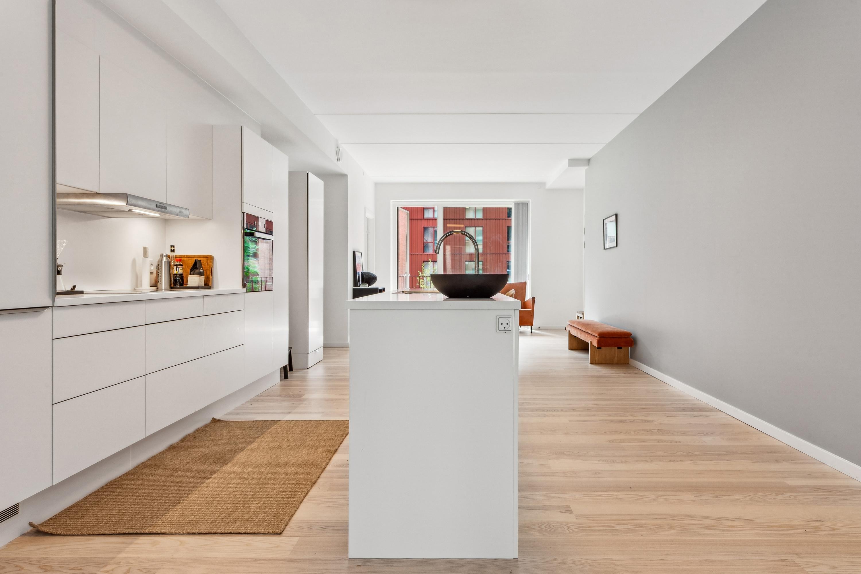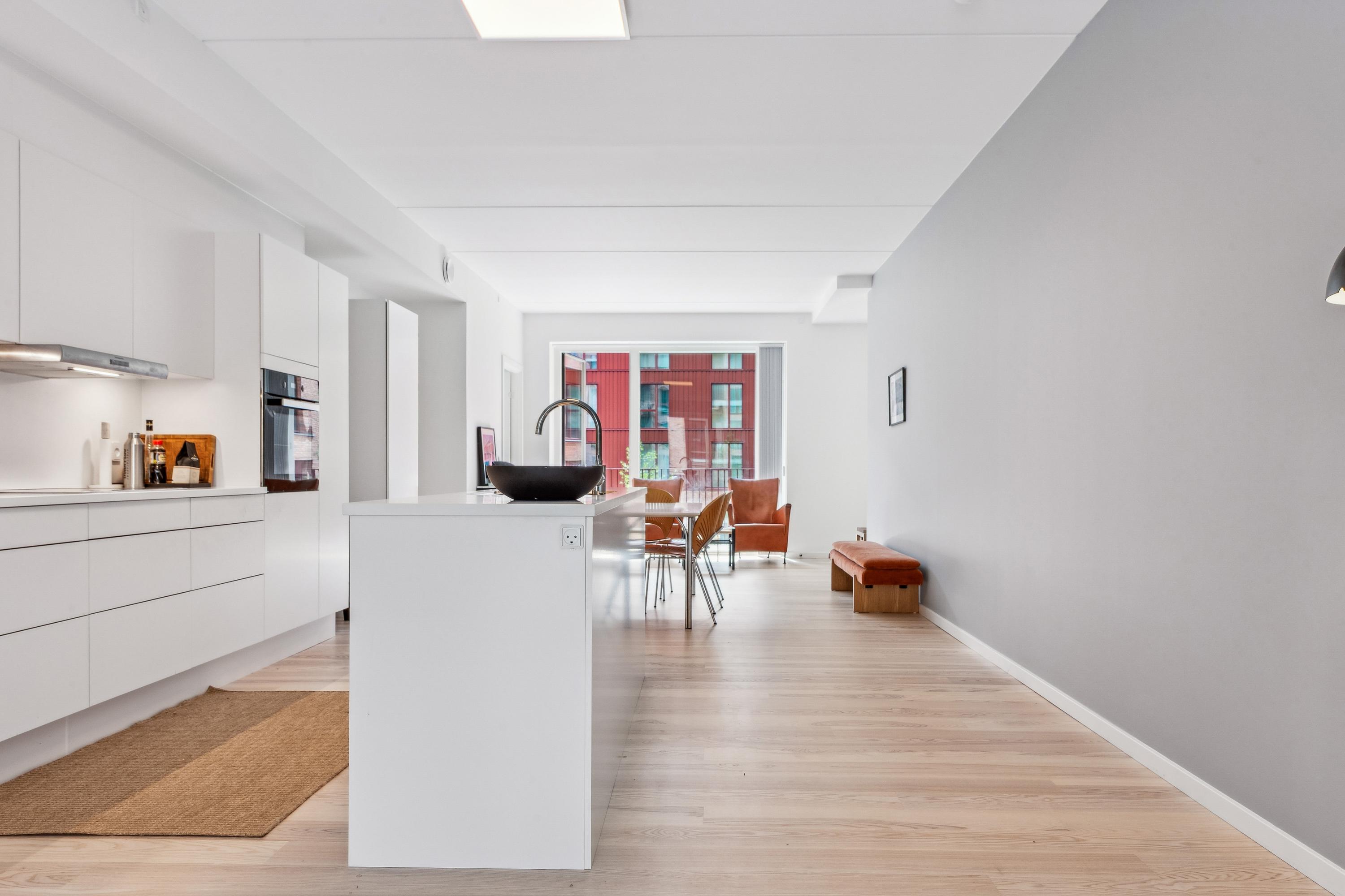 Velkommen til en bolig, hvor arkitektur og funktionalitet går hånd i hånd. På Ny Carlsberg Vej 75, 1. tv. får du en rummelig 4-værelses lejlighed på hele 115 m2, indrettet med omtanke og udført i kvalitetsmaterialer, der giver en rolig og indbydende atmosfære.