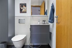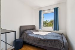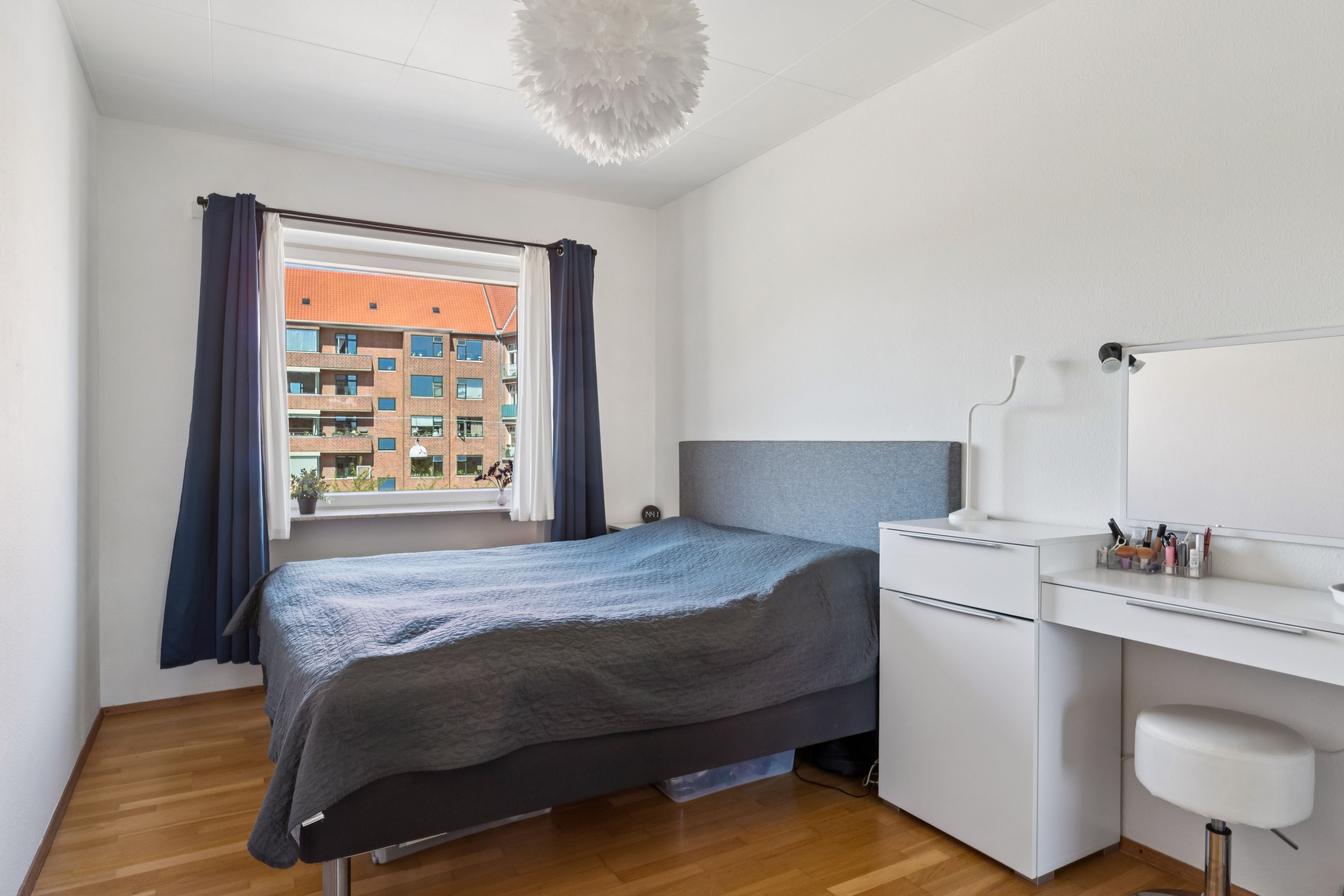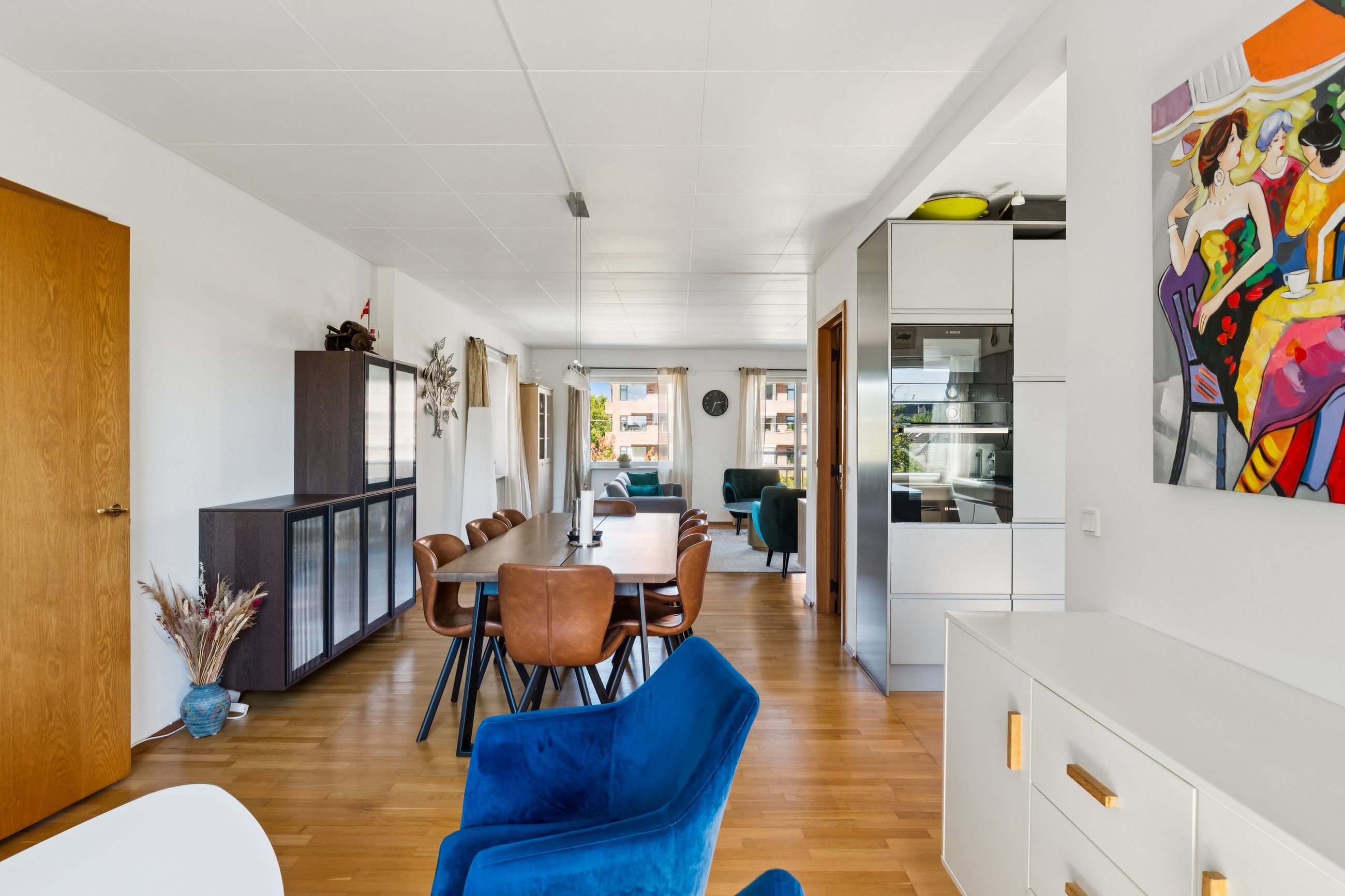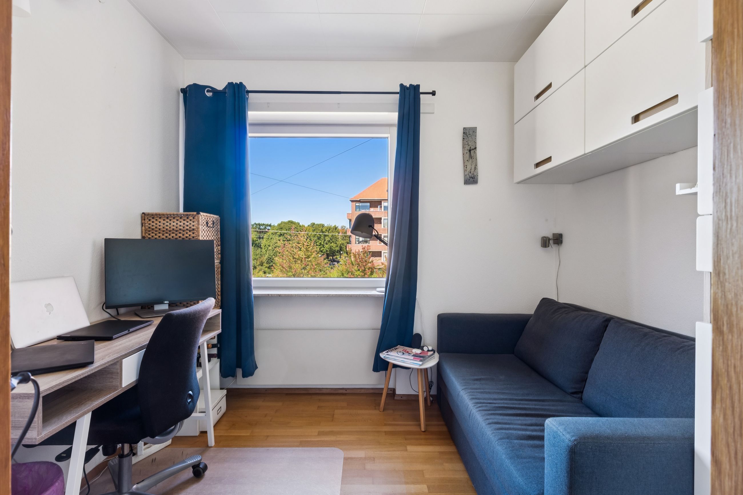De tre soveværelser giver fleksibilitet og mulighed for at indrette sig efter behov – uanset om der er brug for børneværelser, kontor eller gæsteværelse. Det generøse lysindfald skaber en åben og venlig atmosfære i hele lejligheden, som understøttes af planløsningens naturlige flow.