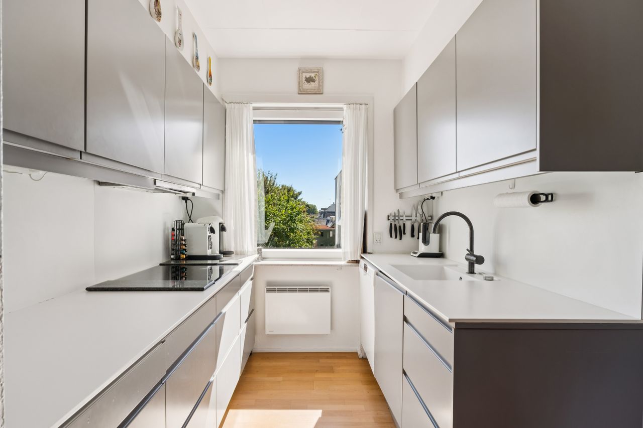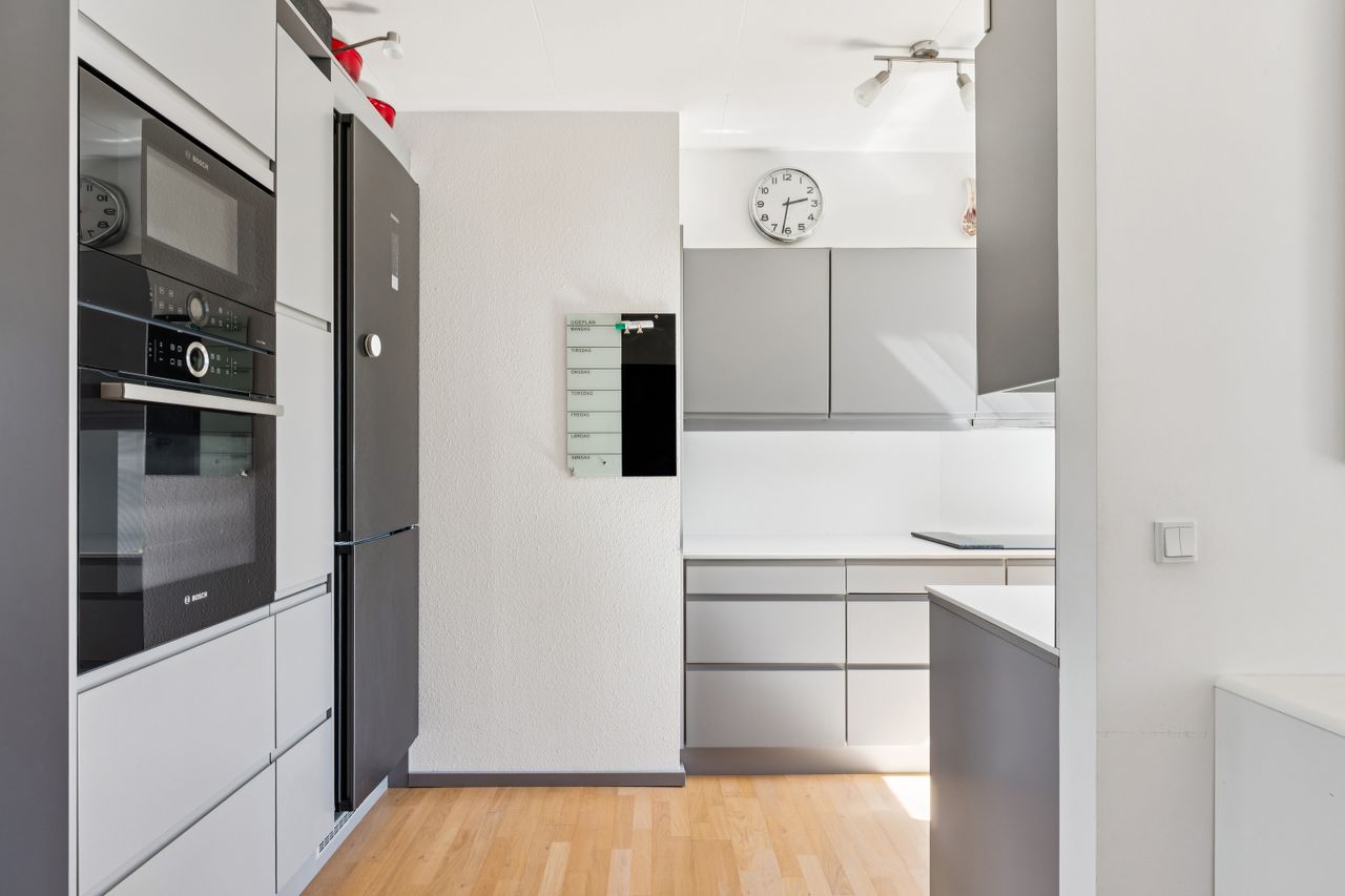 Det store køkkenalrum er lejlighedens naturlige samlingspunkt. Her er god plads til både madlavning, hverdagens måltider og hyggelige aftener med gæster. Fra alrummet åbner stuen sig op – et lyst og indbydende rum med masser af indretningsmuligheder, perfekt til både afslapning og selskabelighed.