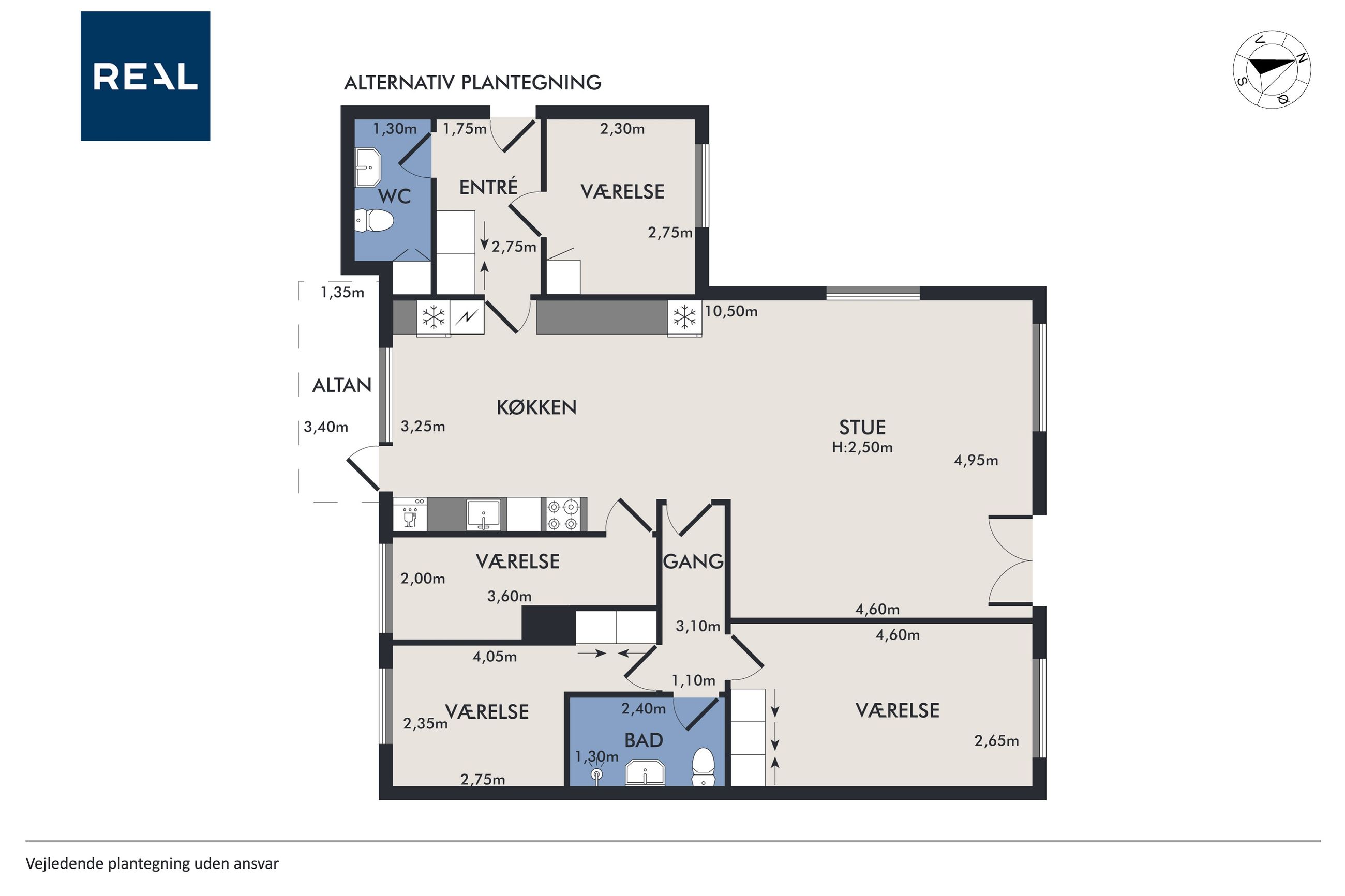 På Peter Bangs Vej 47 finder du denne rummelige lejlighed på 117 kvadratmeter, der kombinerer luftige rammer med funktionel indretning. Her får du tre gode soveværelser, et stort køkkenalrum med tilstødende stue og en altan, hvor lyset og luften kan nydes i det fri.