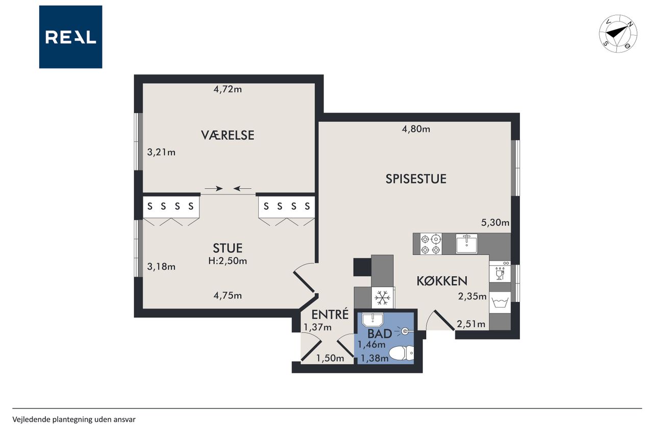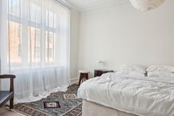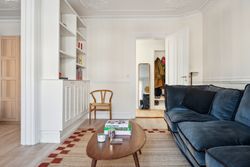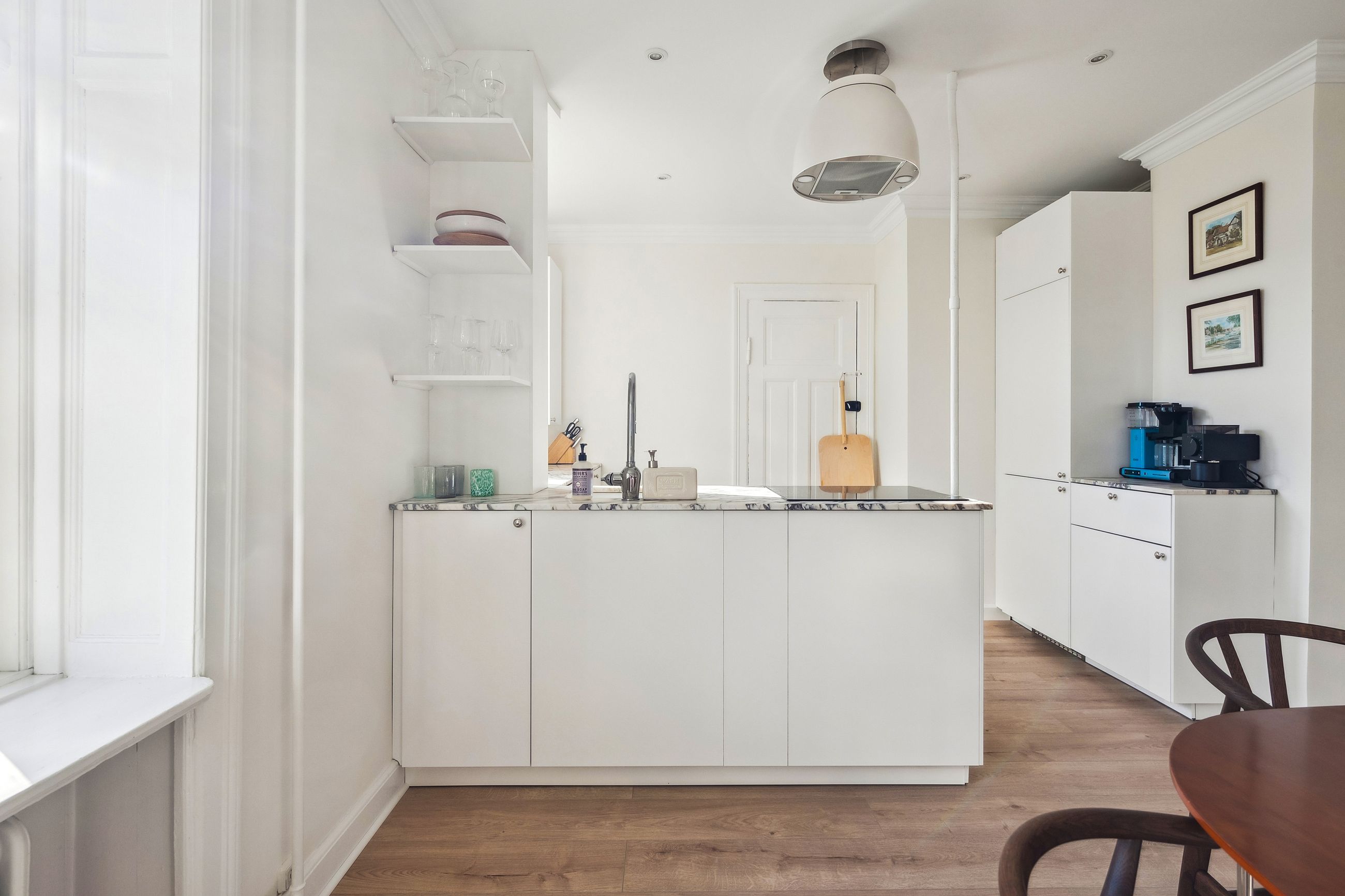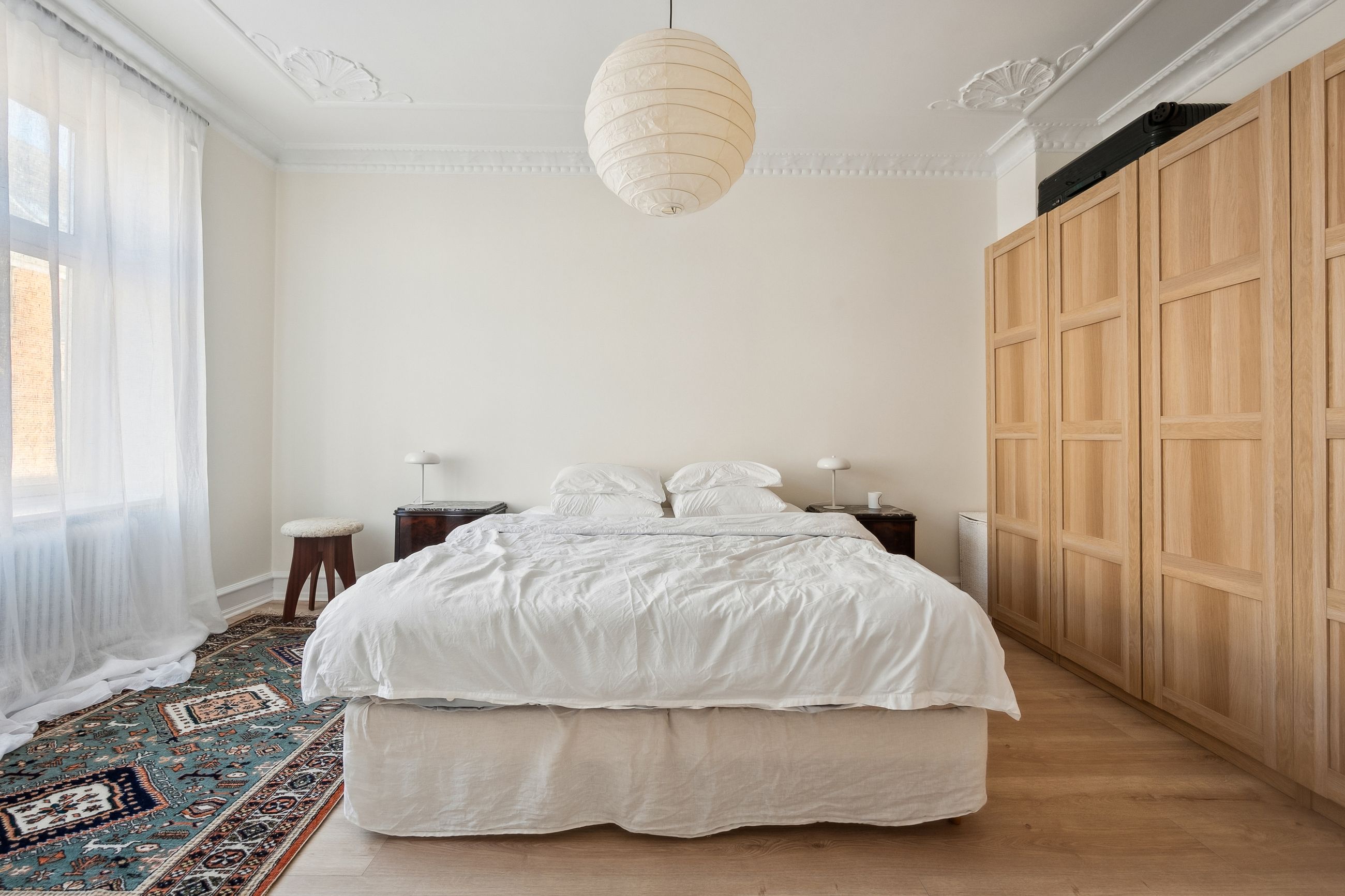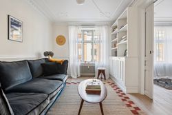 Her mødes du af smukke, originale detaljer og en indretning, der kombinerer klassisk elegance med moderne komfort. Fra entréen er der adgang til to herskabelige stuer en suite samt et indbydende køkken-alrum, hvilket skaber en skøn, åben rumfornemmelse. Stuerne er rige på atmosfære og kendetegnes ved klassiske stuk- og rosetdetaljer, der understreger boligens historiske charme. De to stuer kan enten bruges som opholdsstue og værelse – eller som to separate soveværelser, afhængigt af behov.
