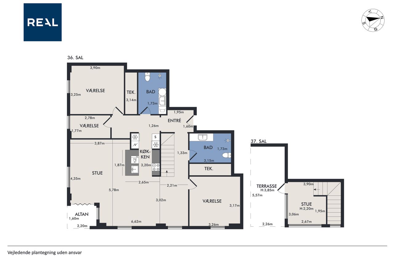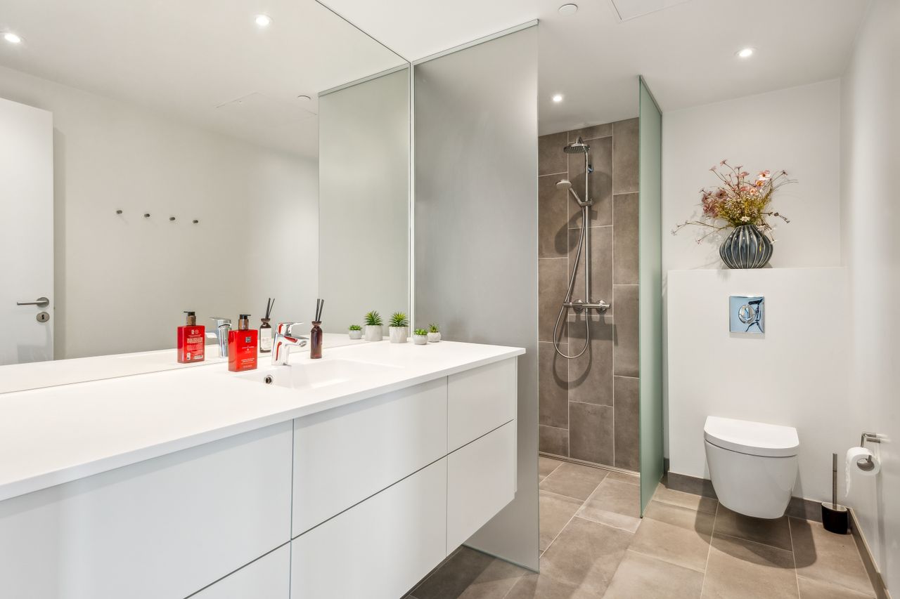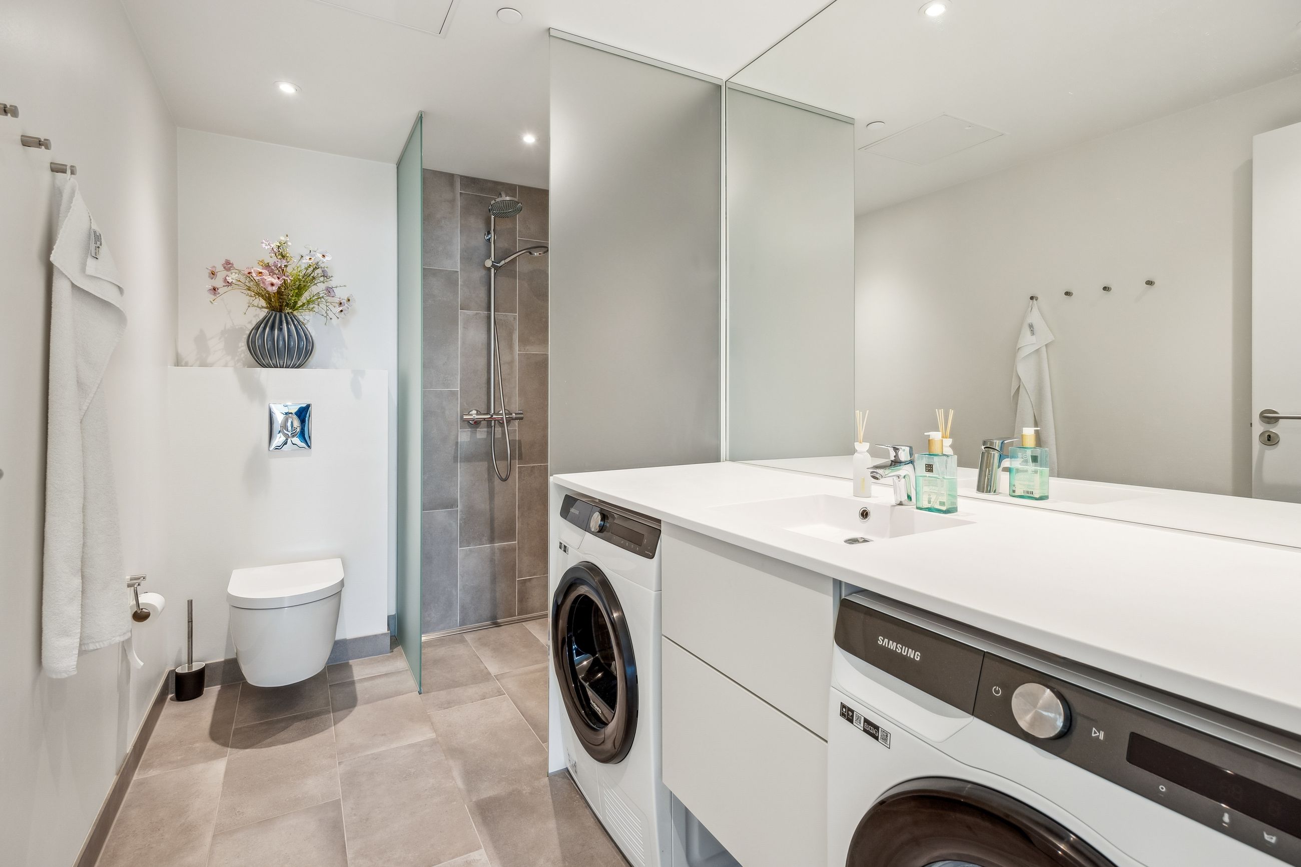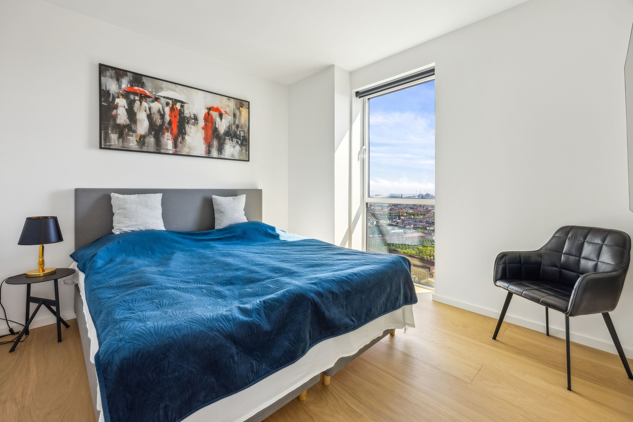 Lejligheden er også i topklasse, når det gælder materialer og rummelighed. Med både altan og en stor tagterrasse får du mulighed for at nyde solskinnet og den imponerende udsigt fra alle vinkler. Selvom du er oppe på 37. etage, er der næsten ingen vind på tagterrassen, så du kan slappe af og nyde roen uden besvær.