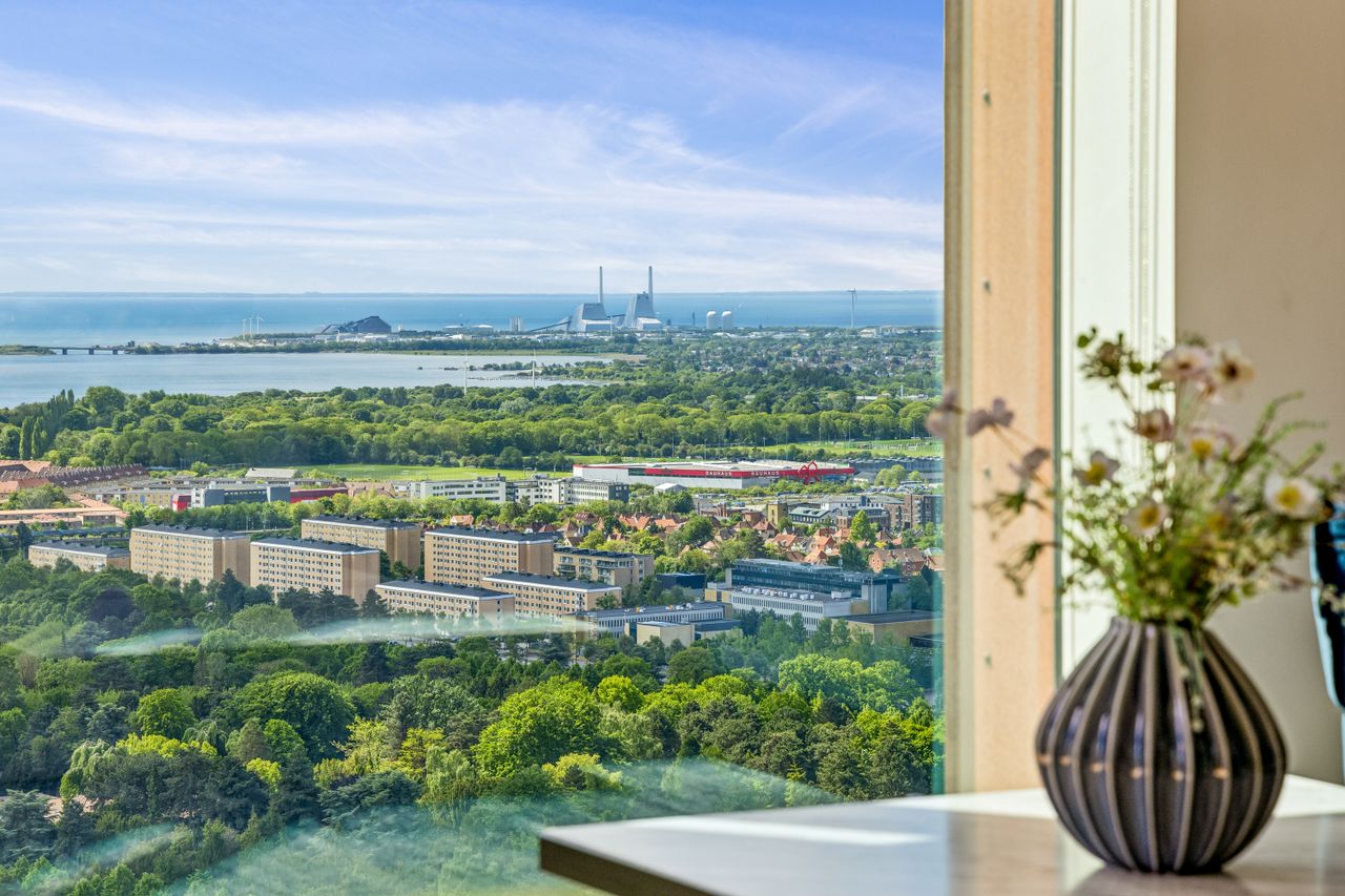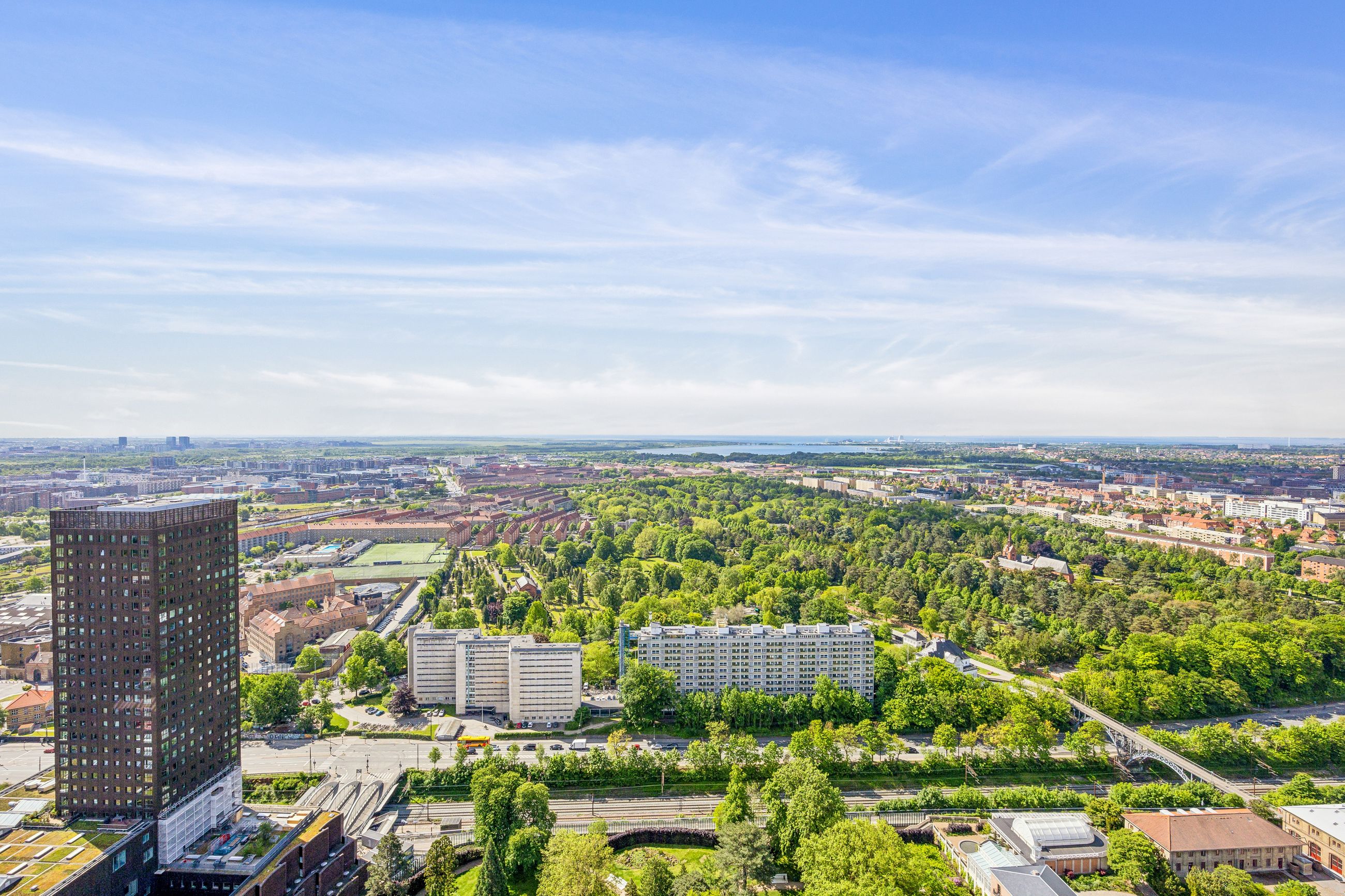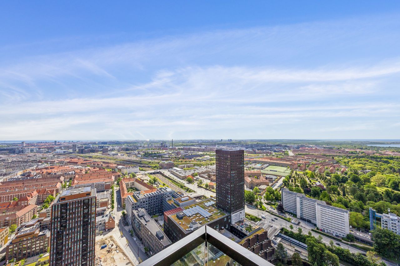 Fra den højeste bygning i København får du et uforglemmeligt panorama. Her har du udsigt over hele hovedstaden, Sverige, stjernerne – og en eksklusiv livsstil på øverste etage. Lejligheden, der ligger på 36. og 37. etage i Pasteurs Tårn, er den højst beliggende i byen, hele 120 meter over gadeplan. Den står som et ikon i den pulserende by, men samtidig i fred og ro helt oppe i luften. Adressen er Fadet 6, 36. 3, og følelsen af at være oppe at flyve er helt fantastisk.