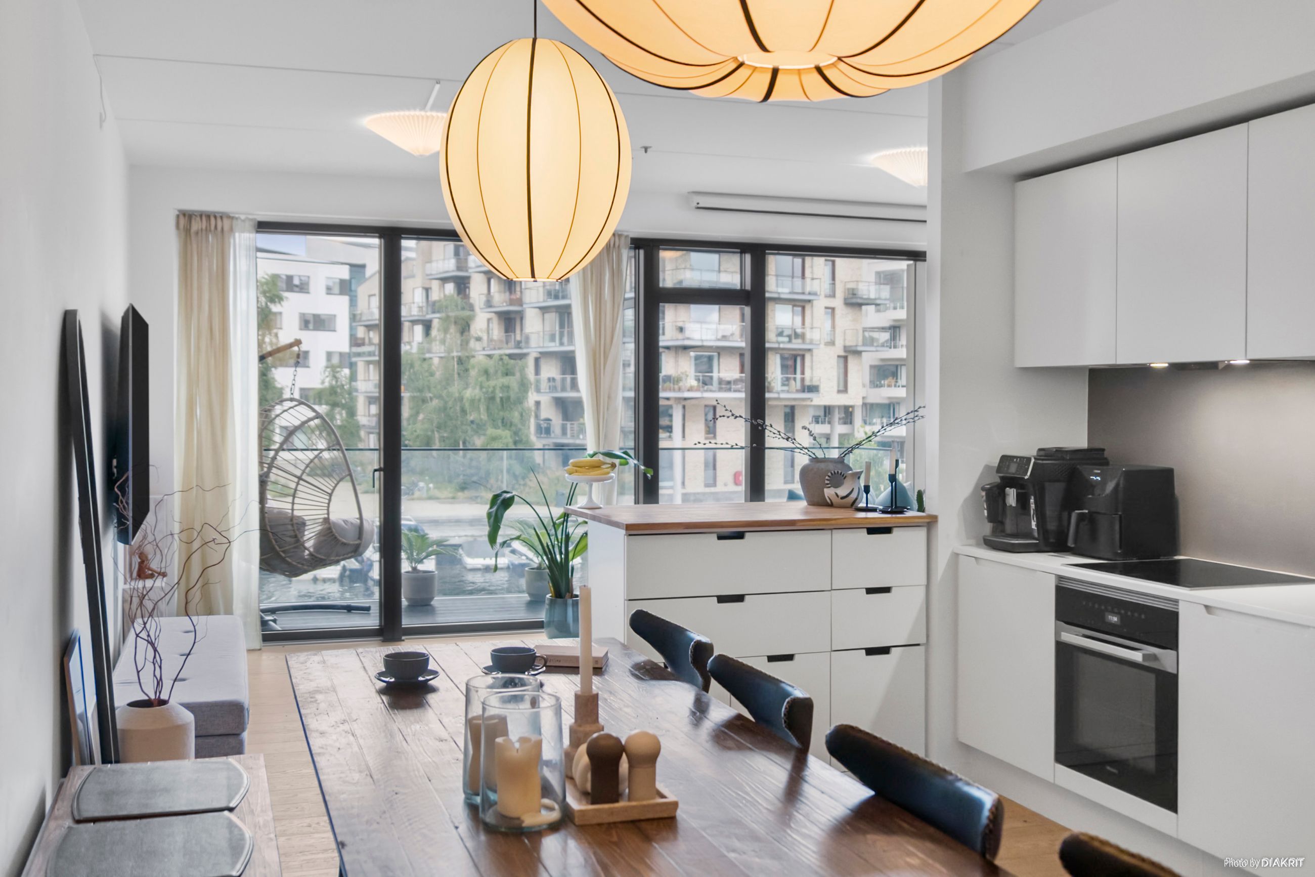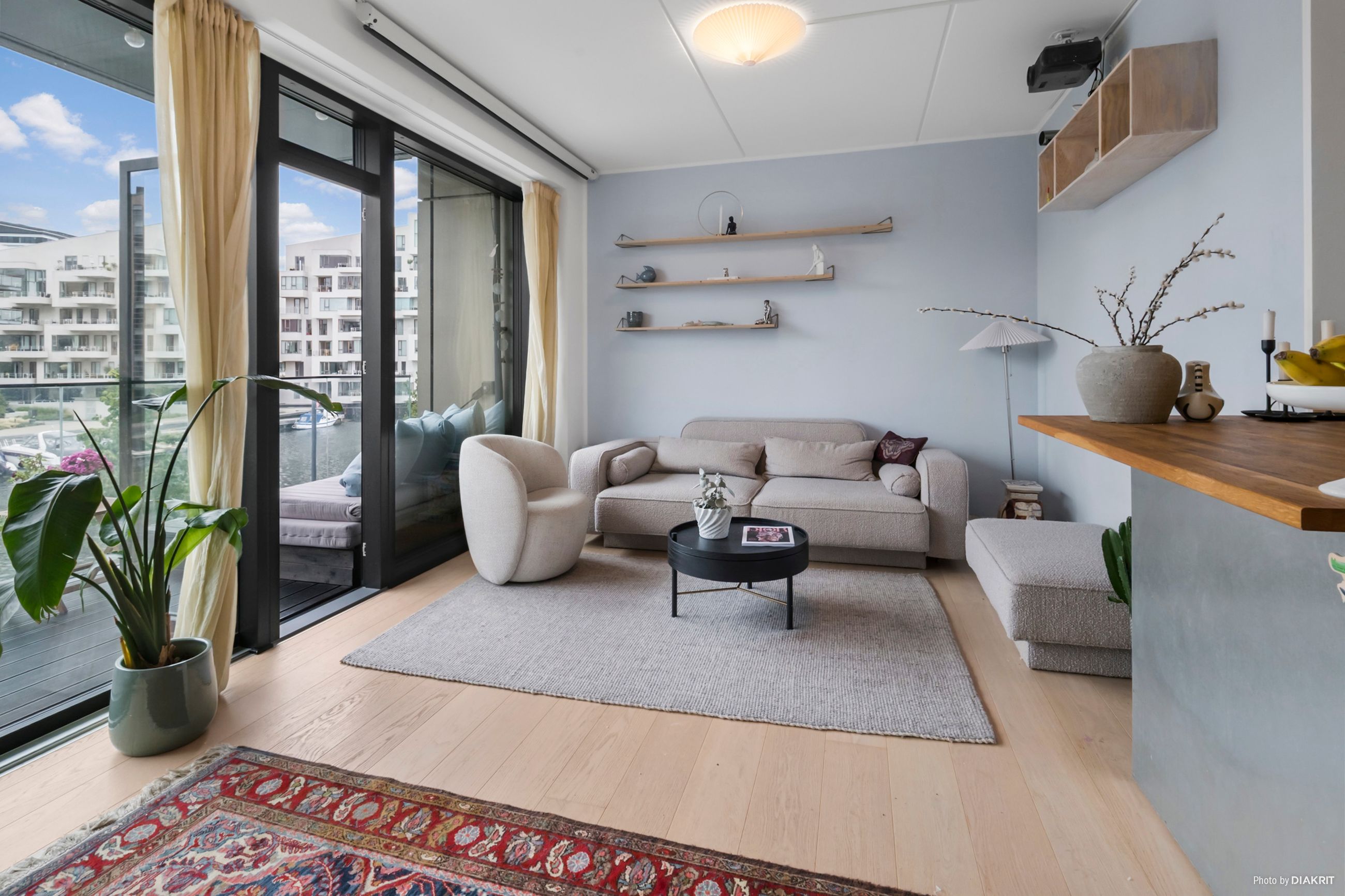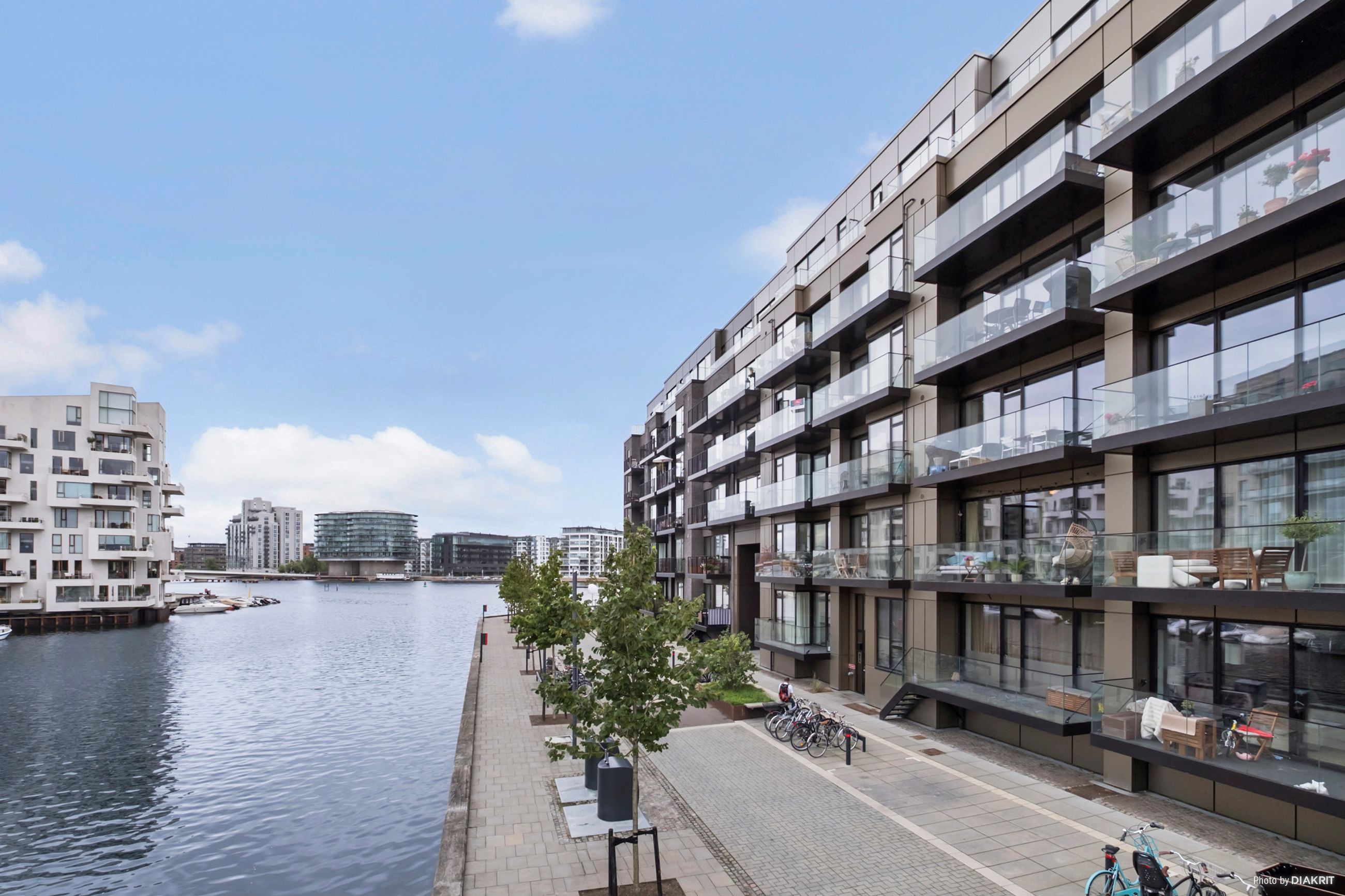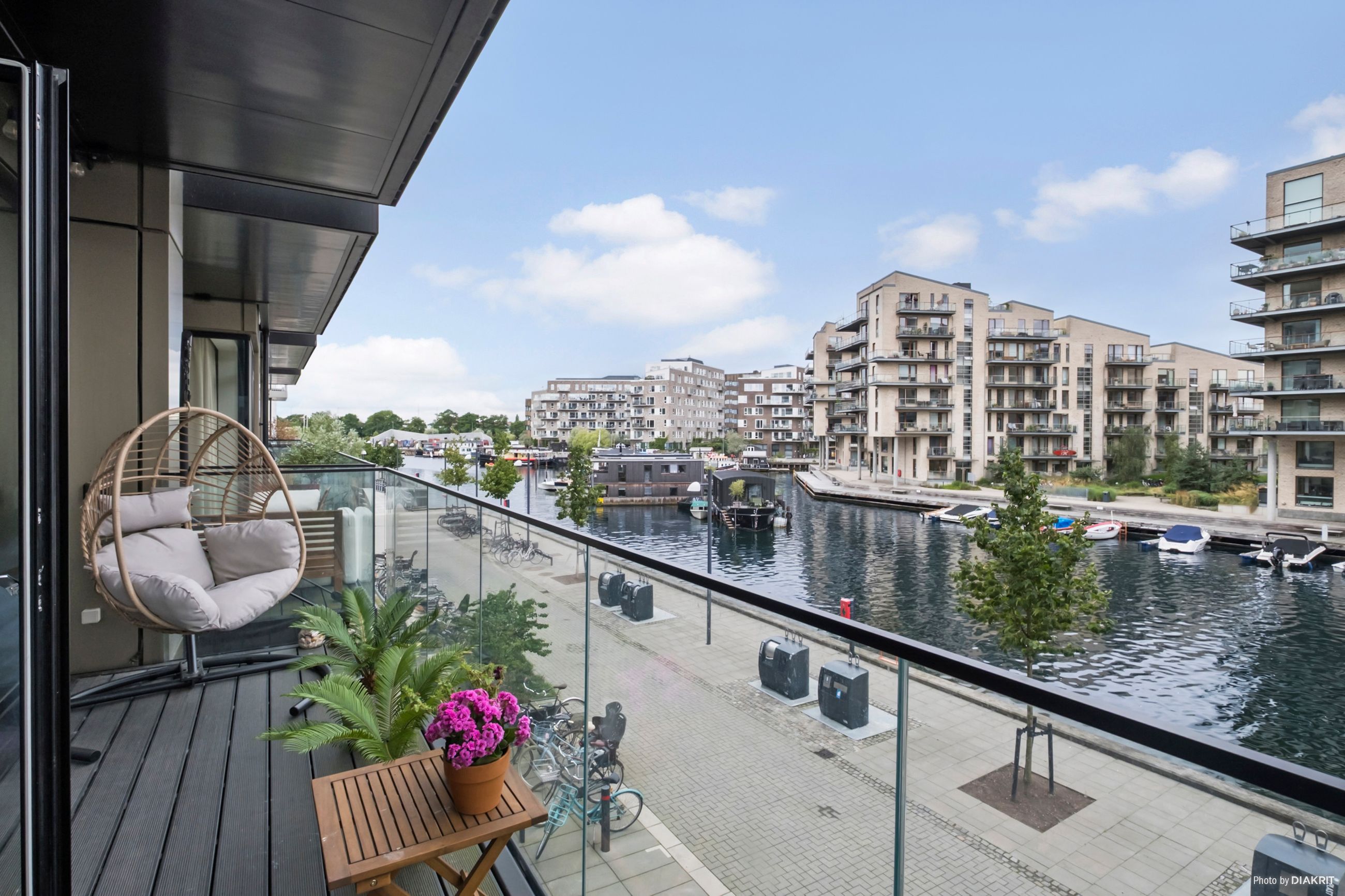 Lejligheden byder på et skønt og åbent opholdsrum med elegant køkken i stilrent design, integrerede hvidevarer og god skabsplads. Herfra er der direkte udgang til en rummelig altan med fantastisk kig til kanalen – en oplagt oase til morgenkaffen eller et glas vin i aftensolen. Fra altanen strækker det dragende kanalkig sig, så langt øjet rækker, helt ned til de historiske tage i Christianshavn. Og når man står i det store køkkenalrum eller opholdsstuen og kigger ud mod vandet, føles det næsten som om, at kanalen flyder helt ind i boligen – en udsigt, der skaber ro og rummer byen på én og samme tid. Planløsningen er gennemtænkt og indrettet med tre reelle værelser – herunder et lyst forældresoveværelse med udgang til grønne omgivelser, samt to børneværelser, som begge har fin størrelse og gode opbevaringsmuligheder. Badeværelset fremstår ligeledes moderne med separat bruseniche, vaskesøjle og stilrene materialer. Lejligheden fremstår i en harmonisk og nutidig stil med lyse gulve, store vinduespartier og en gennemgående rolig farvepalette. Entréen byder velkommen med indbygget opbevaring og en god fordeling til lejlighedens rum. Der er gulvvarme i hele boligen, hvilket sikrer en behagelig temperatur året rundt. Altanen mod vandet giver ikke blot skønne uderum, men trækker samtidig det maritime miljø helt ind i boligen – her forenes byliv og natur på smukkeste vis.