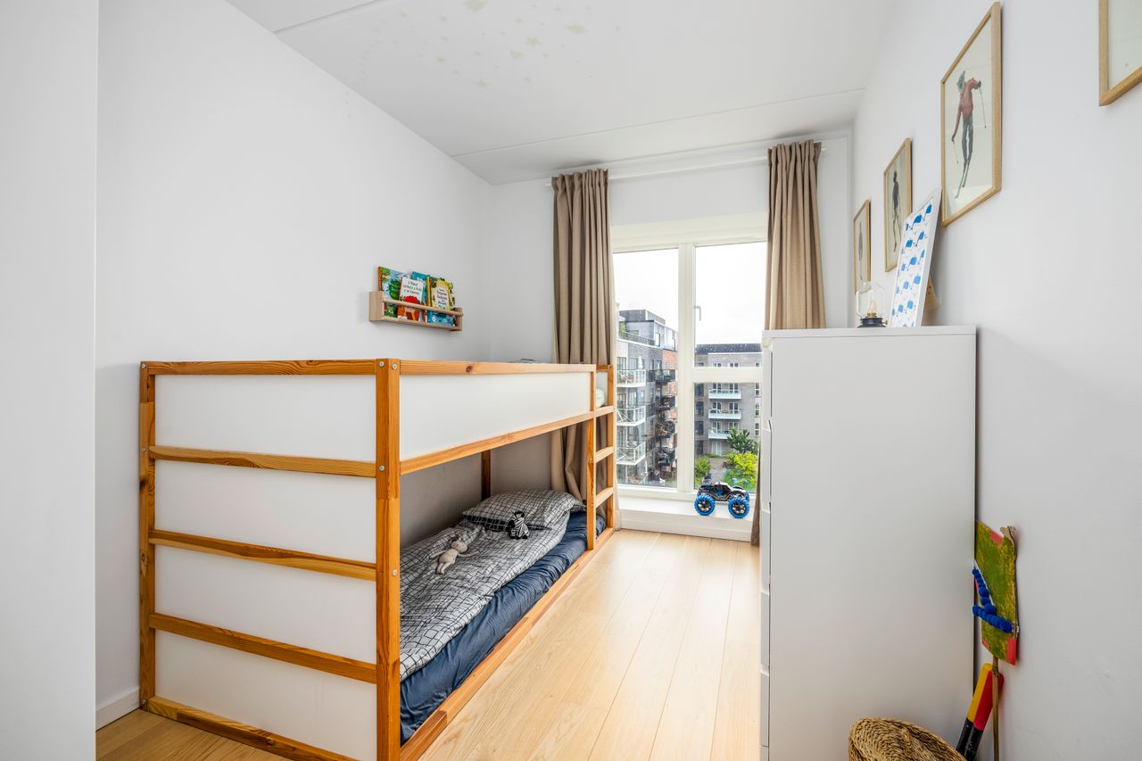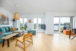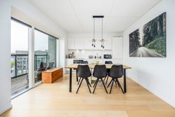 Lejligheden: På Monica Zetterlunds Vej venter denne fantastiske 4-værelses lejlighed med en af de brede altaner, som byder på en helt betagende udsigt over vandet og en perfekt indretning til en børnefamilie. Når I træder ind i lejligheden, vil I blive mødt af en rummelig entré, der giver god plads til både sko og overtøj. Herfra kan I nemt nå det moderne og stilfulde badeværelse samt fortsætte ind i lejligheden hjerte, det store køkken-alrum. I vil her opleve et lyst og imødekommende køkken-alrum med et køkken med flotte hvide fronter. Der er rigelig plads til et stort spisebord, og stuen kan indrettes med et komfortabelt sofaarrangement. Fra stuen kan I nyde den enestående udsigt over vandet, solnedgangene og aftensolen fra altanen. Derudover vil I finde et rummeligt soveværelse med adgang til boligens andet badeværelse, to dejlige børneværelser og brugsret til kælderrum til opbevaring.