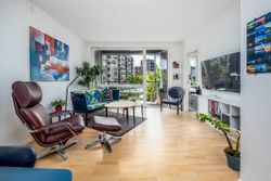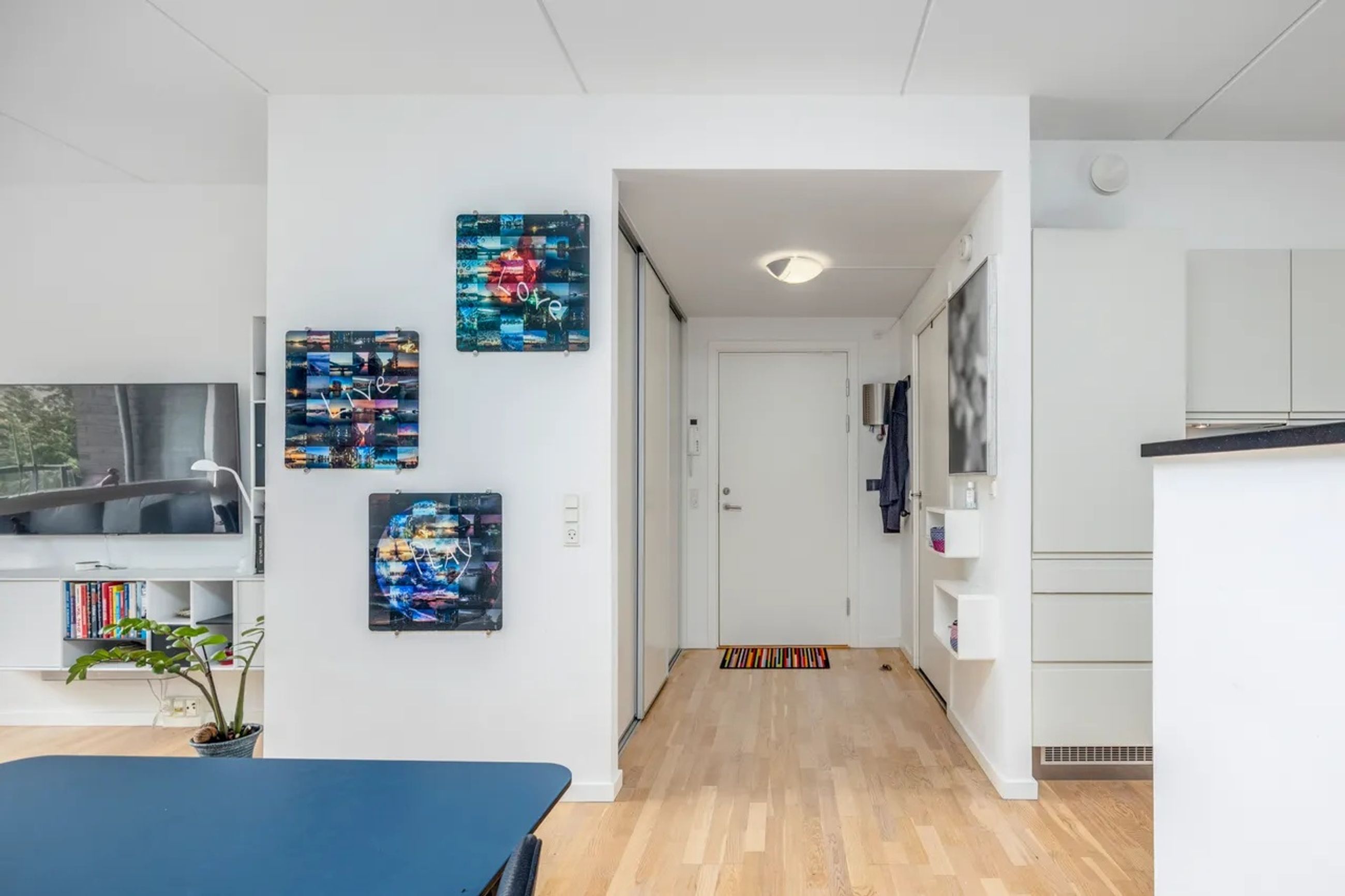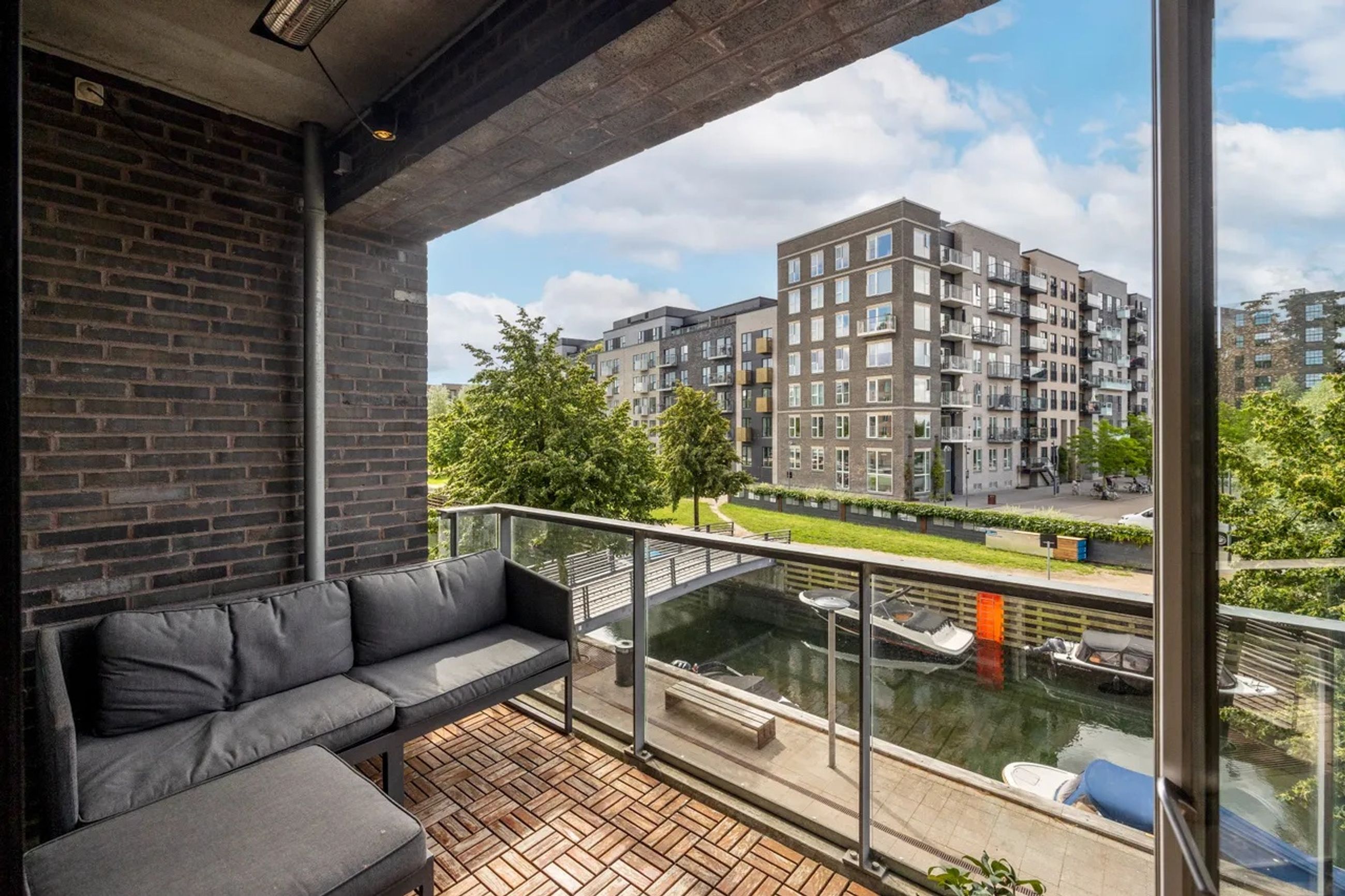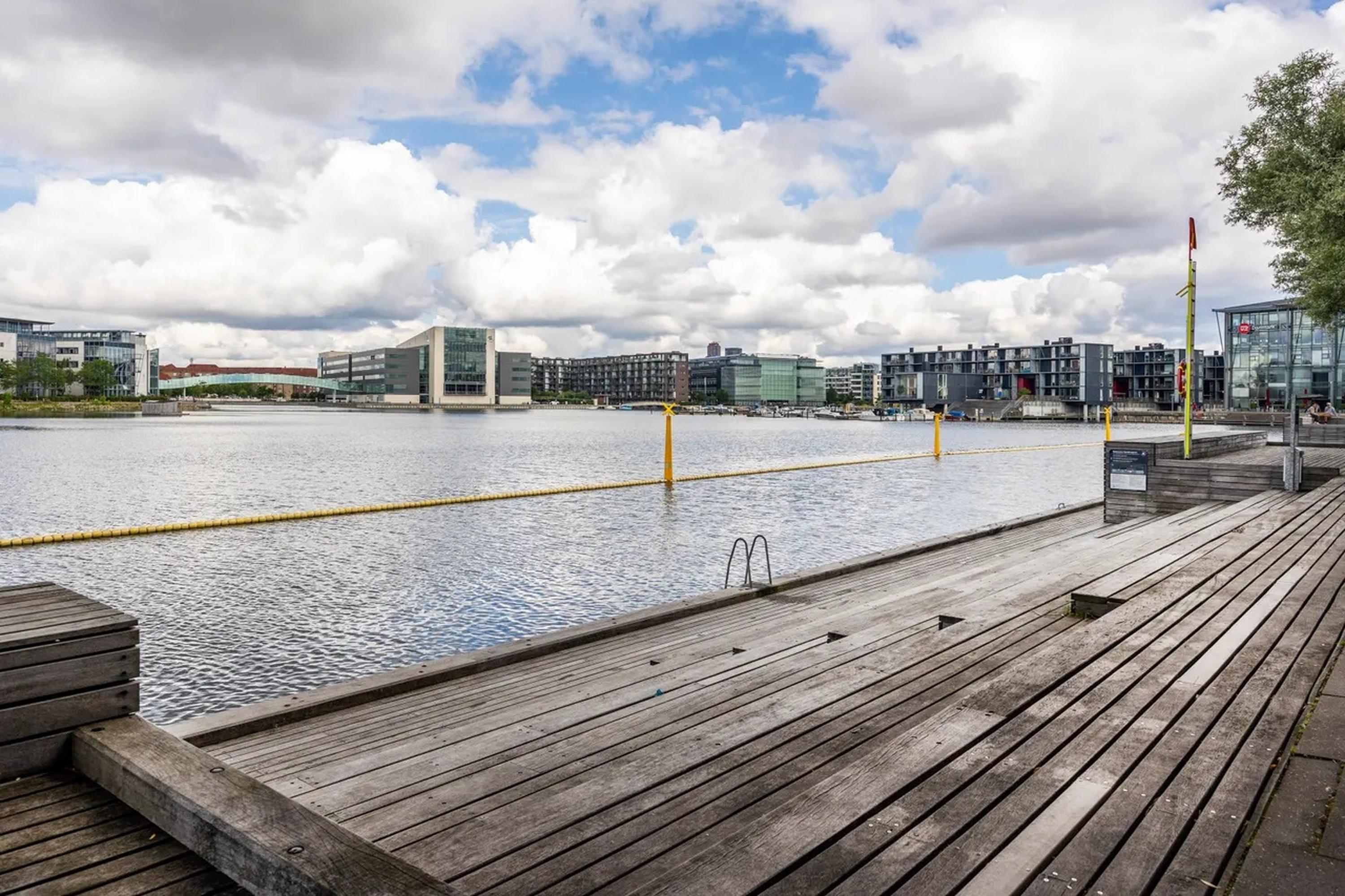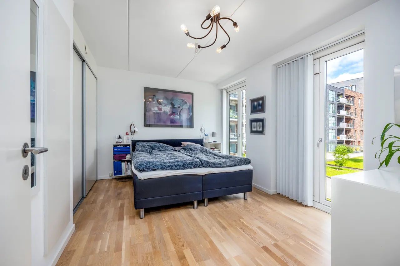 Højt til himlen, sol fra syd og kig til det glitrende vand – på Thad Jones Vej 14, 1. th. finder du en lys og veldisponeret lejlighed på 100 kvm, hvor funktionalitet, atmosfære og delevenlighed går hånd i hånd.