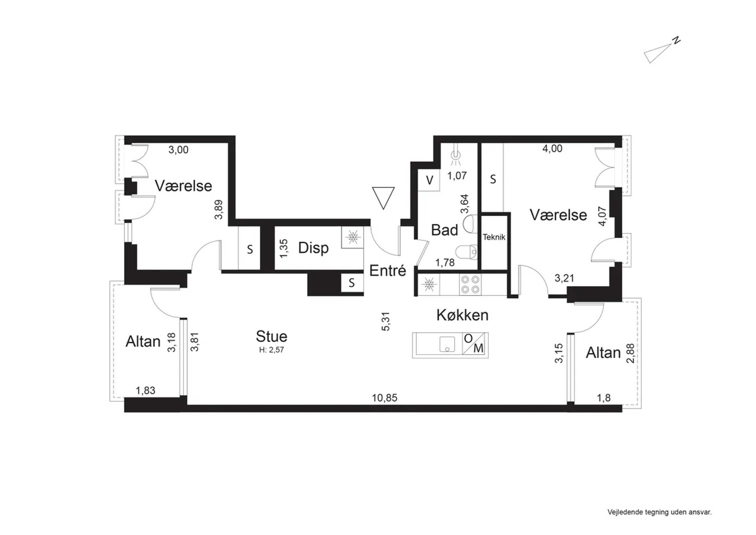 Lejligheden er oplagt til både par, små familier og som delelejlighed, da de to soveværelser er placeret i hver sin ende af boligen, hvilket giver ideel opdeling og privatliv. Begge værelser har fine indretningsmuligheder, og planløsningen er gennemtænkt og fleksibel.