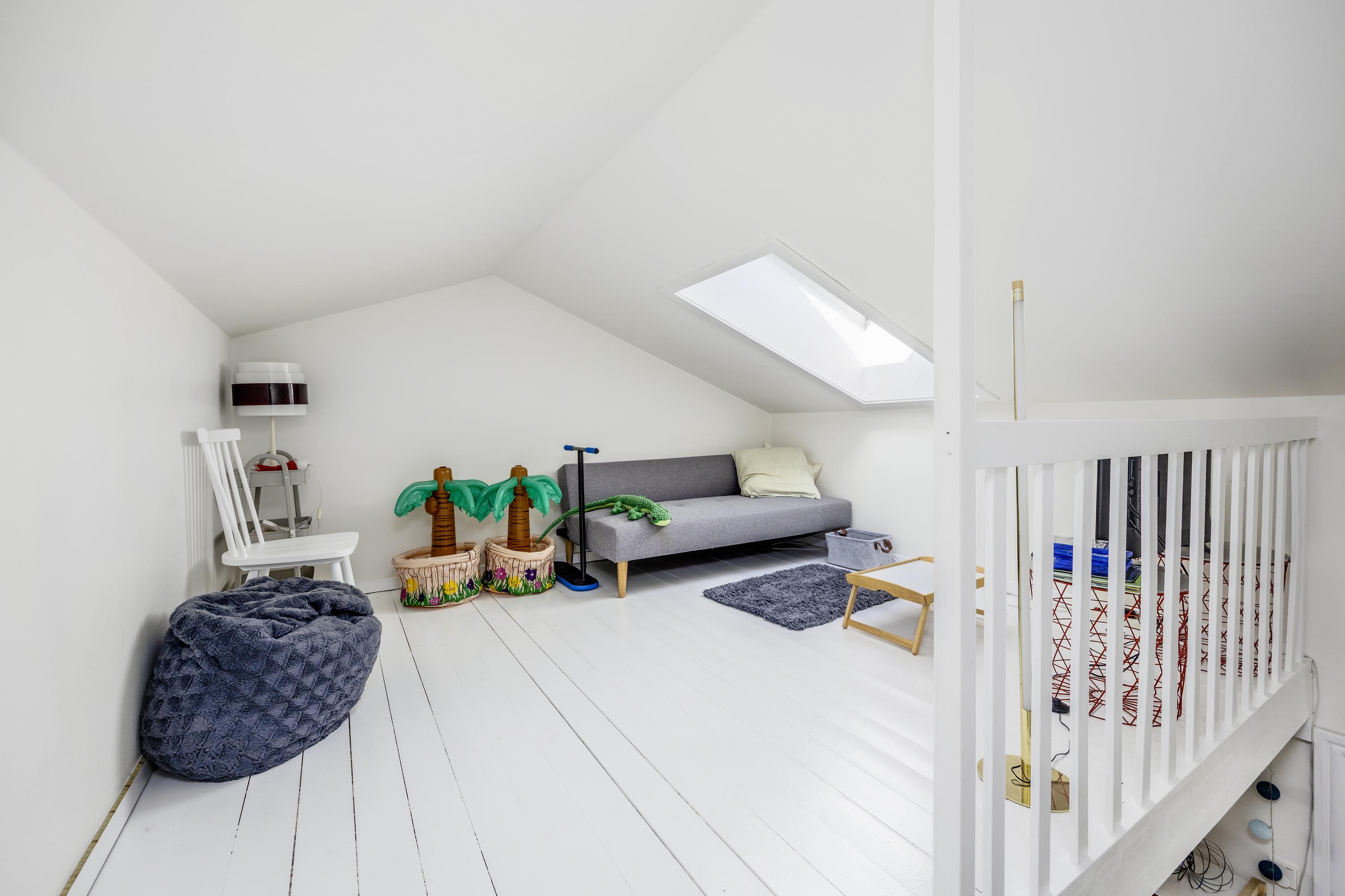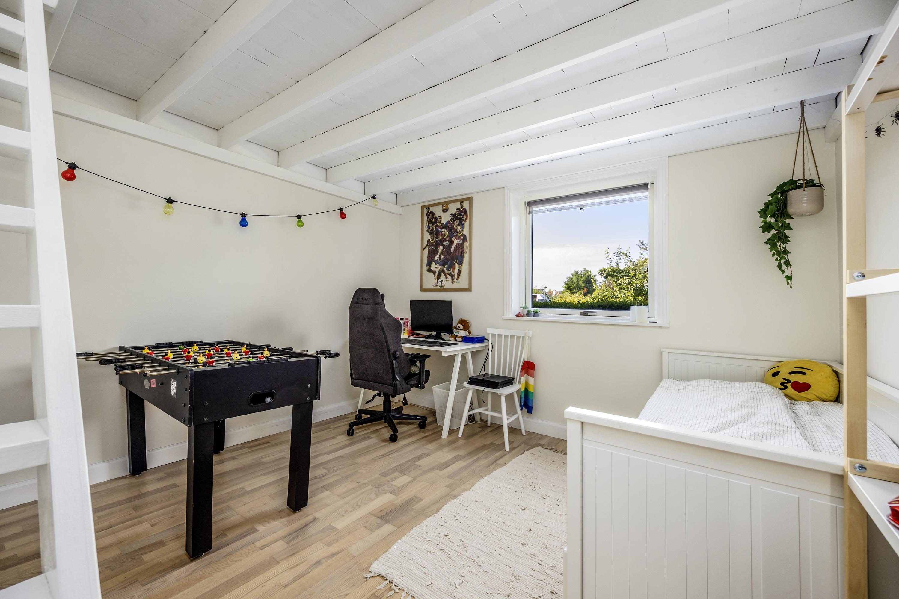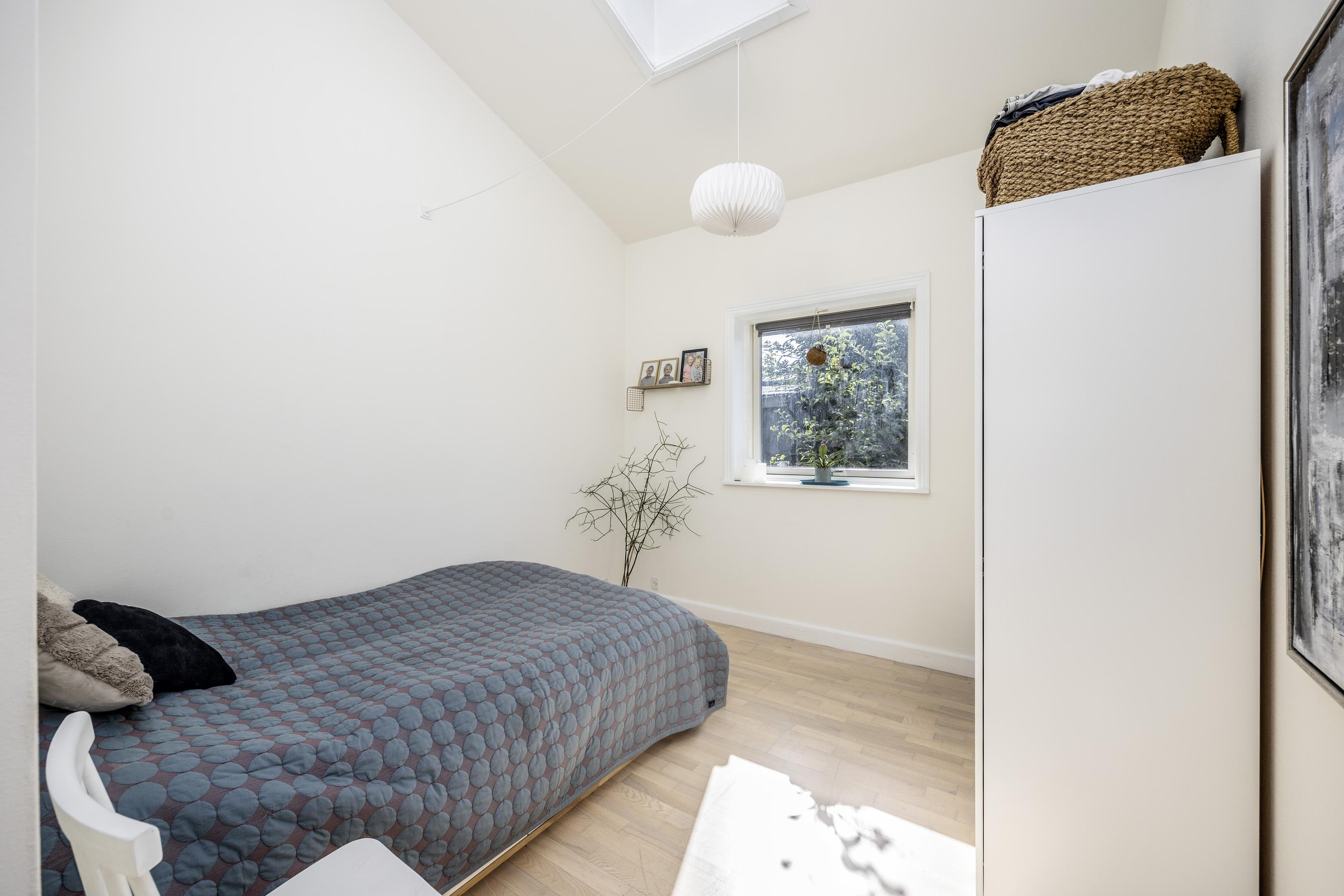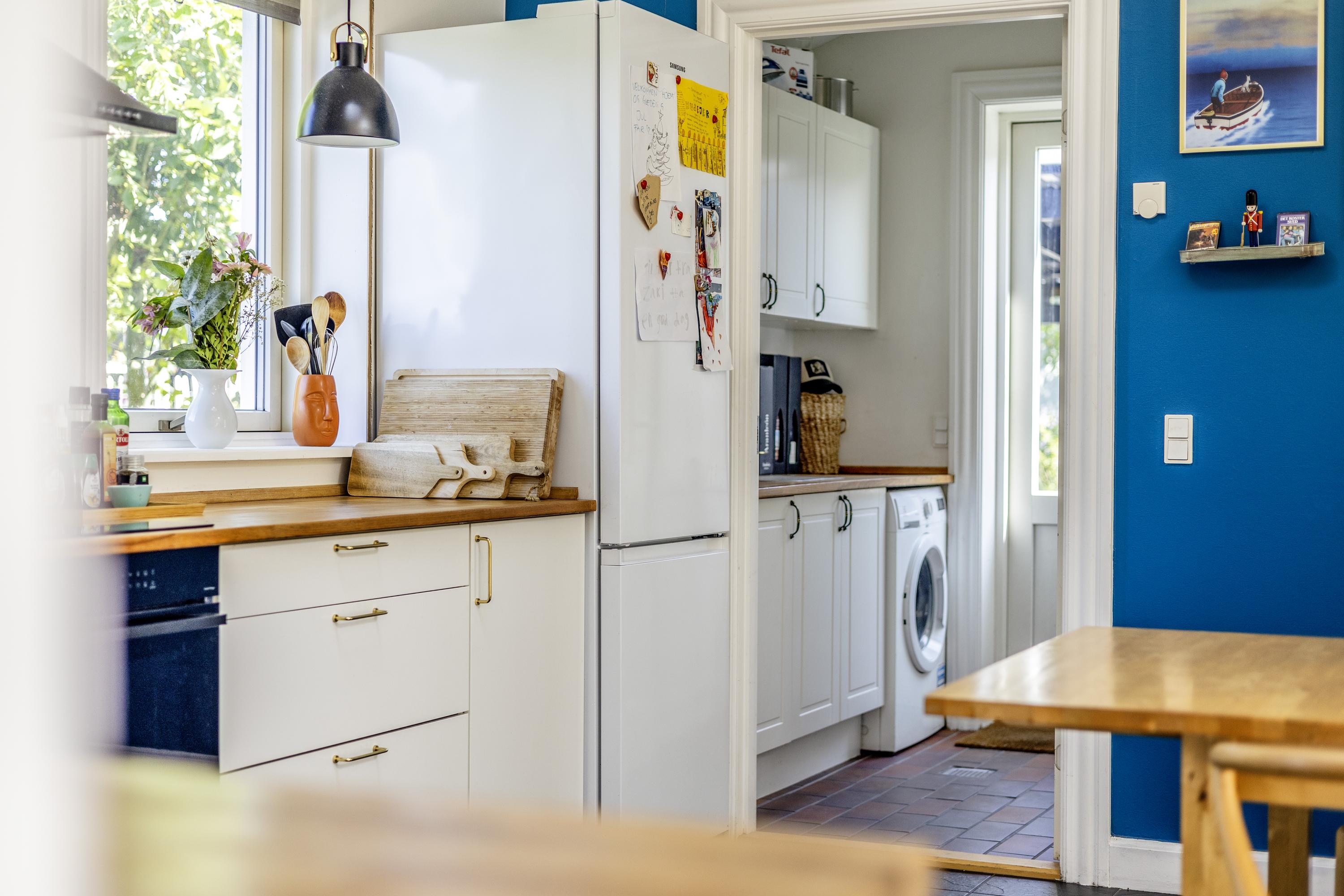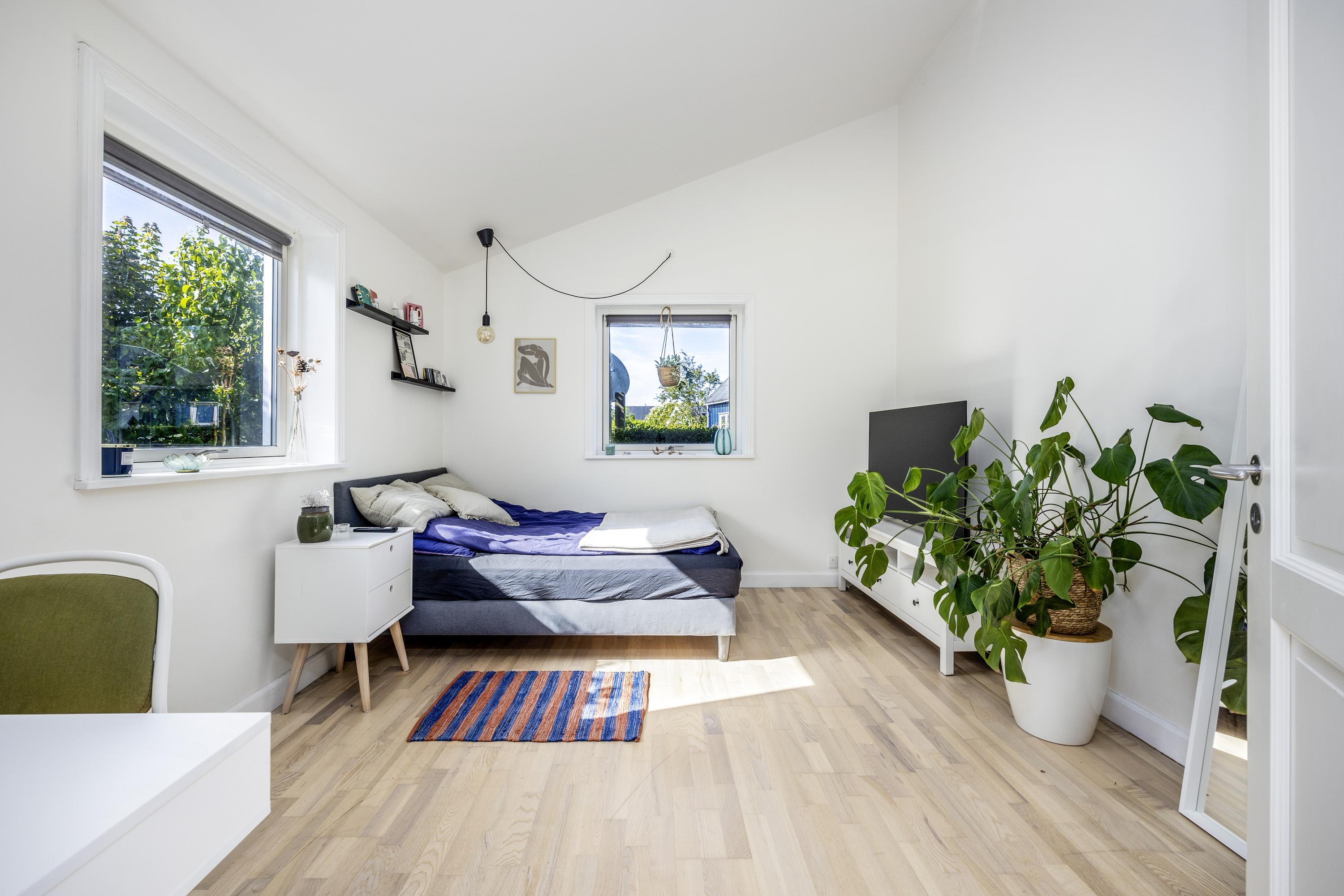 Velkommen til et sjældent skønt haveforeningshus, hvor ro, lys og grønne omgivelser går hånd i hånd med byens bekvemmeligheder. Det blå træhus præsenterer sig indbydende med brede træterrasser, carport i direkte forbindelse og en nem, frodig have til sommerliv fra første dag.