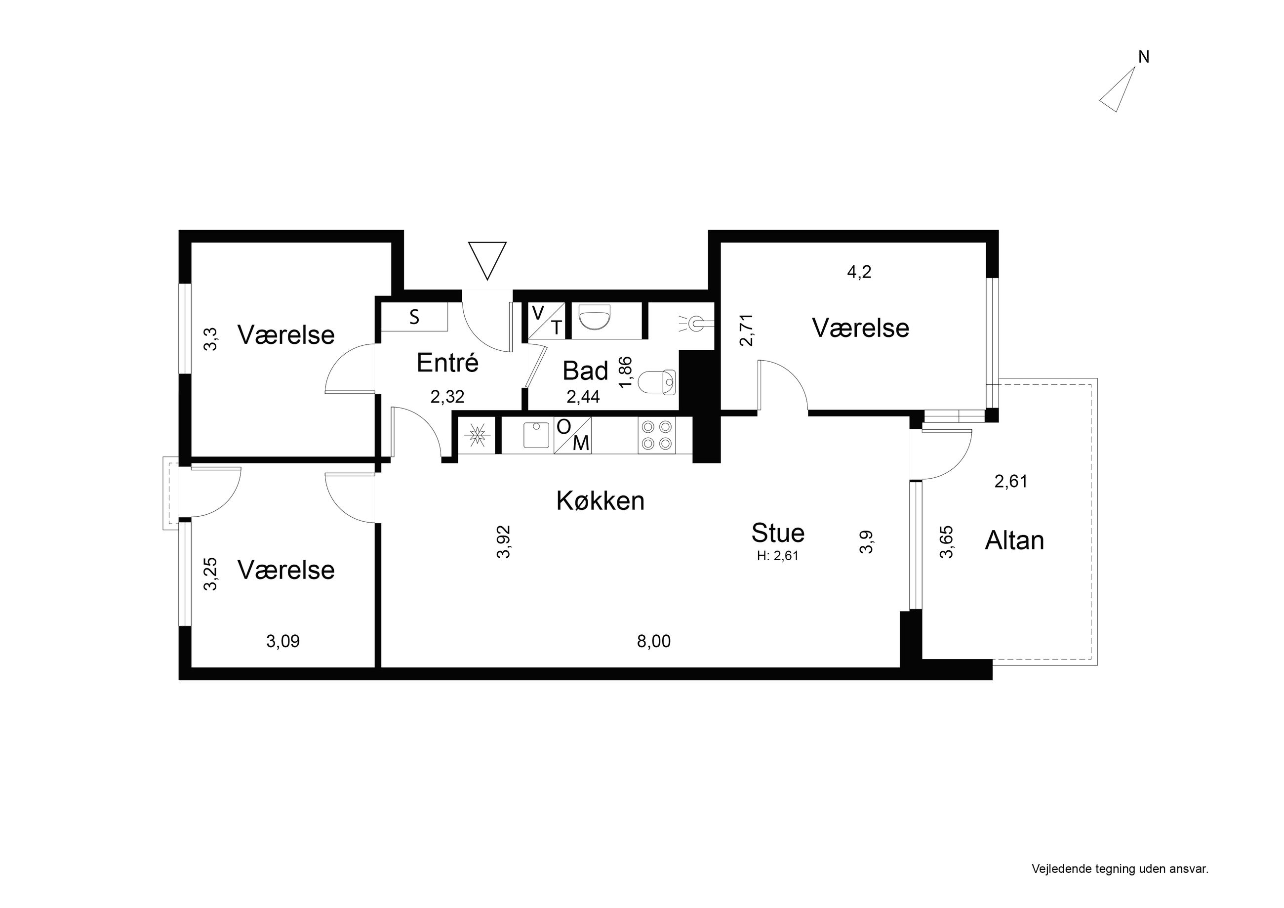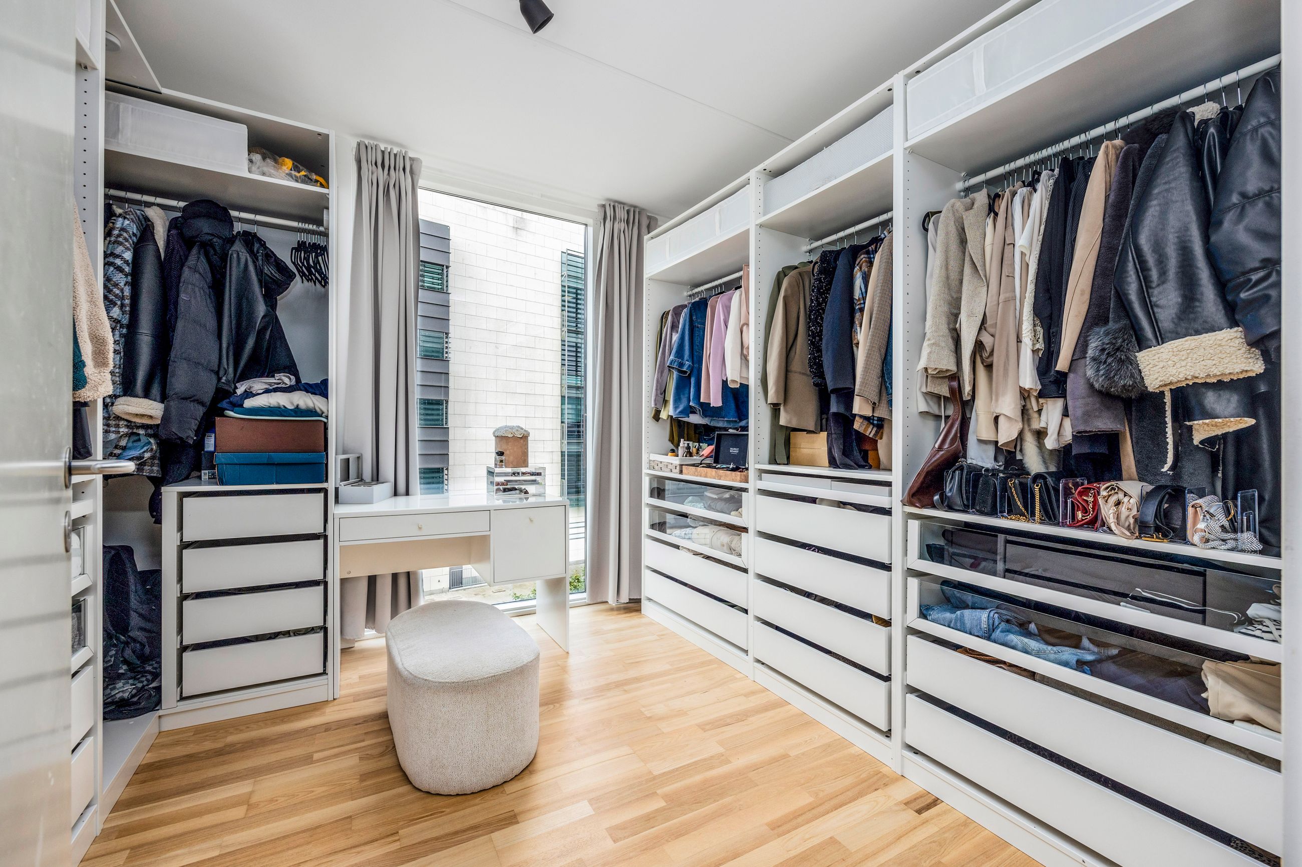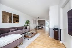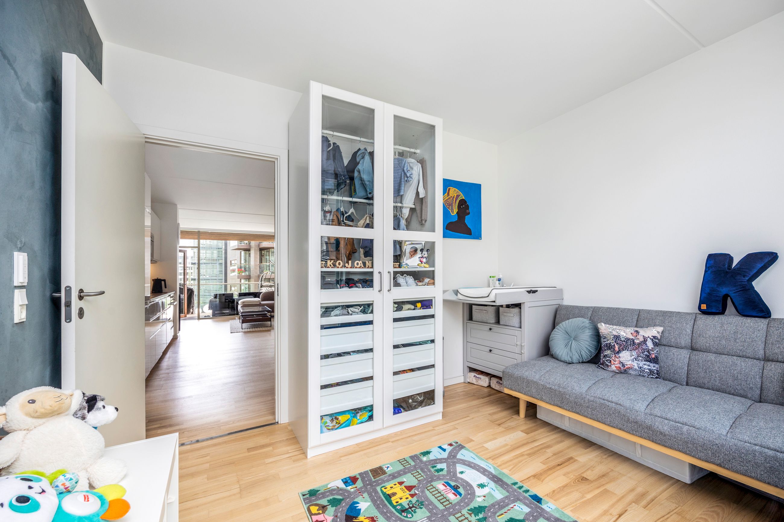 Lejligheden rummer tre indbydende værelser– et oplagt master bedroom med stort vinduesparti og smuk udsigt til vandet, et lyst børneværelse med fransk altan og ligeledes kig til vandet samt et fleksibelt værelse, der i dag fungerer som walk-in, men også kan indrettes som kontor eller gæsteværelse. Hjertet i lejligheden er det lyse, åbne køkken/alrum og stue i ét. Det elegante, hvide grebsfrie køkken er udstyret med integrerede hvidevarer, ovn i ergonomisk højde, opvaskemaskine og rigeligt med bordplads– perfekt til både hverdagsmad og gæstemiddage. De store vinduespartier i opholdsrummet lader solen strømme ind og skaber en indbydende atmosfære året rundt. Herfra er der direkte adgang til den rummelige, overdækkede altan, hvor der er plads til både loungemøbler og grill. En indbygget stikkontakt gør det muligt at tilslutte terrassevarmer eller hyggelig belysning, så du kan nyde de lange sommeraftener eller de kølige efterårsdage i fulde drag.