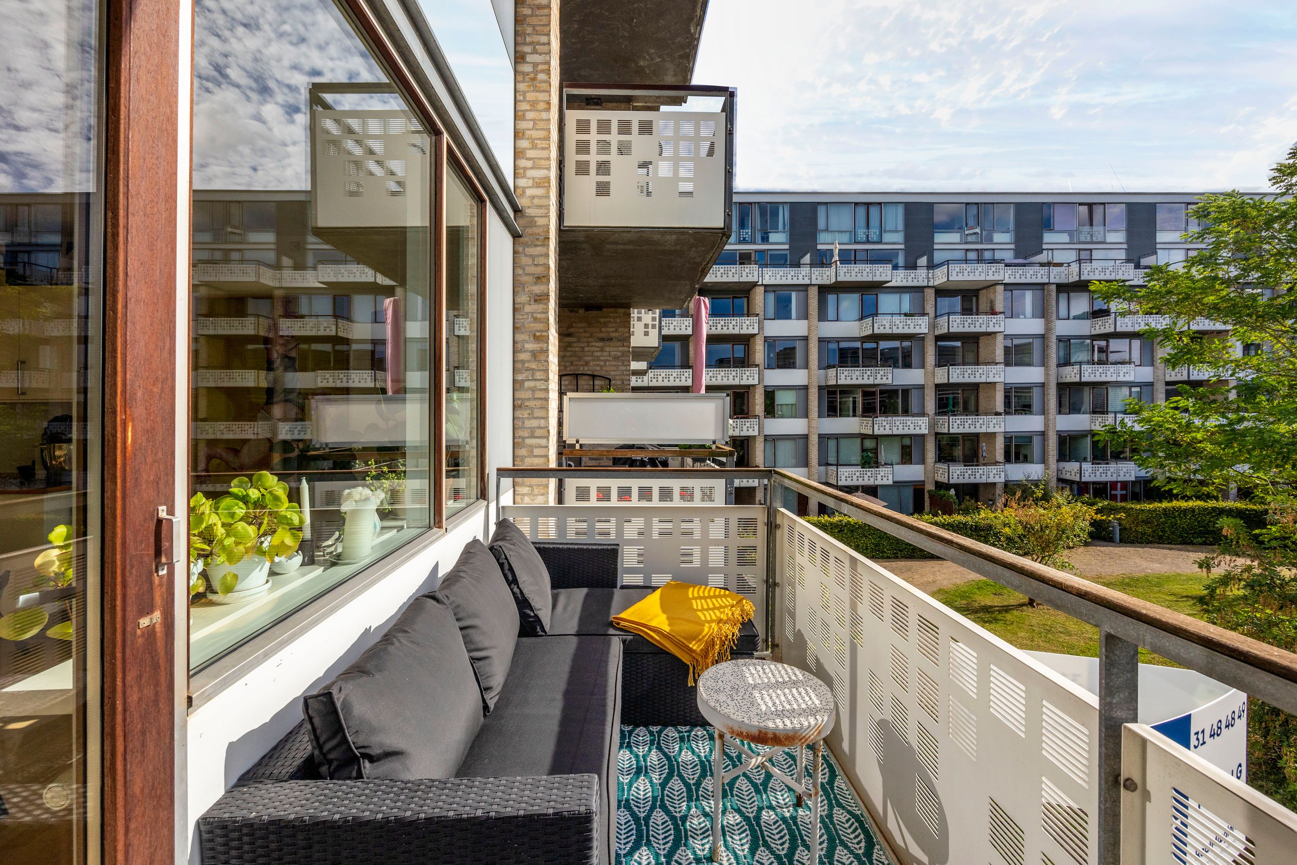 Altanen er en privat og solrig oase, hvor du kan nyde udsigten til vandet og det grønne strøg langs kanalen. Her er ingen generende indkig – kun ro og luft omkring dig.