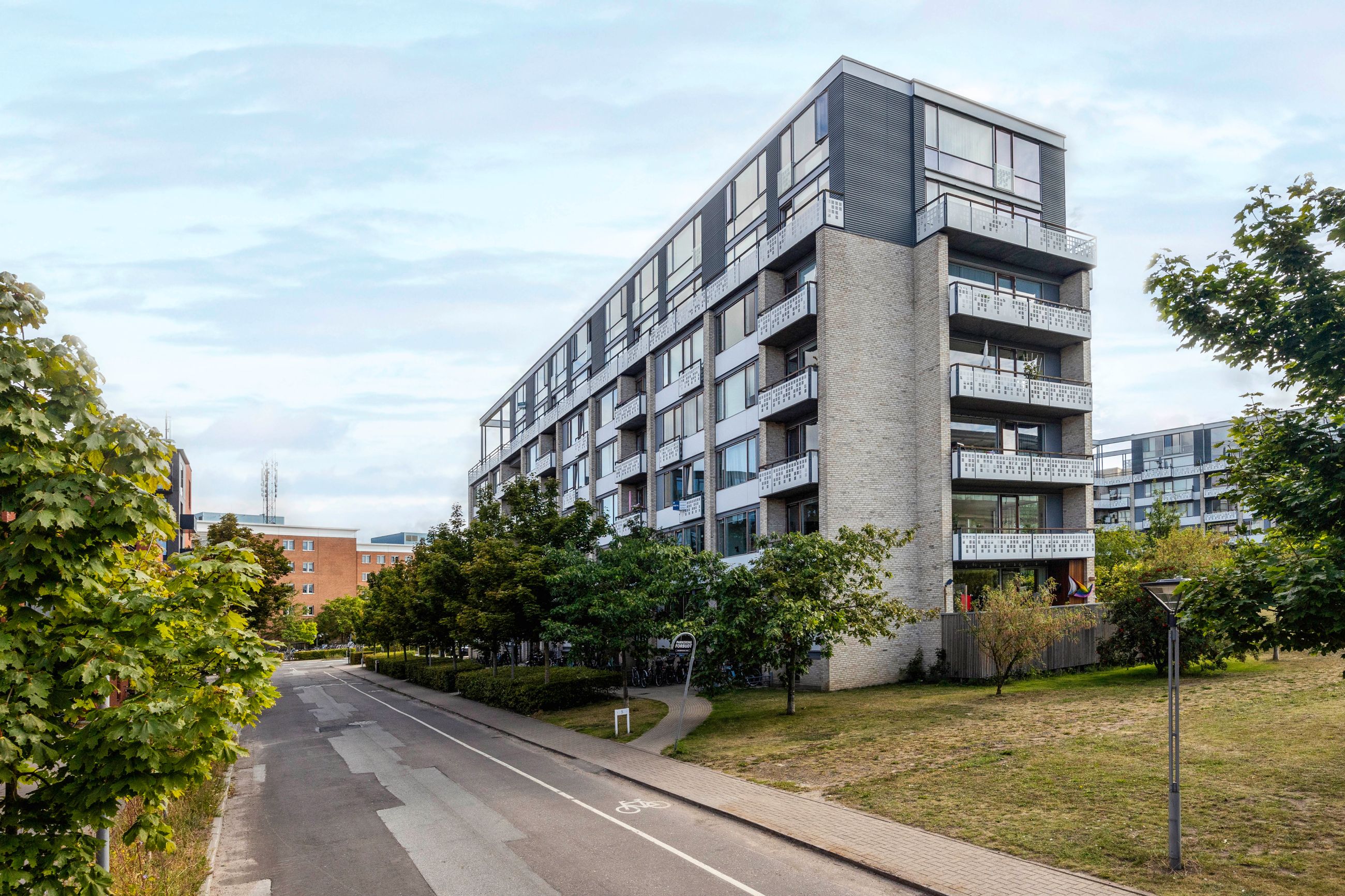 Ejendommen er moderne og velholdt med elevator, aflåst cykelparkering, hyggeligt gårdmiljø og brugsret til kælderrum – samt adgang til en stor fælles tagterrasse med flot udsigt over området, som frit kan benyttes af beboerne.