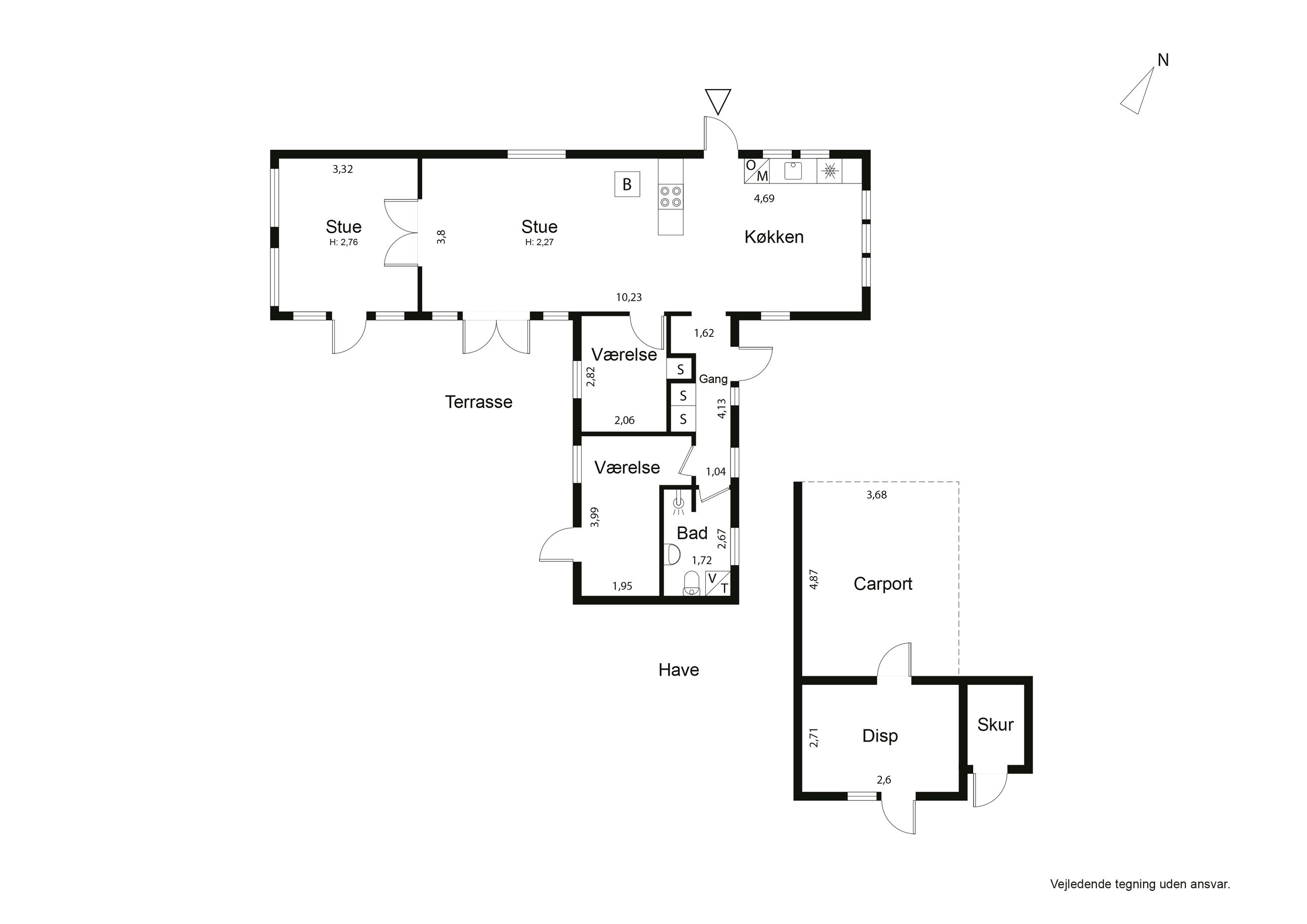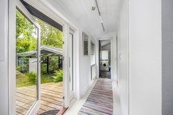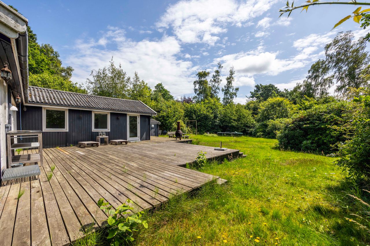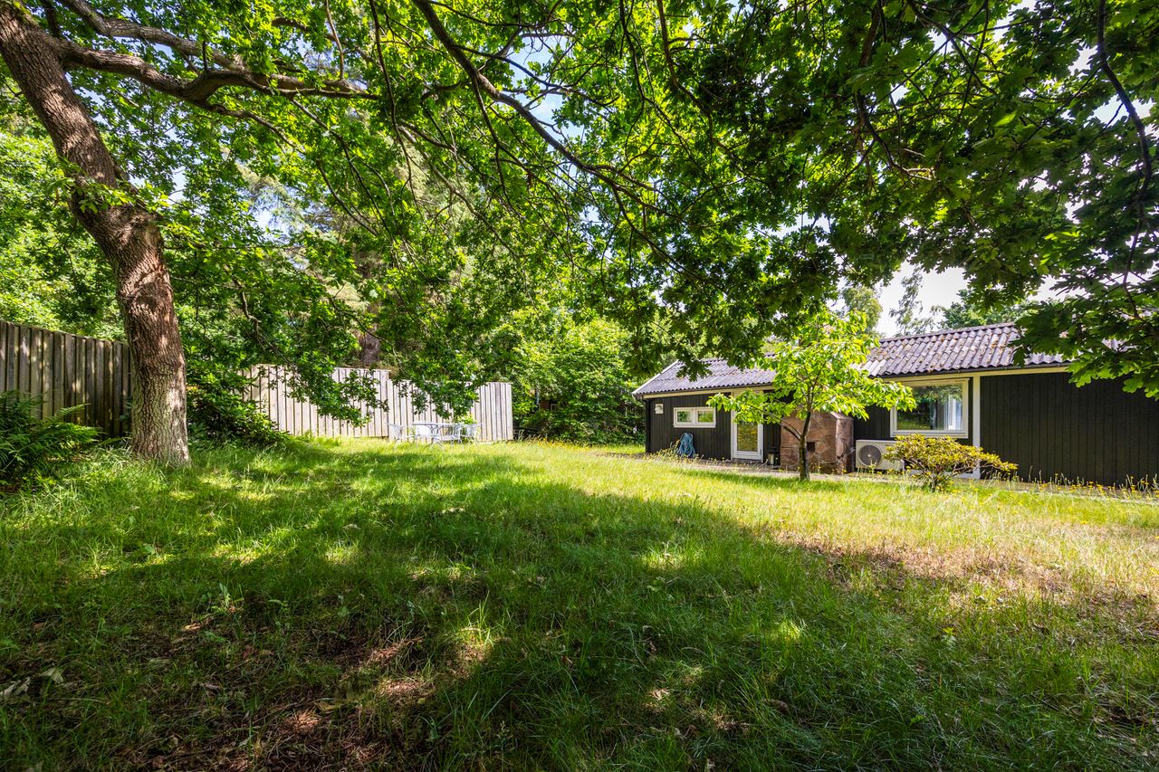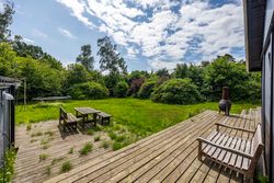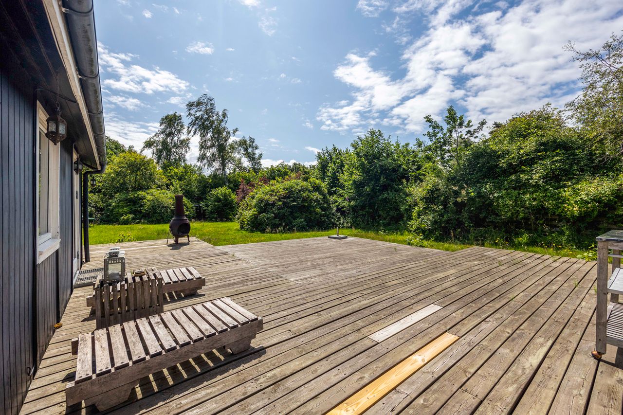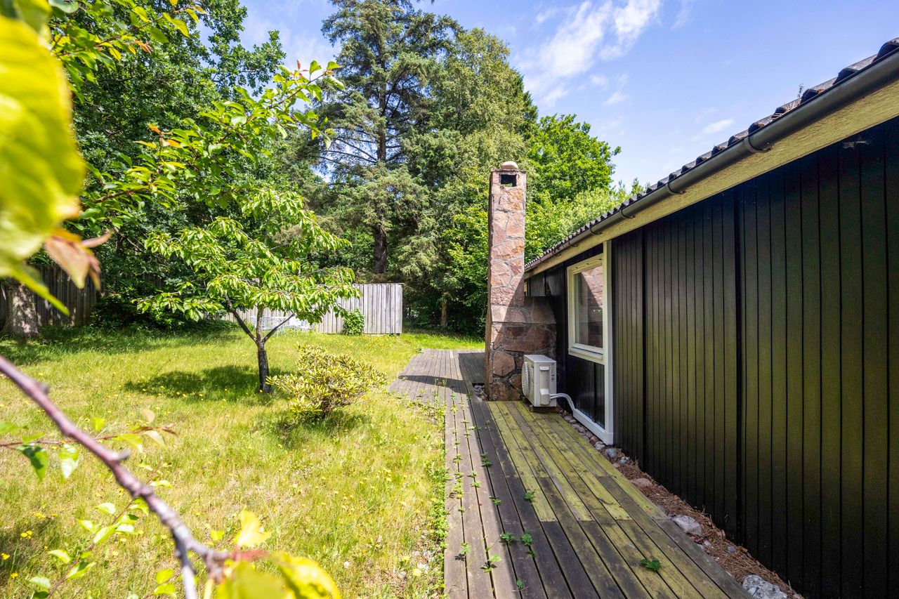 Udenfor venter en stor, frodig have med høje træer og buske, som skaber privatliv og en skøn, grøn oase. Den store træterrasse bliver hurtigt familiens samlingspunkt i sommerhalvåret med masser af plads til grill, leg og afslapning. Derudover får du både carport, skur og et praktisk disp. rum.