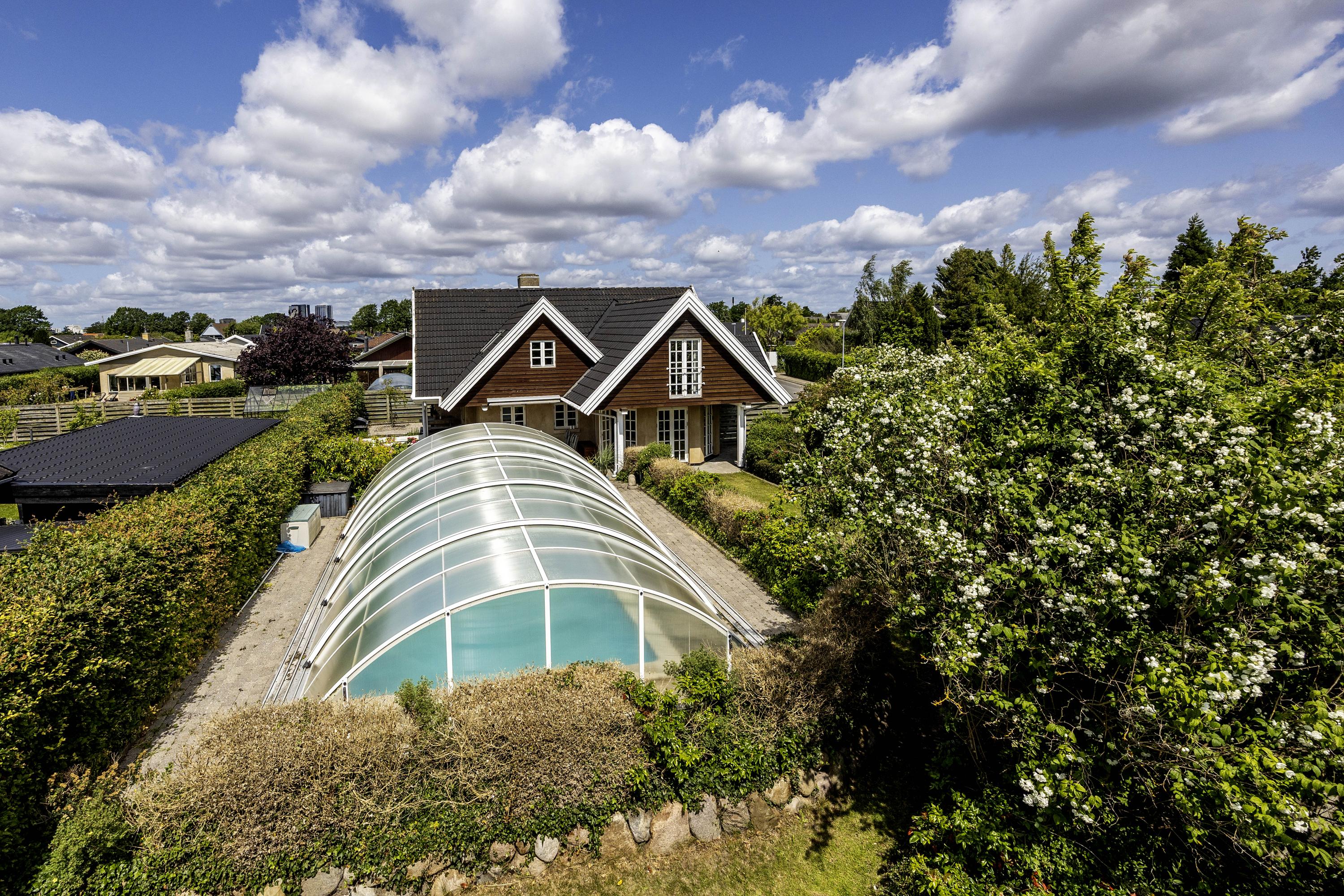 Charmerende villa på 200 m2 med sydøstvendt have, overdækket pool og mulighed for 3 soveværelser på 1. sal