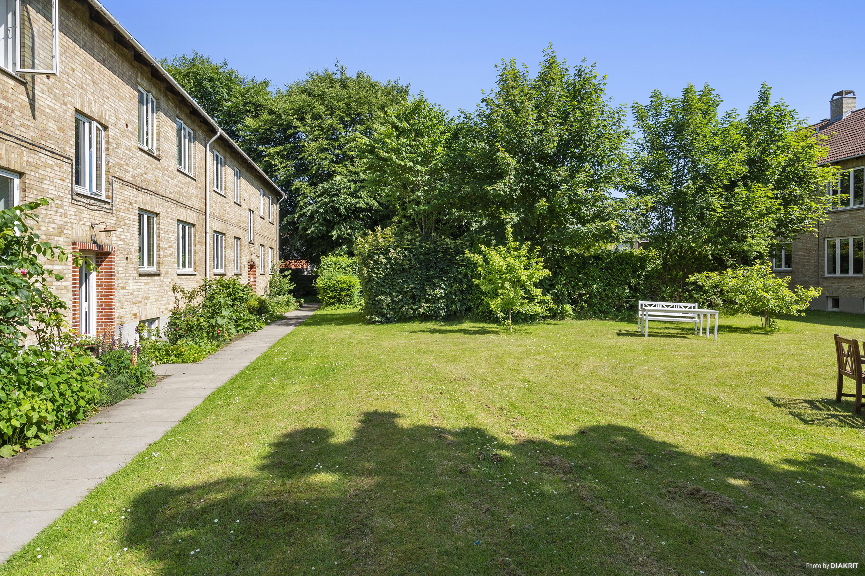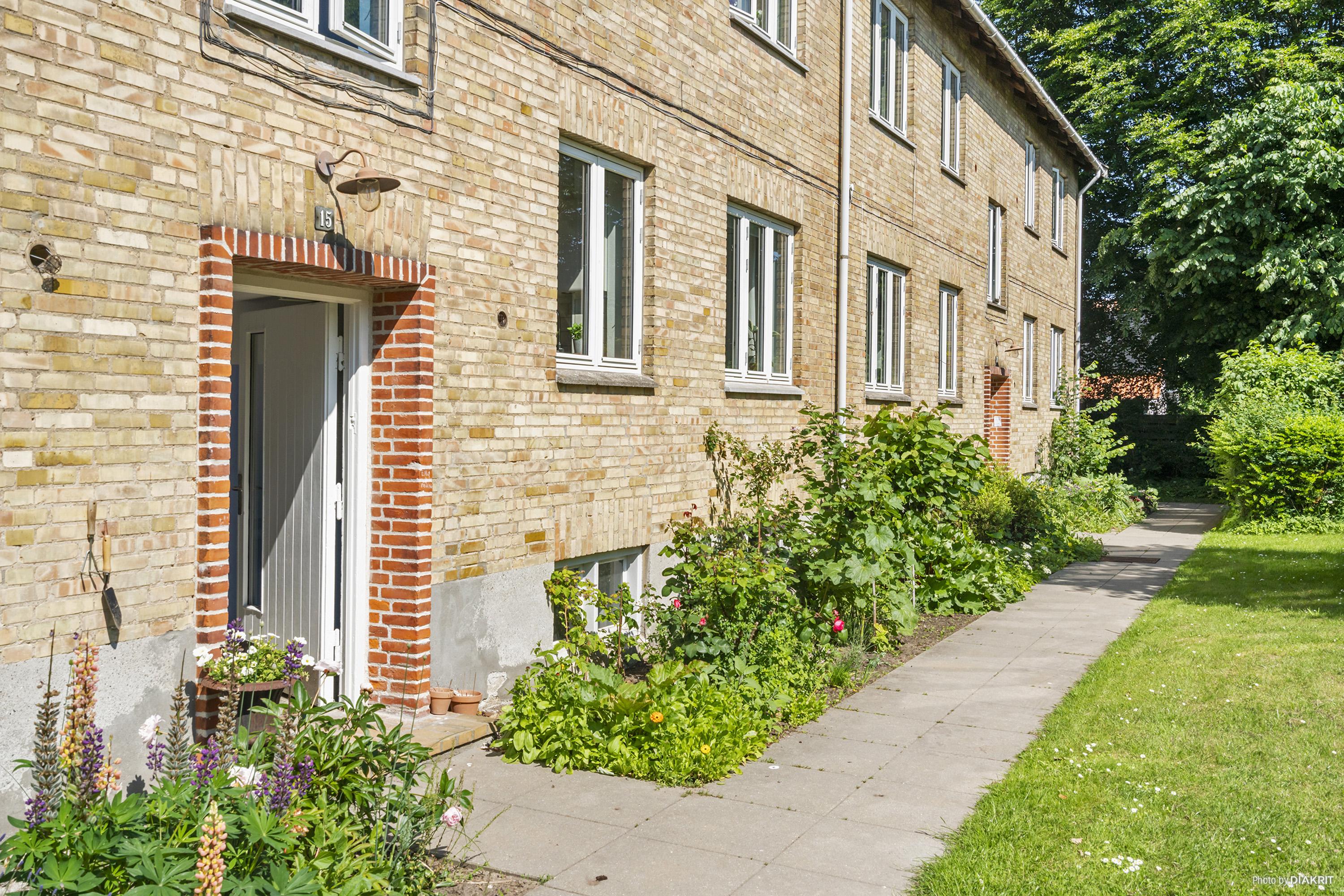 Lejligheden ligger roligt i smukke grønne omgivelser.