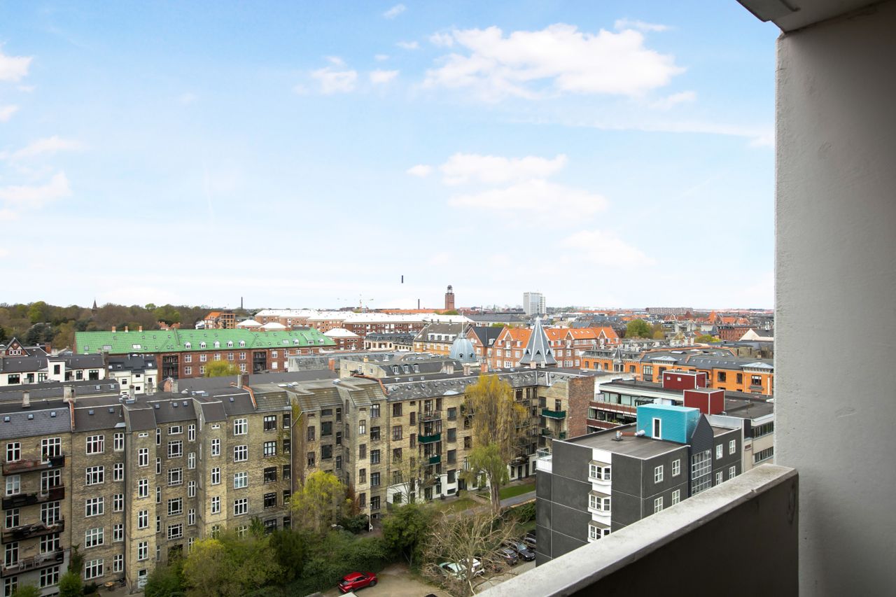3-værelses på 9. sal med stor sydvendt altan, elevator og parkering – Indre Frederiksberg ved metroen