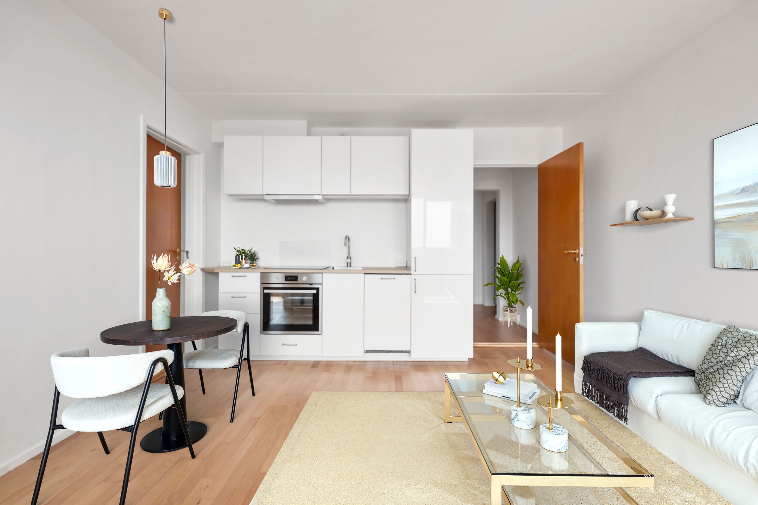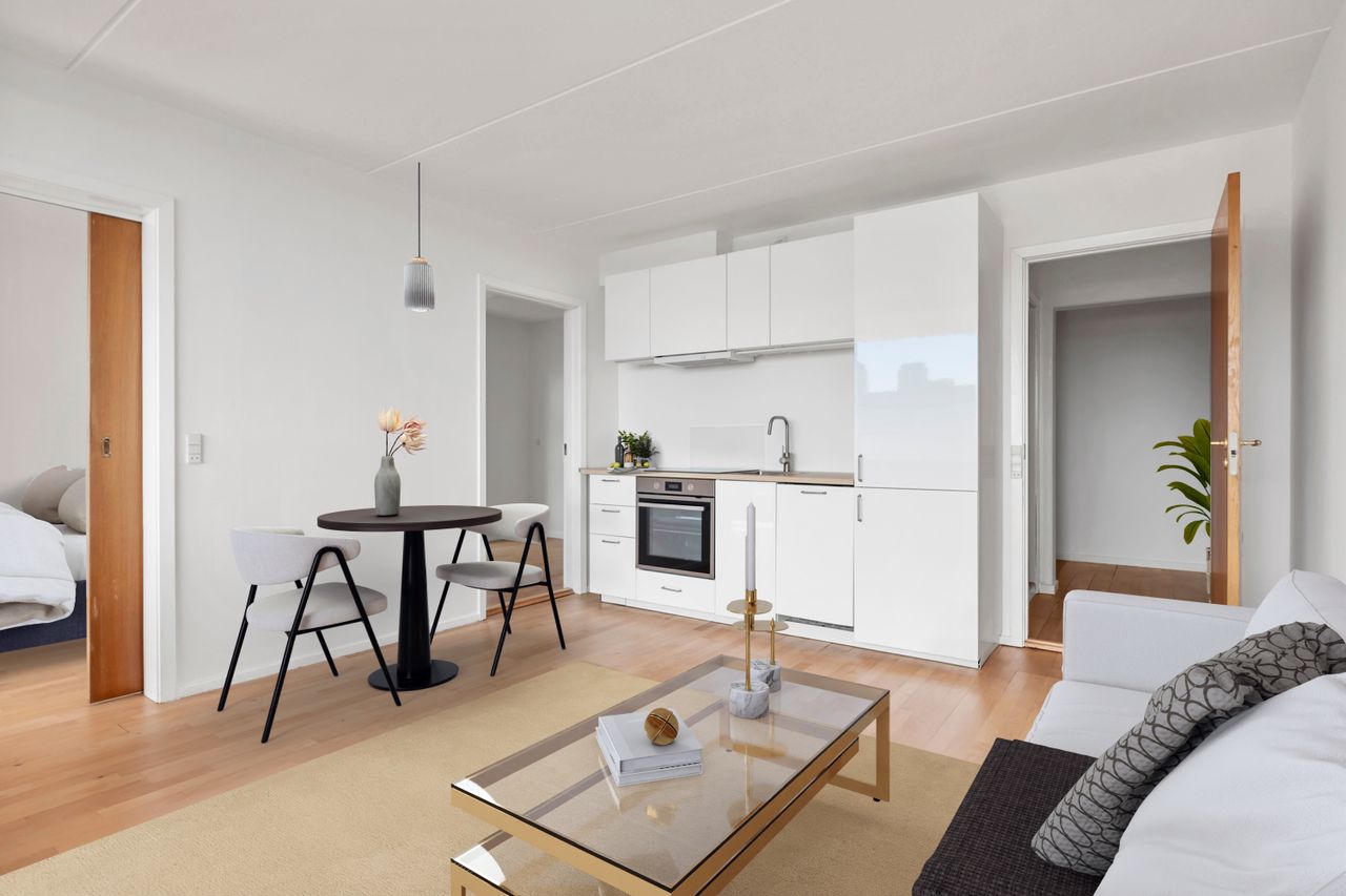 Lejligheden er for nylig opdateret med nyt køkken og nyt badeværelse og fremstår som en moderne 3-værelses. Planløsningen rummer entré med garderobe, køkken i åben forbindelse til opholdsstuen samt to gode værelser. Fra stuen er der direkte udgang til den store altan, hvor udsigten kan nydes i ro og læ. Indretningen er funktionel og enkel – oplagt til studerende eller et ungt par, som ønsker en nem hverdag tæt på det hele.