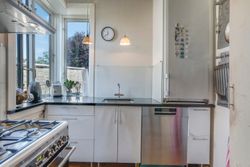 Førstesalen har en lignende opbygning med pænt køkken, badeværelse og opholdsrum – men med to reelle værelser, hvilket giver en optimal rumfordeling til børnefamilien eller parret, der ønsker ekstra kontor- eller gæsteplads.
