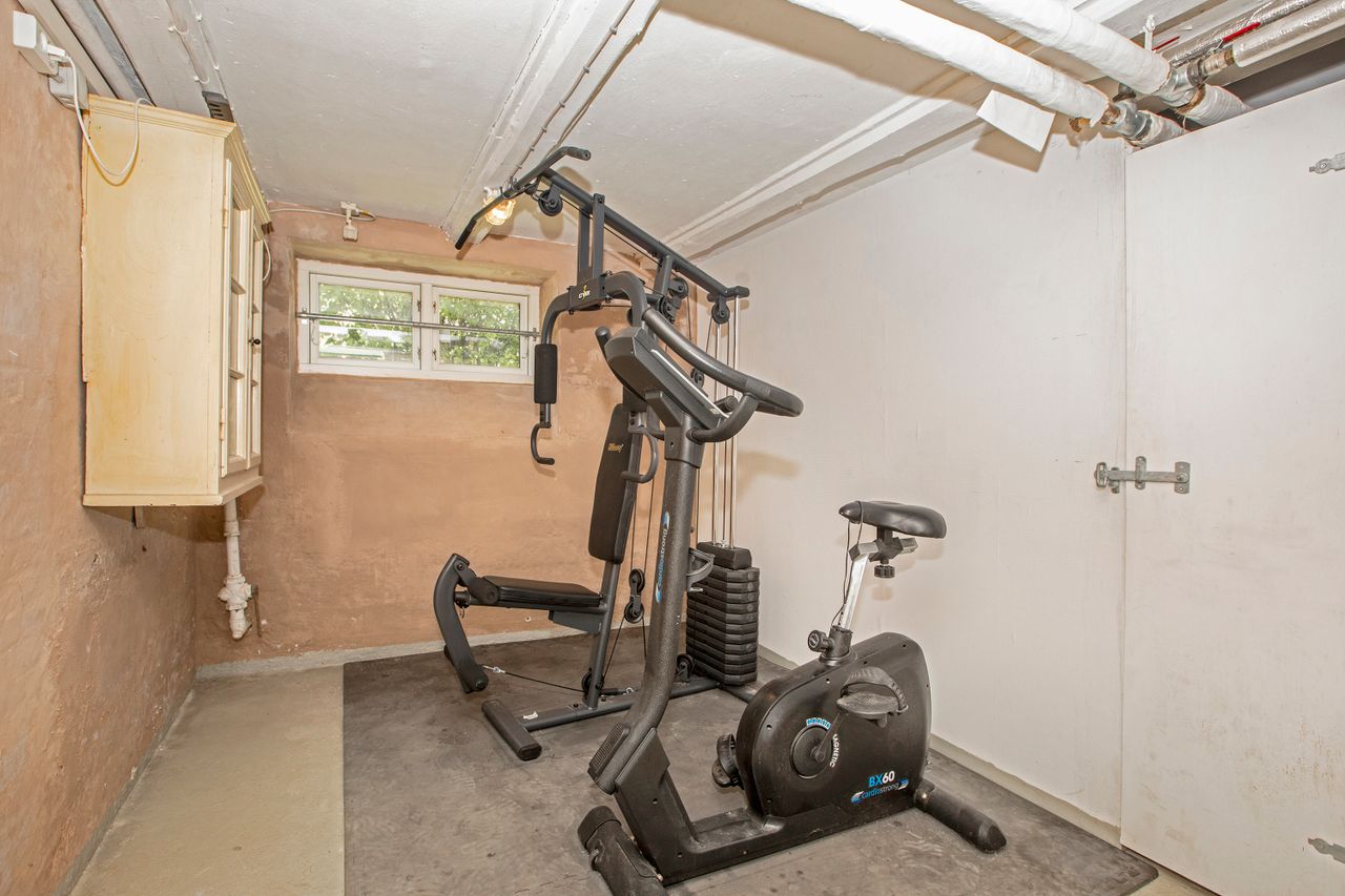 Under huset finder du en stor og anvendelig kælder, der byder på mange gode disponible rum, herunder vaskekælder, opbevaringsplads og mulighed for hobbyrum eller hjemmefitness.