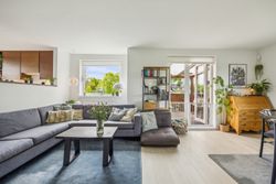 Ejendommen ligger på en charmerende hjørnegrund i et roligt villakvarter tæt på København. Beliggenheden gør det nemt at nå både strand og fælled samt diverse indkøbsmuligheder inden for kort afstand. For børnefamilier er det værd at bemærke den korte cykelafstand til skole og andre faciliteter.