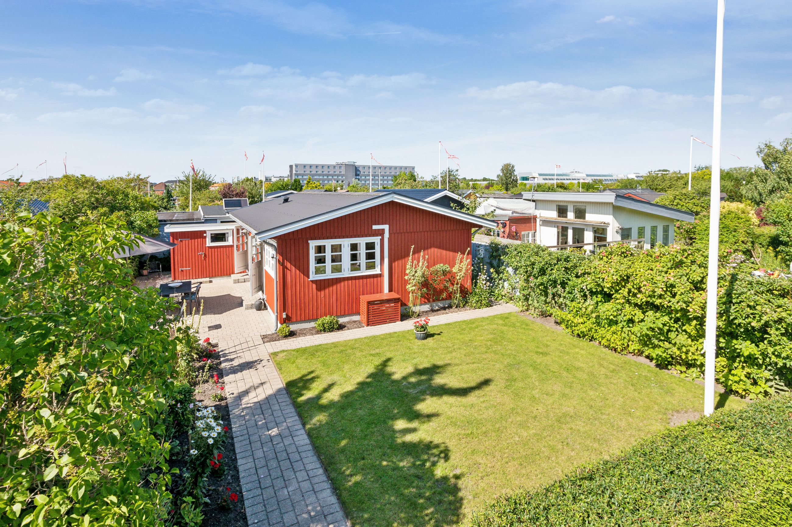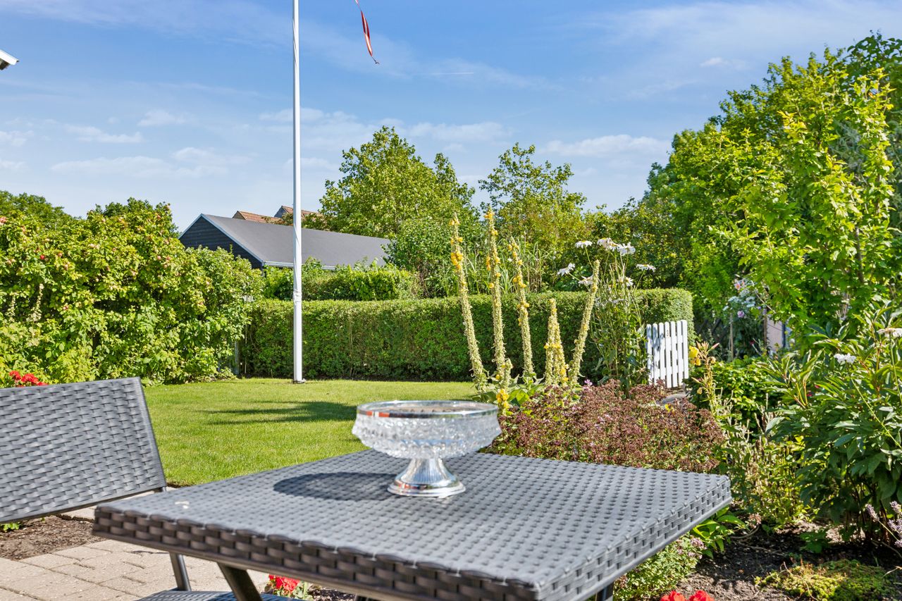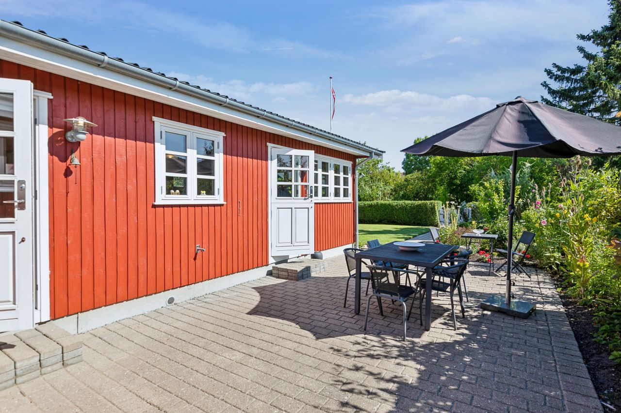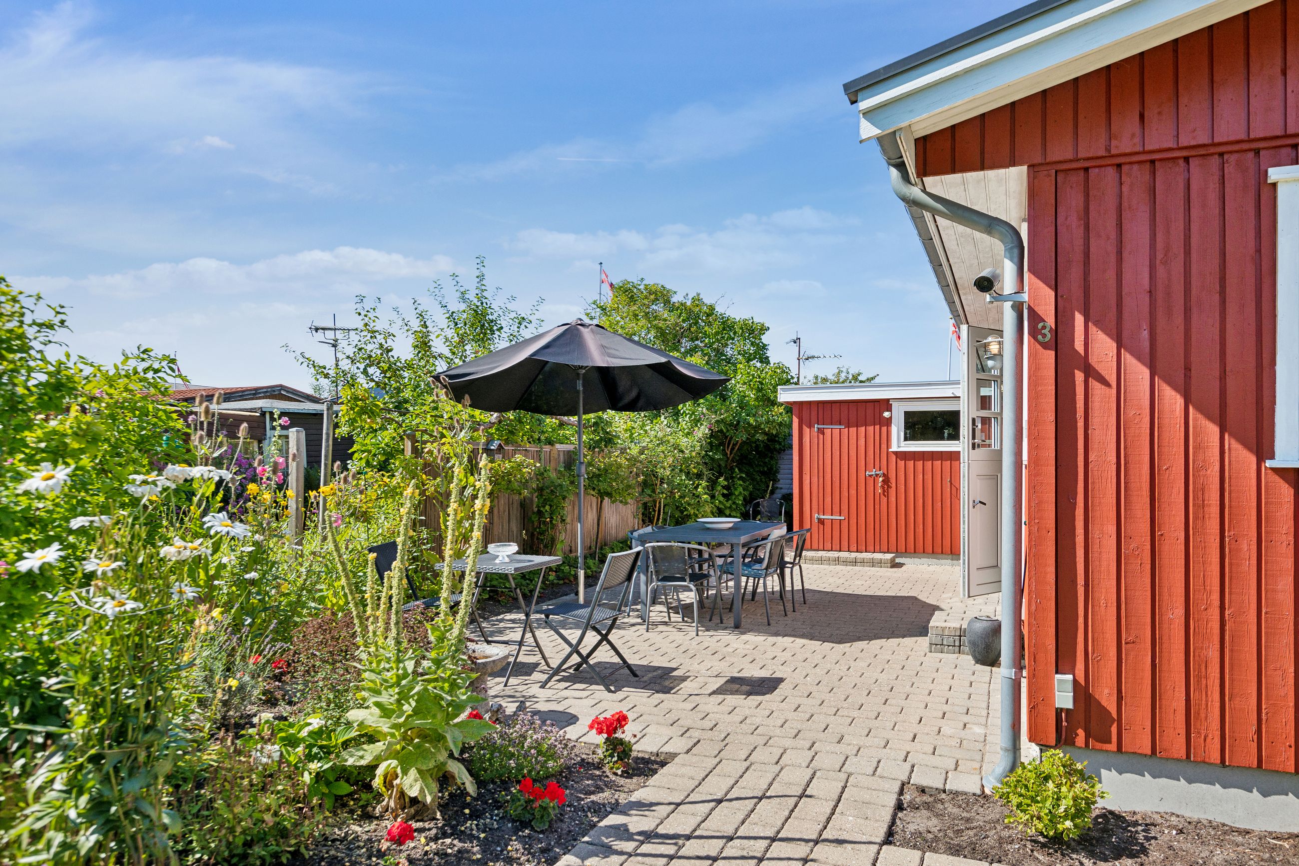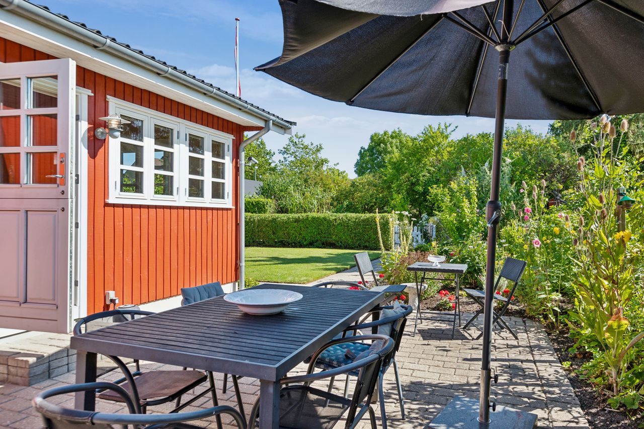 Udenfor åbenbarer sig den solrige have orienteret mod sydvest, hvor solens stråler kan nydes det meste af dagen. Haven inviterer til udendørs aktiviteter eller blot ren afslapning under himlens blå tæppe. Det er her, du kan trække vejret dybt ned i maven og virkelig slappe af efter en lang uge.