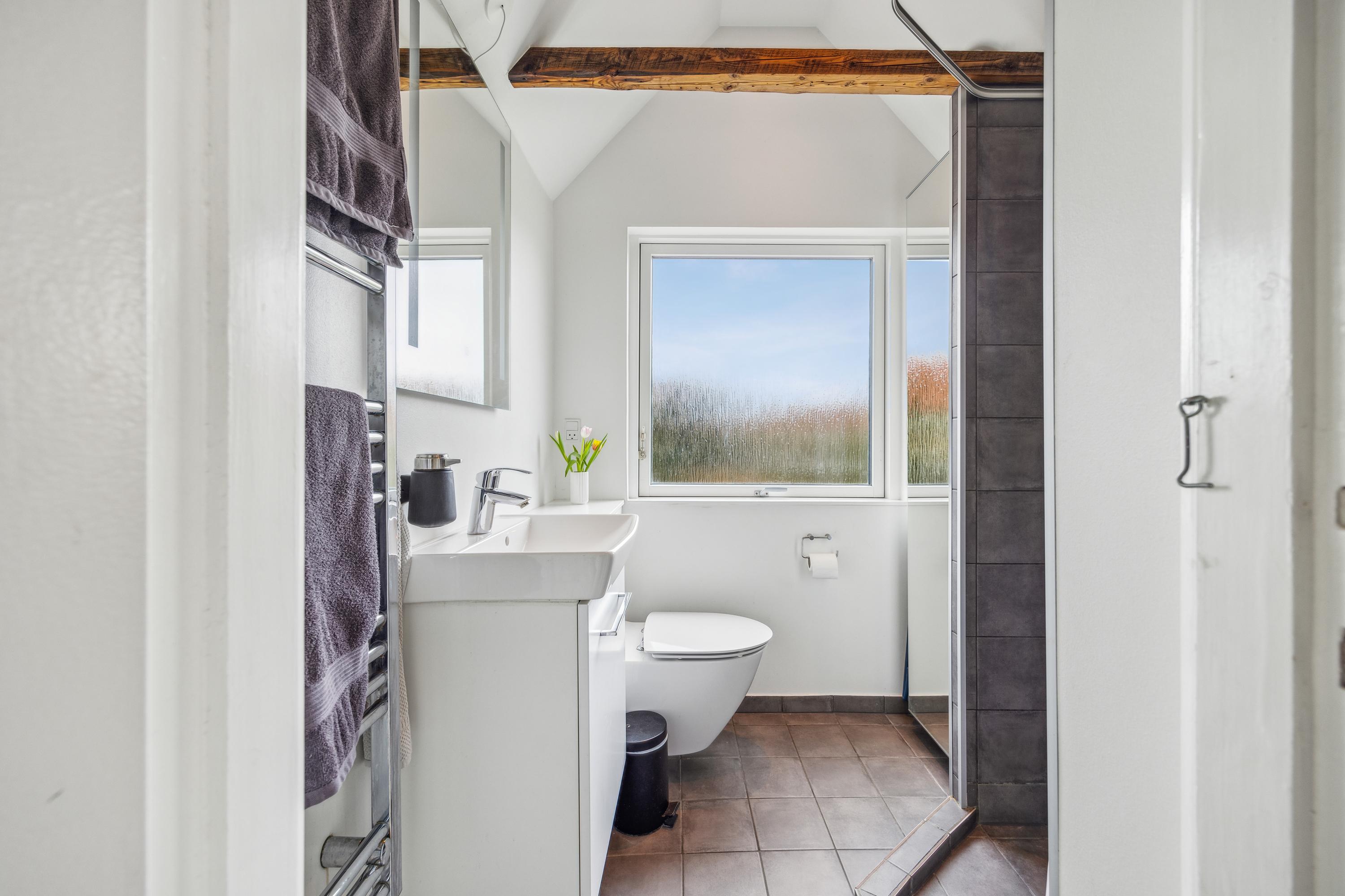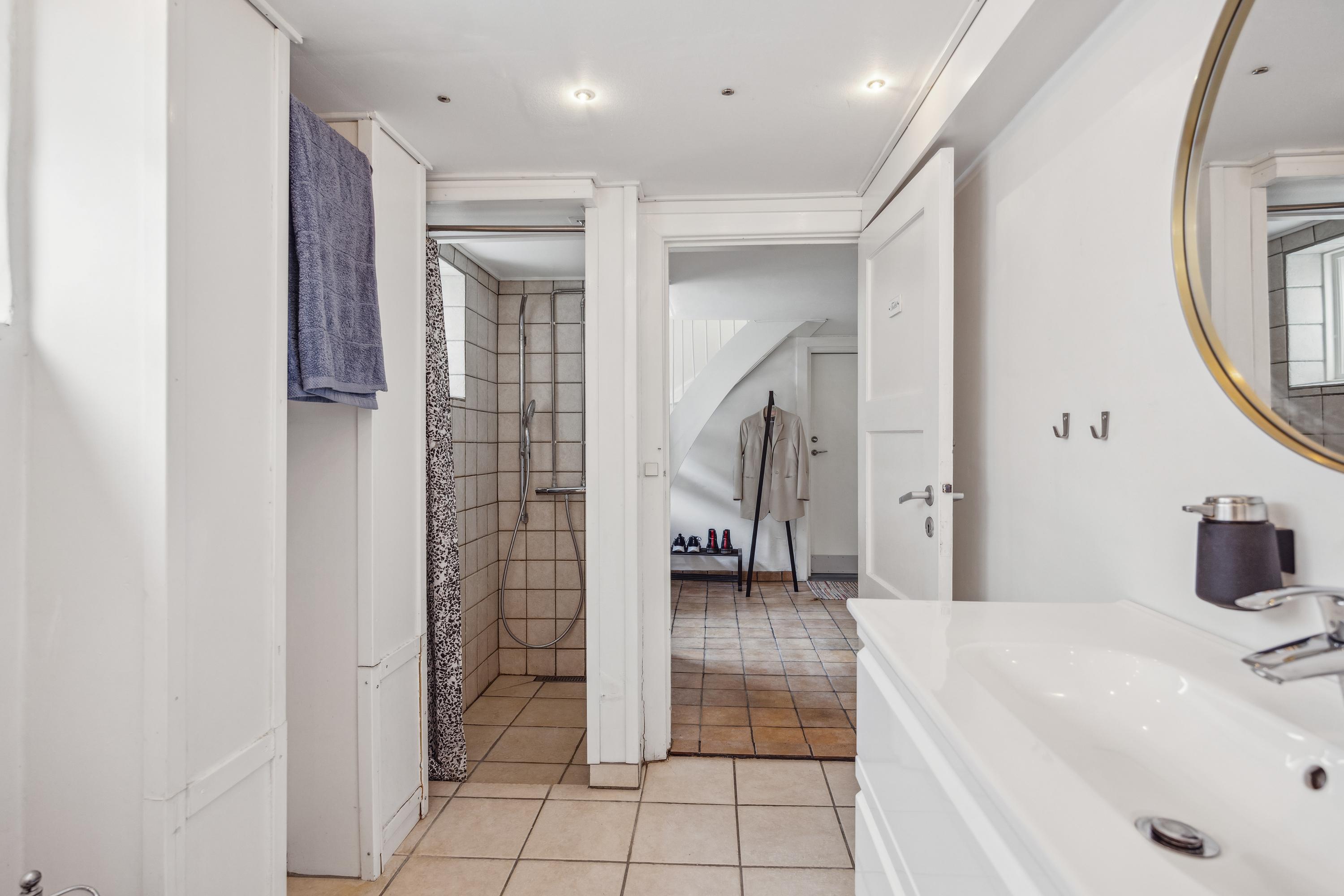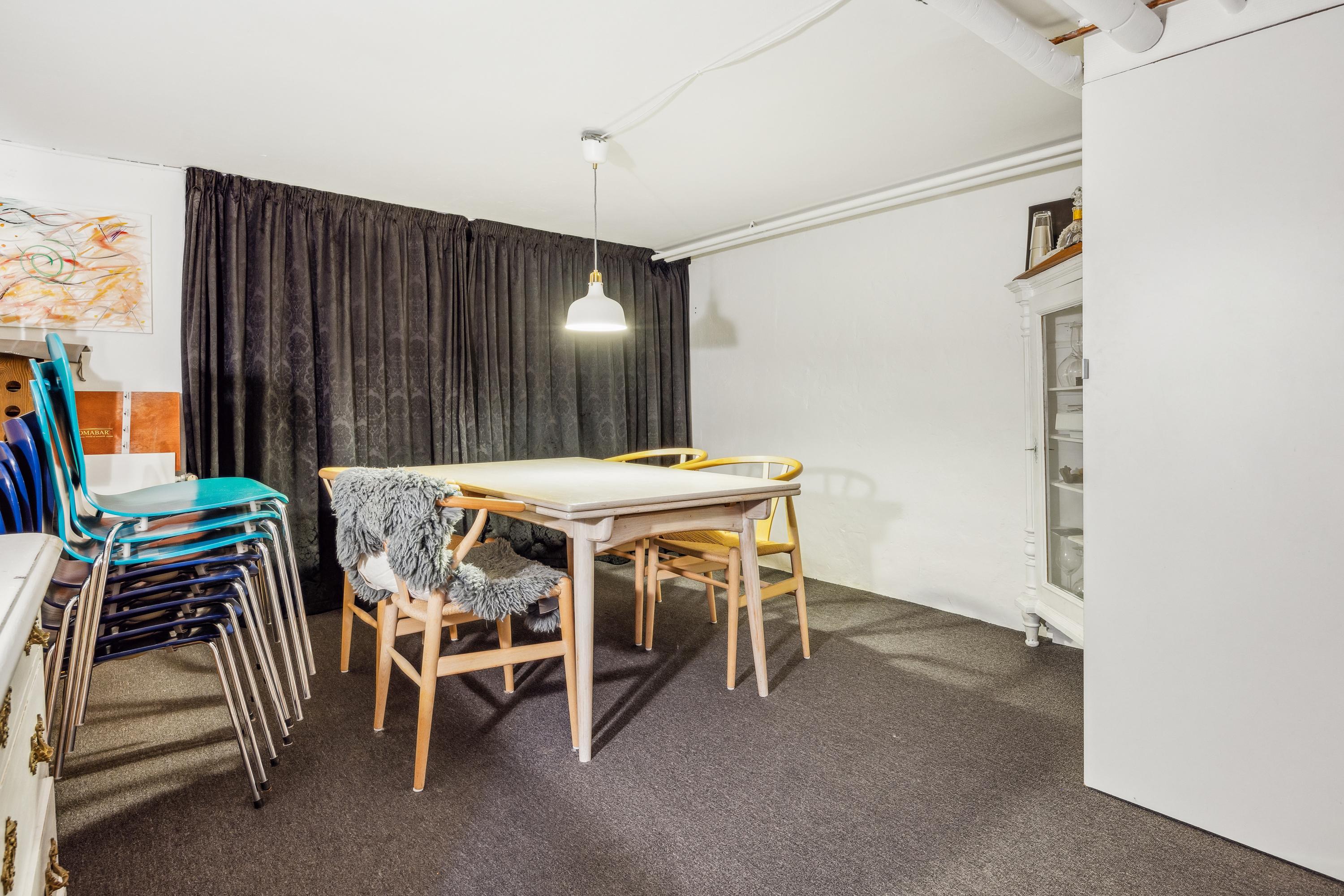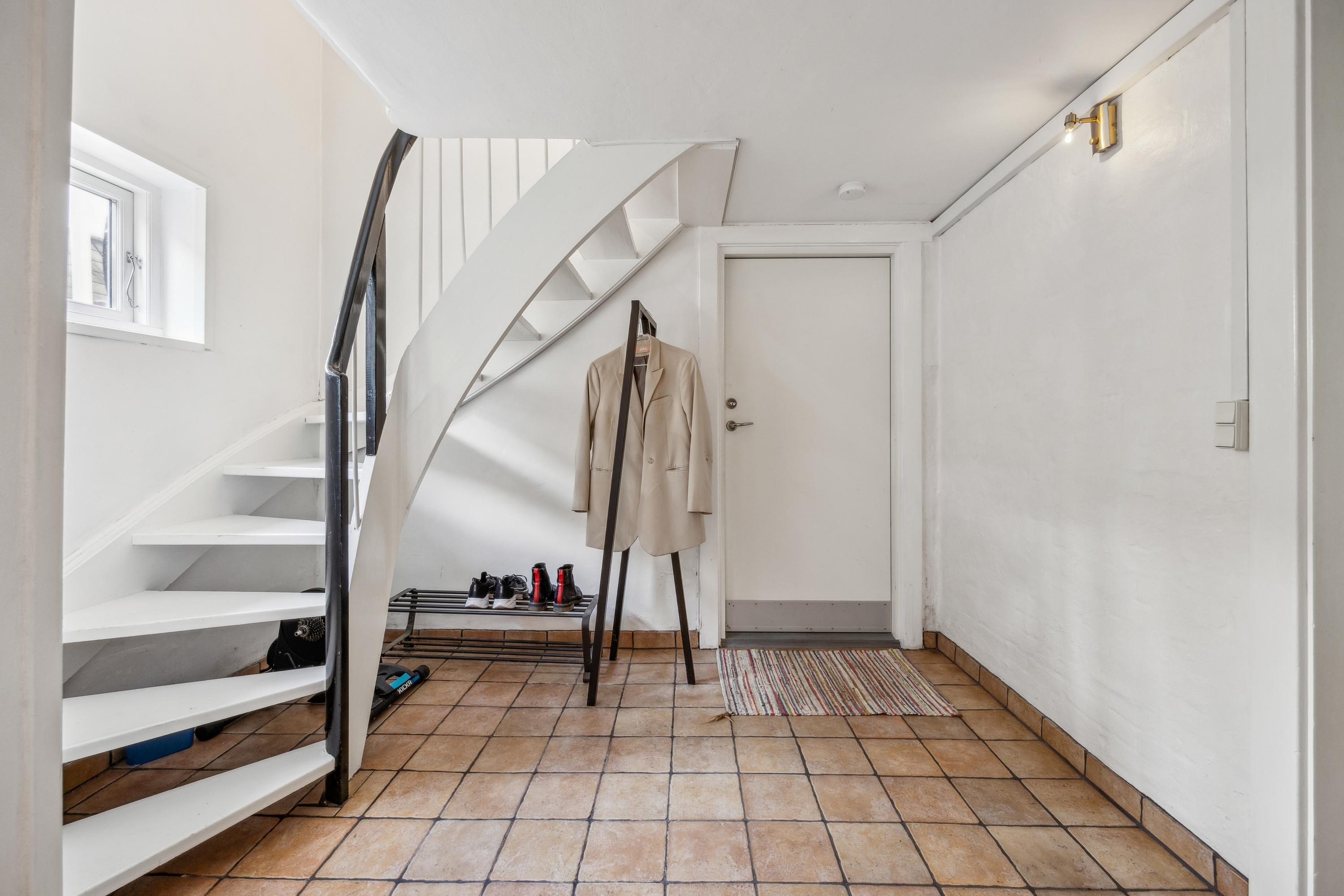 Velkommen til denne fantastiske ejendom, der tilbyder en unik kombination af charme fra 1954 og moderne bekvemmeligheder. Dette dobbelthus i tre plan byder på et åbent stueetage-design, hvor køkkenalrummet er husets hjerte. Det stilfulde køkken med hvide fronter åbner op mod både spise- og