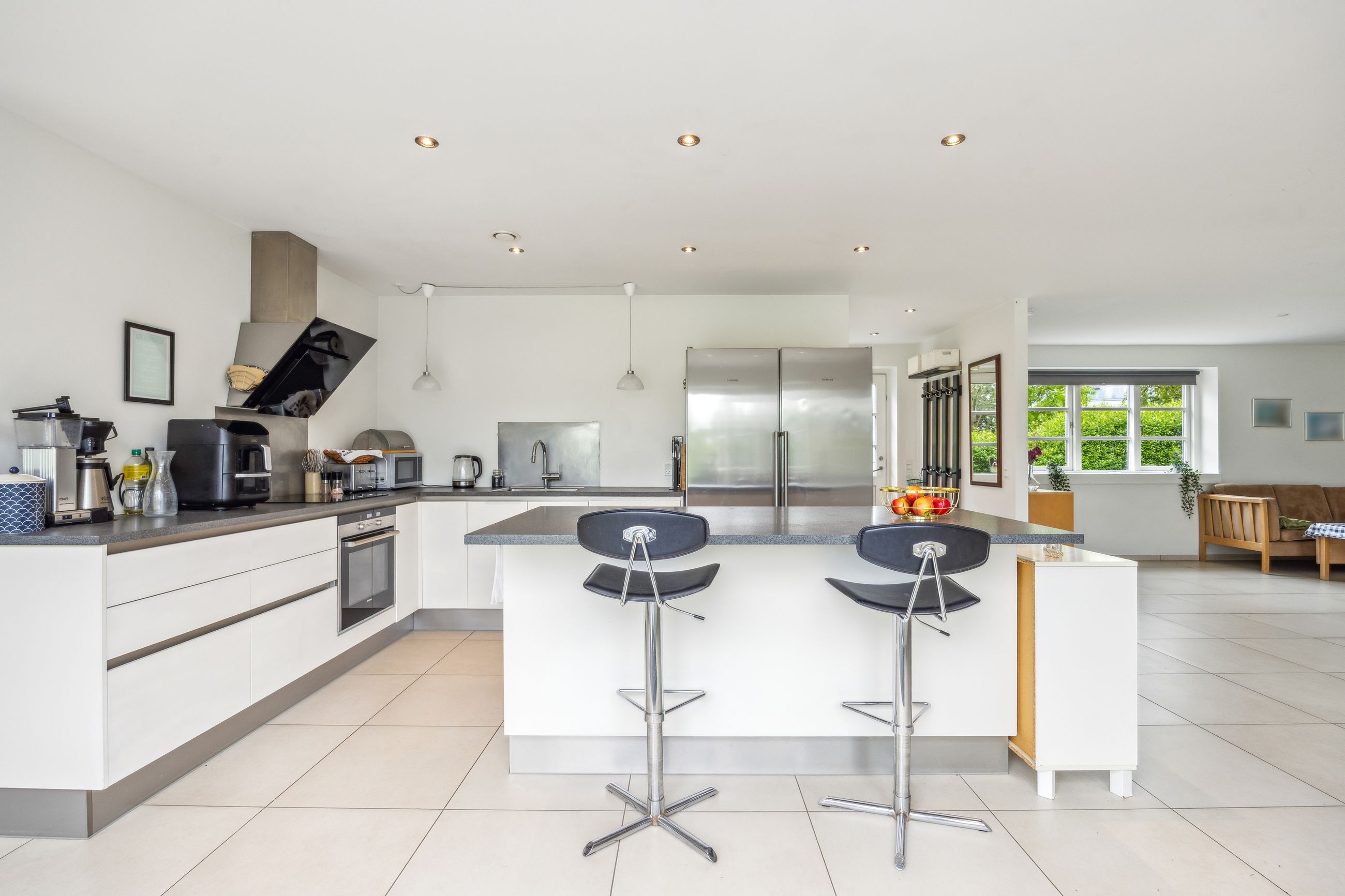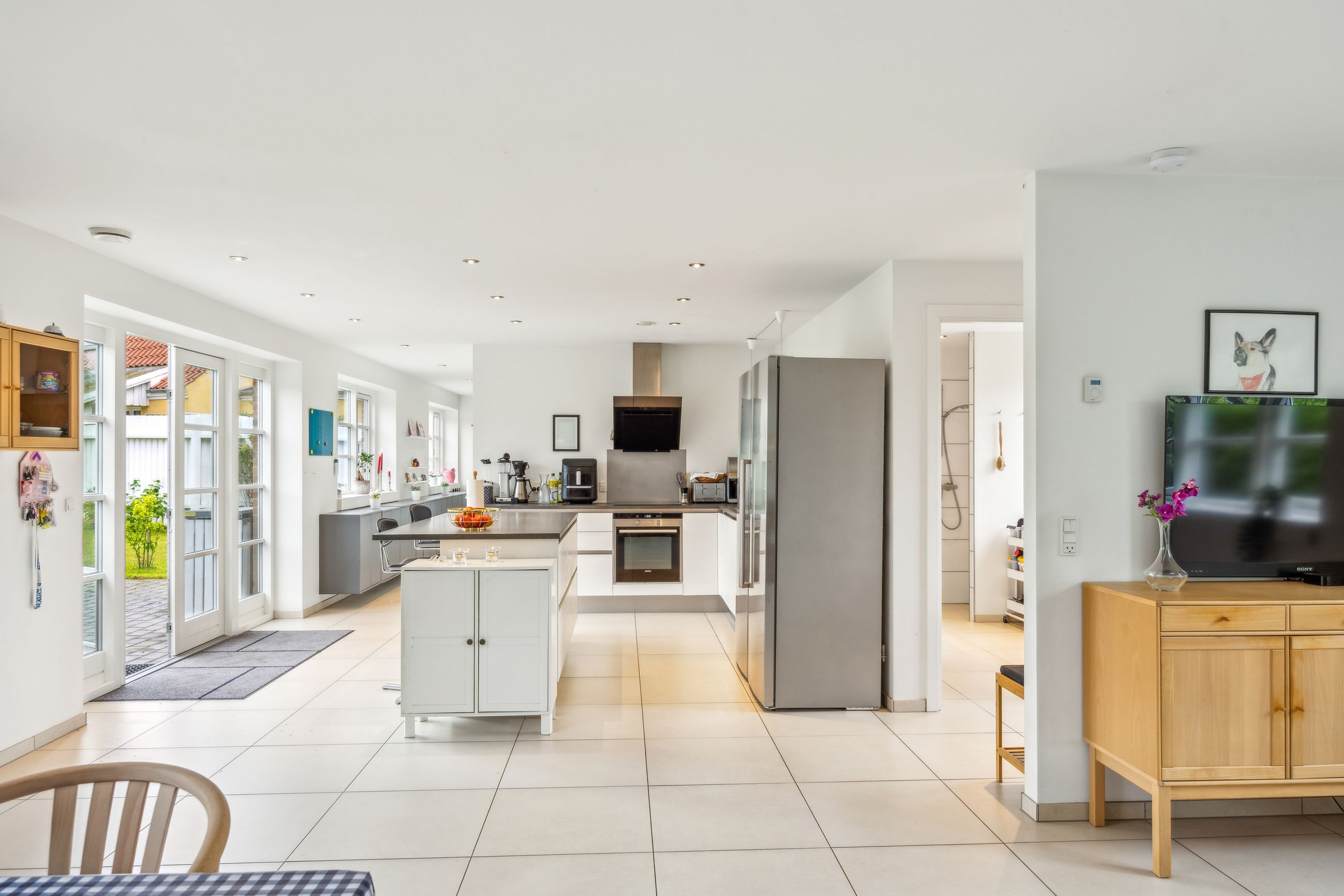 Træd ind i denne moderne villa, der blev opført i 2015, og oplev en boligdrøm uden lige. Med et boligareal på hele 154 kvadratmeter er der plads til både store armbevægelser og hyggelige stunder. Huset byder på et stort åbent køkken-alrum, der smelter sammen med dagligstuen, hvilket skaber en lys og indbydende atmosfære perfekt til både hverdagens gøremål og festlige sammenkomster.