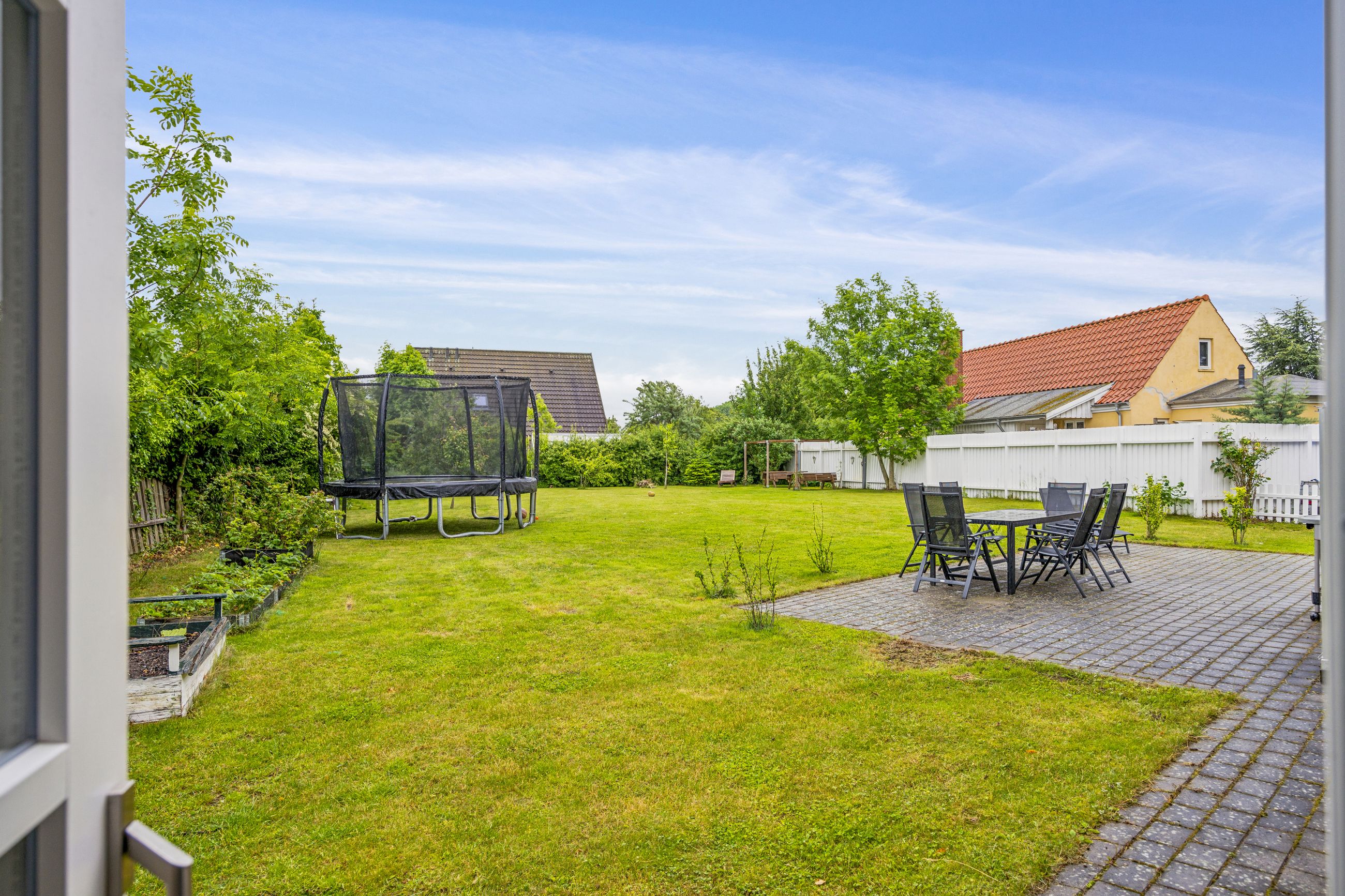 Ejendommen fremstår i rigtig god stand og er helt indflytningsklar. Udenfor finder du en charmerende lille sten terrasse, hvor du kan nyde morgenkaffen eller grille med vennerne på de lune sommeraftener. Den store have inviterer til leg for børnene eller afslapning for de voksne under åben himmel.
