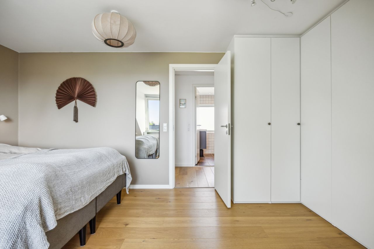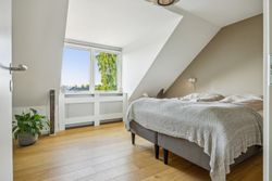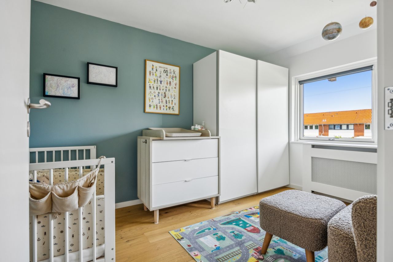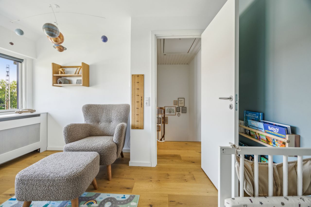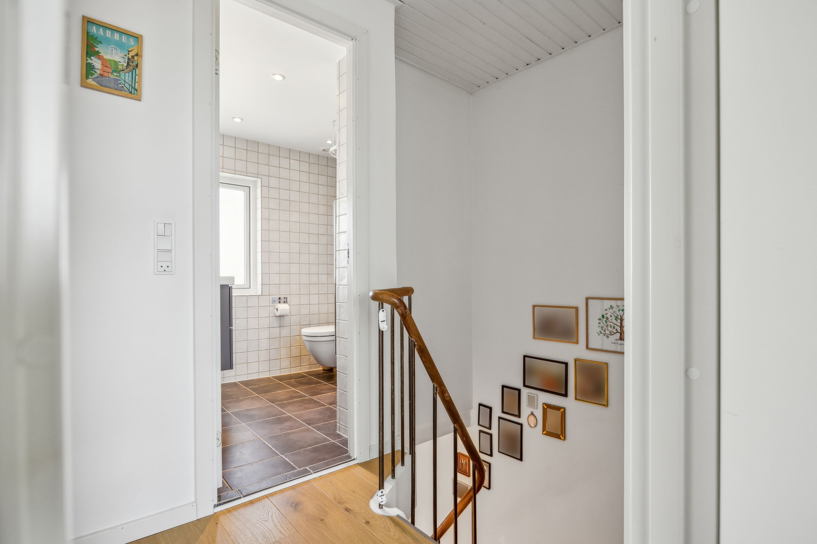 Førstesalen byder på to rummelige soveværelser samt et badeværelse, hvilket gør det ideelt til familielivet. Det største værelse er udstyret med indbyggede skabe, hvilket sikrer rigelig opbevaringsplads uden at gå på kompromis med rummeligheden.