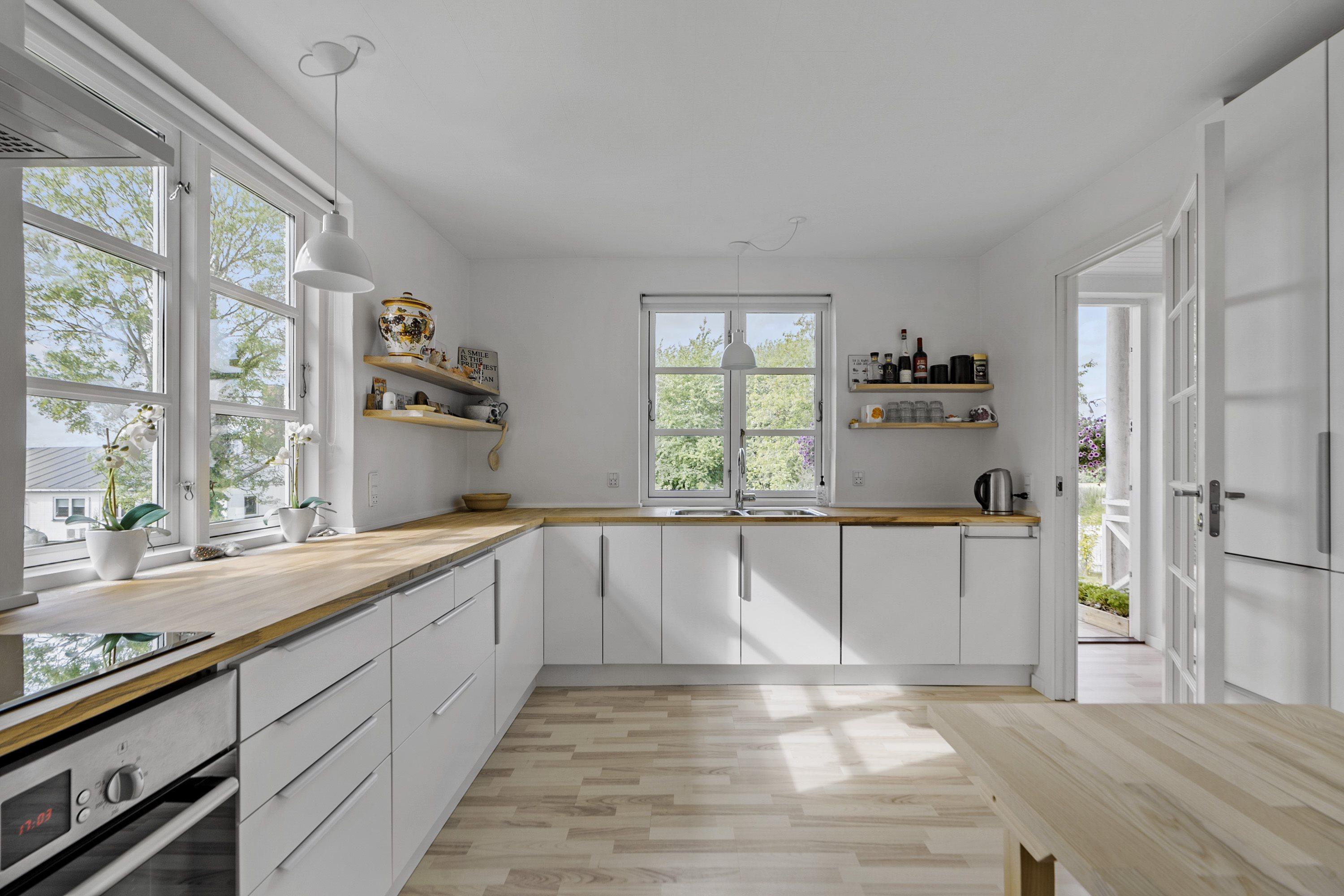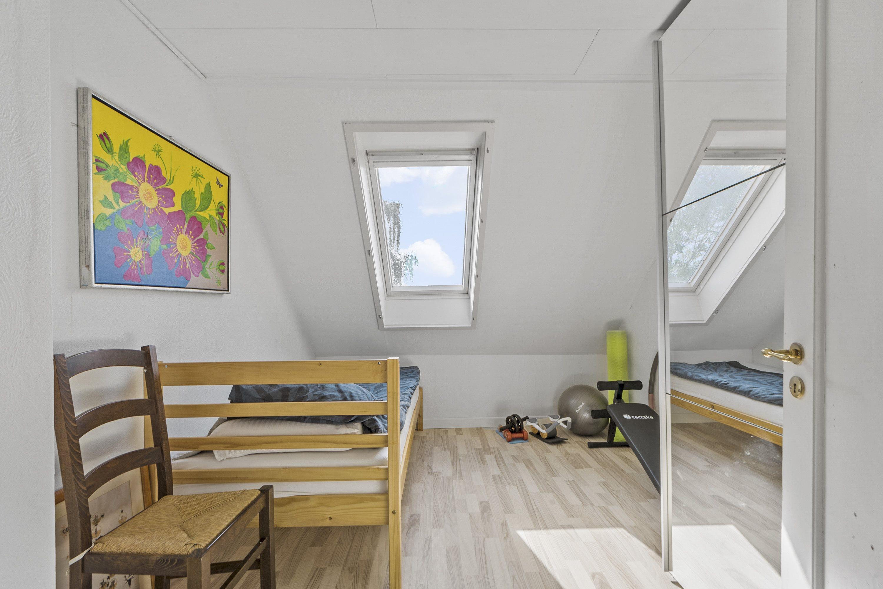 På første sal finder du fire lyse værelser, hvor det naturlige