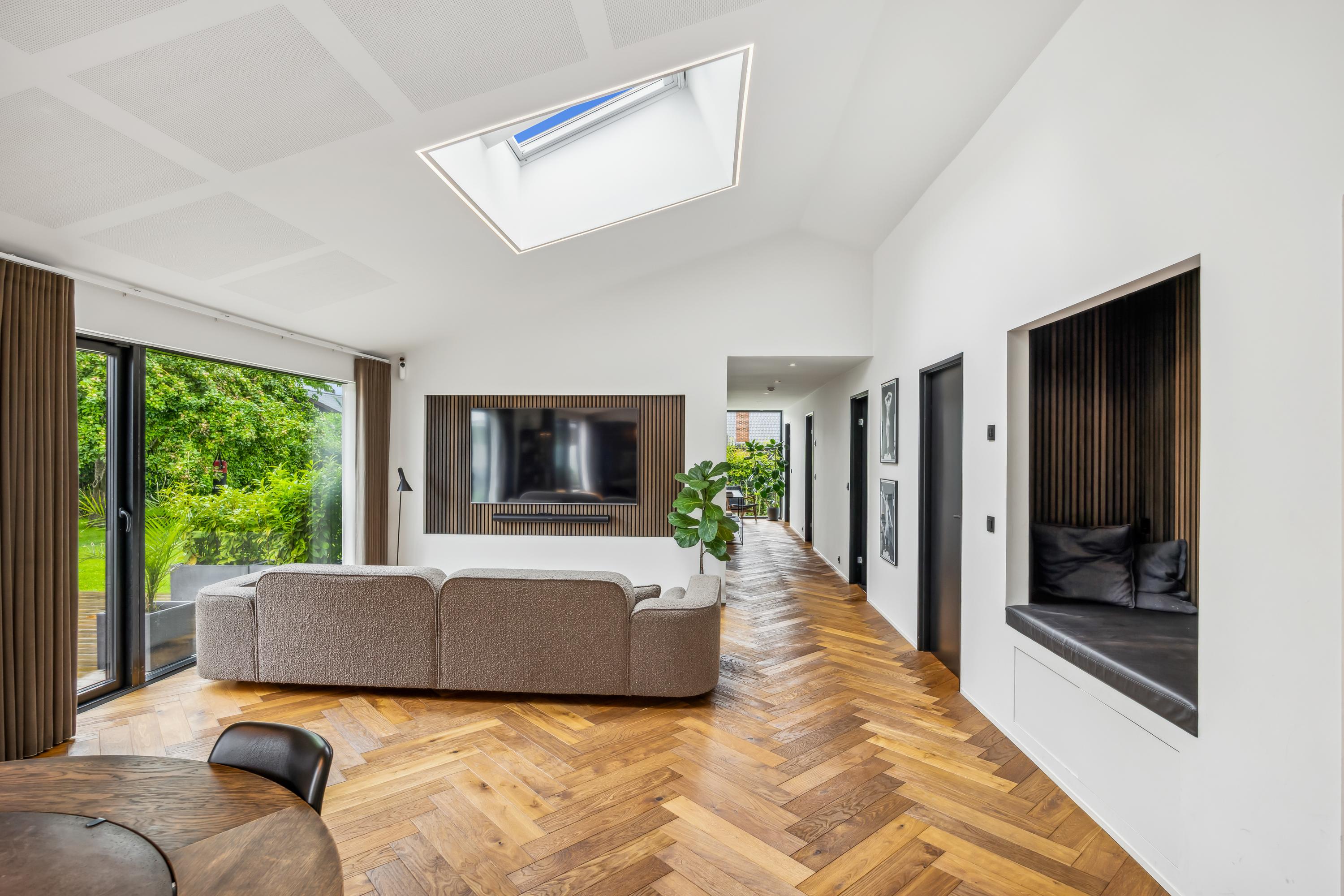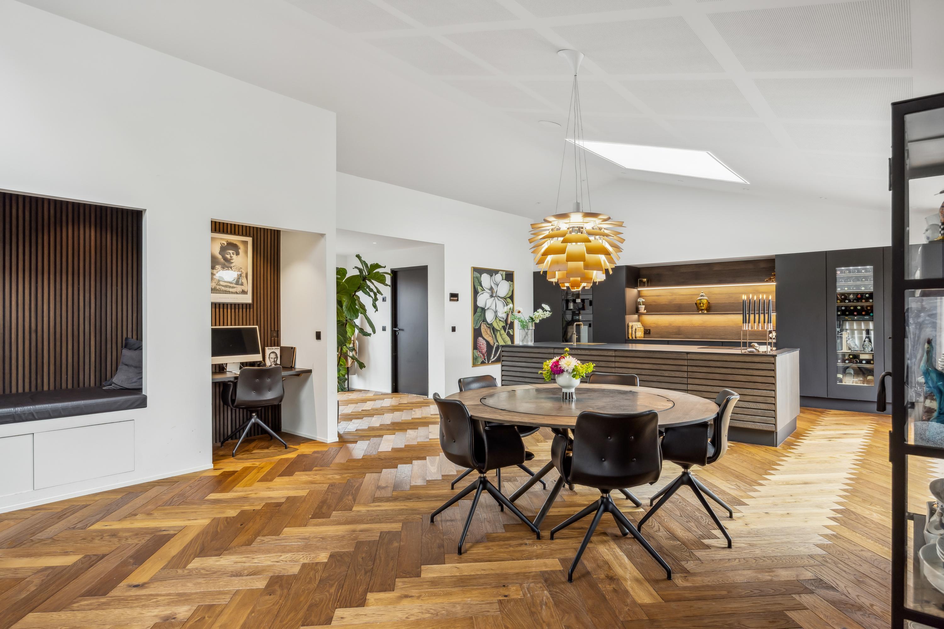 Velkommen til denne enestående villa, der forener luksus, design og funktionalitet på højeste niveau. Med et boligareal på 184 kvadratmeter, oprindeligt opført i 1970, har ejendommen gennemgået en omfattende renovering og tilbygning, hvor alt er fornyet fra top til tå fra det elegante nye tag til
