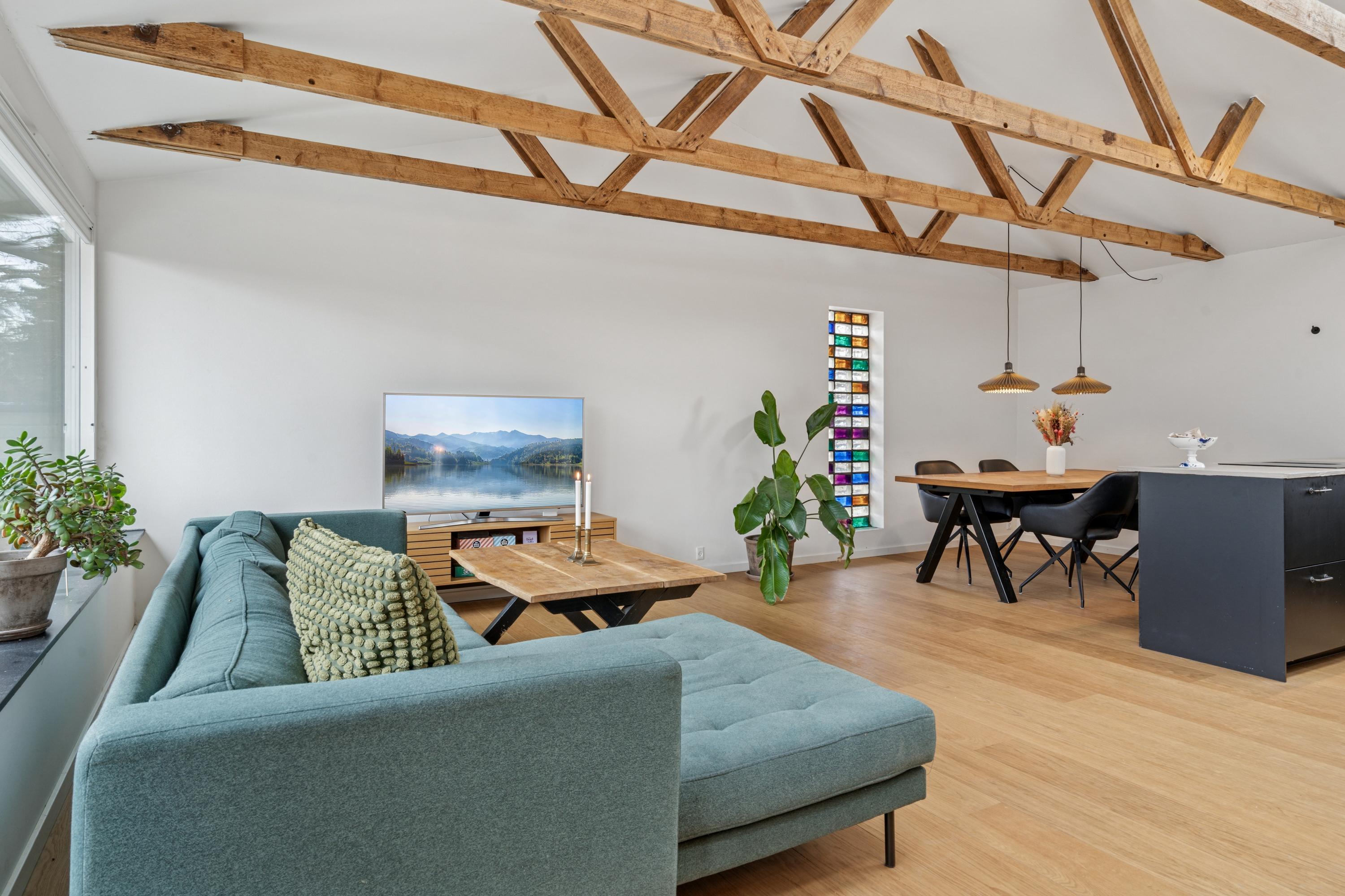 Velkommen til denne smukt renoverede villa, der strækker sig over et boligareal på 124 kvadratmeter. Oprindeligt bygget i 1966, har denne charmerende ejendom gennemgået en omfattende modernisering for at opfylde de højeste standarder for komfort og stil. Med sin ene planløsning byder villaen på et