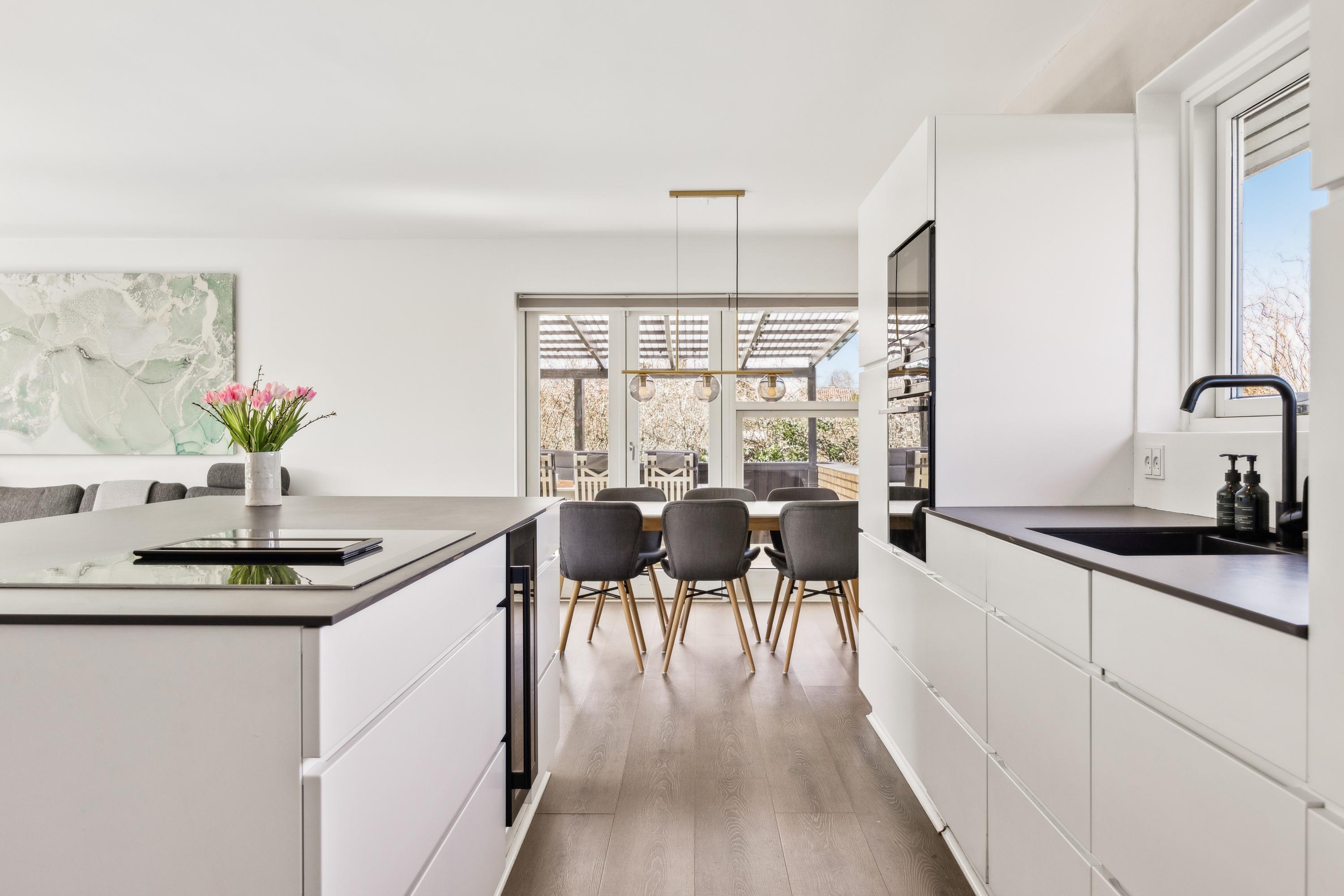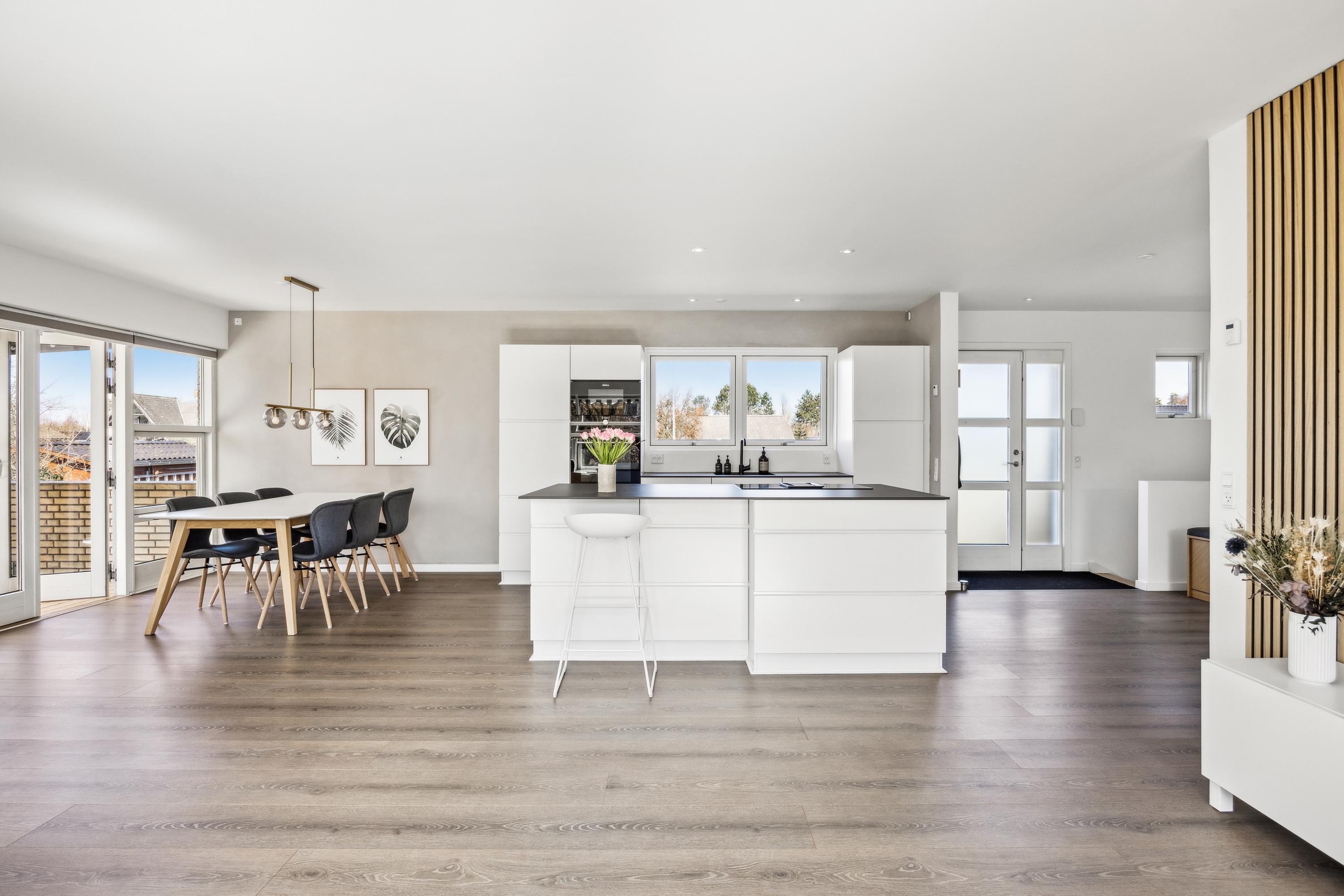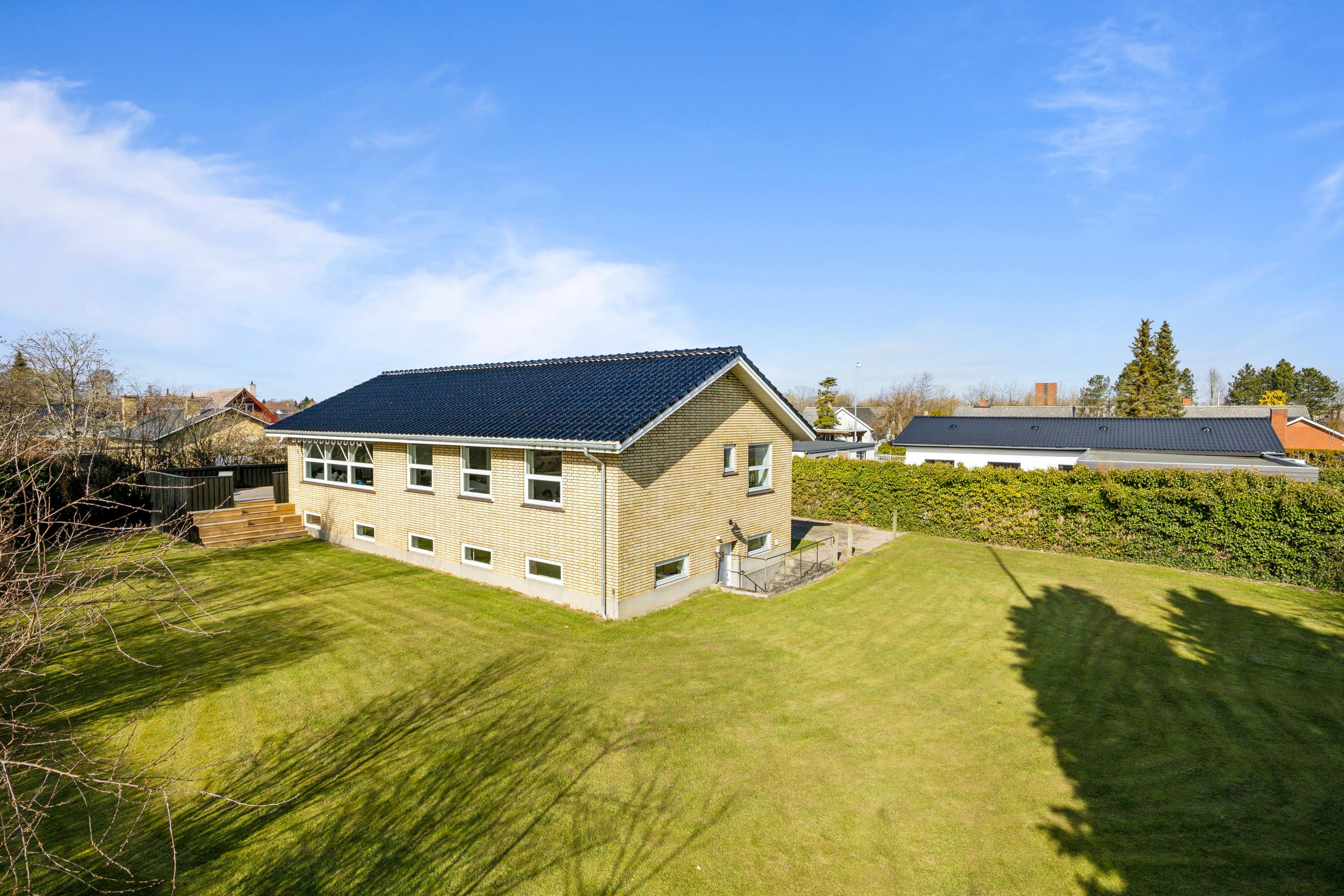 Velkommen til denne enestående villa, der tilbyder et rummeligt boligareal på hele 240 etagemeter. Ejendommen blev oprindeligt bygget i 1959, men er siden blevet gennemrenoveret for at opfylde nutidens standarder for komfort og stil, med bl.a. gulvvarme i stueplan. Her finder du et nyere