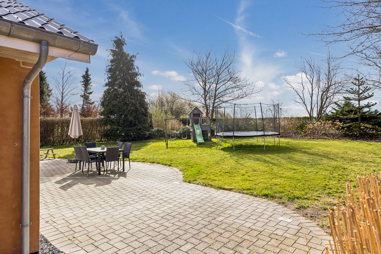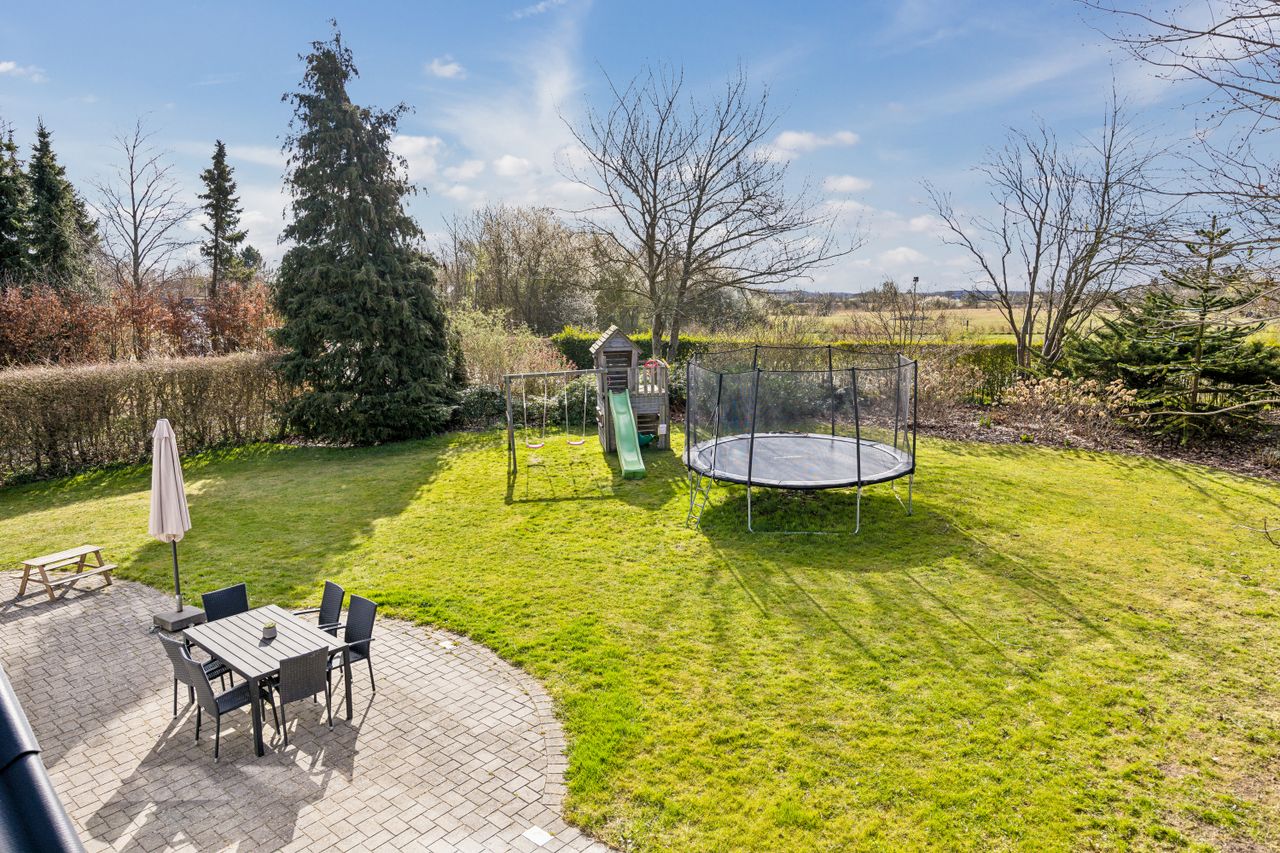 Med jordvarme- og solcelleanlæg får du her en energivenlig boligløsning, der ikke kun reducerer driftsomkostningerne men også tager hensyn til miljøet. Beliggenheden kan beskrives som intet mindre end perfekt; centralt placeret men alligevel privat nok til at give følelsen af fredfyldt landliv.