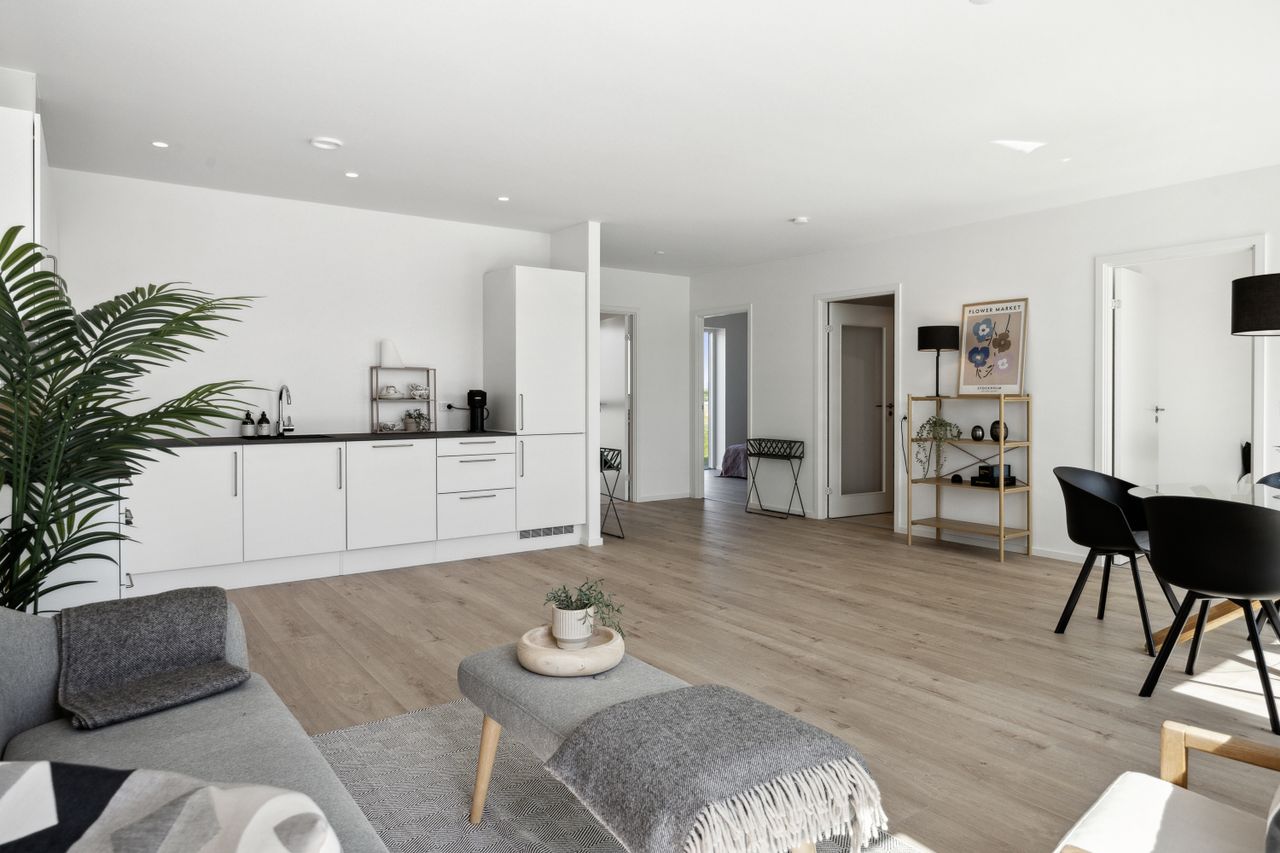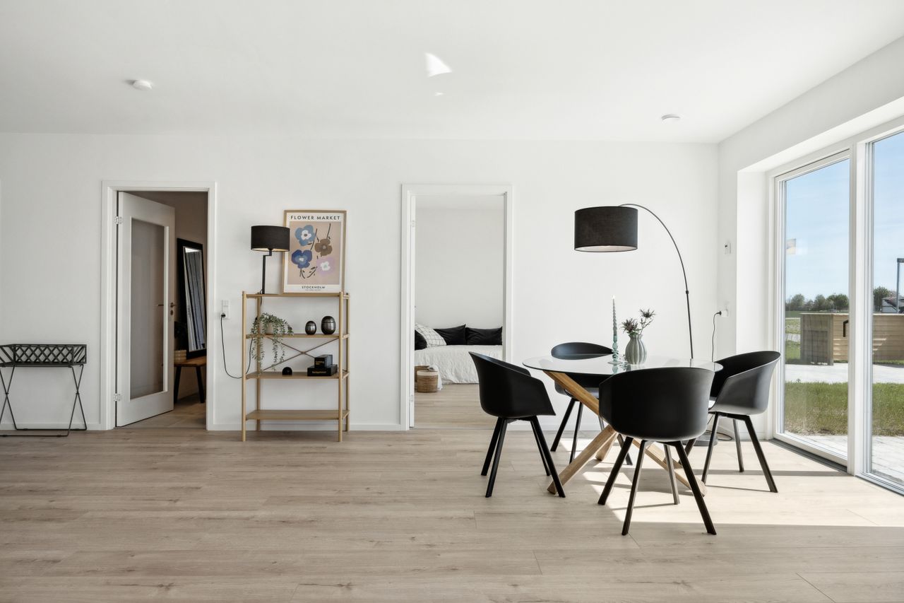 Velkommen til dette skønne rækkehus, der med sine 108 kvadratmeter boligareal byder på moderne komfort og energieffektivitet. Opført i 2024 er huset indflytningsklart og designet med fokus på både æstetik og funktionalitet. Hele huset er udstyret med gulvvarme, som sikrer en behagelig temperatur året rundt, mens den avancerede luft-til-vand varmepumpe sammen med et varmegenvindingssystem bidrager til lavere energiforbrug.