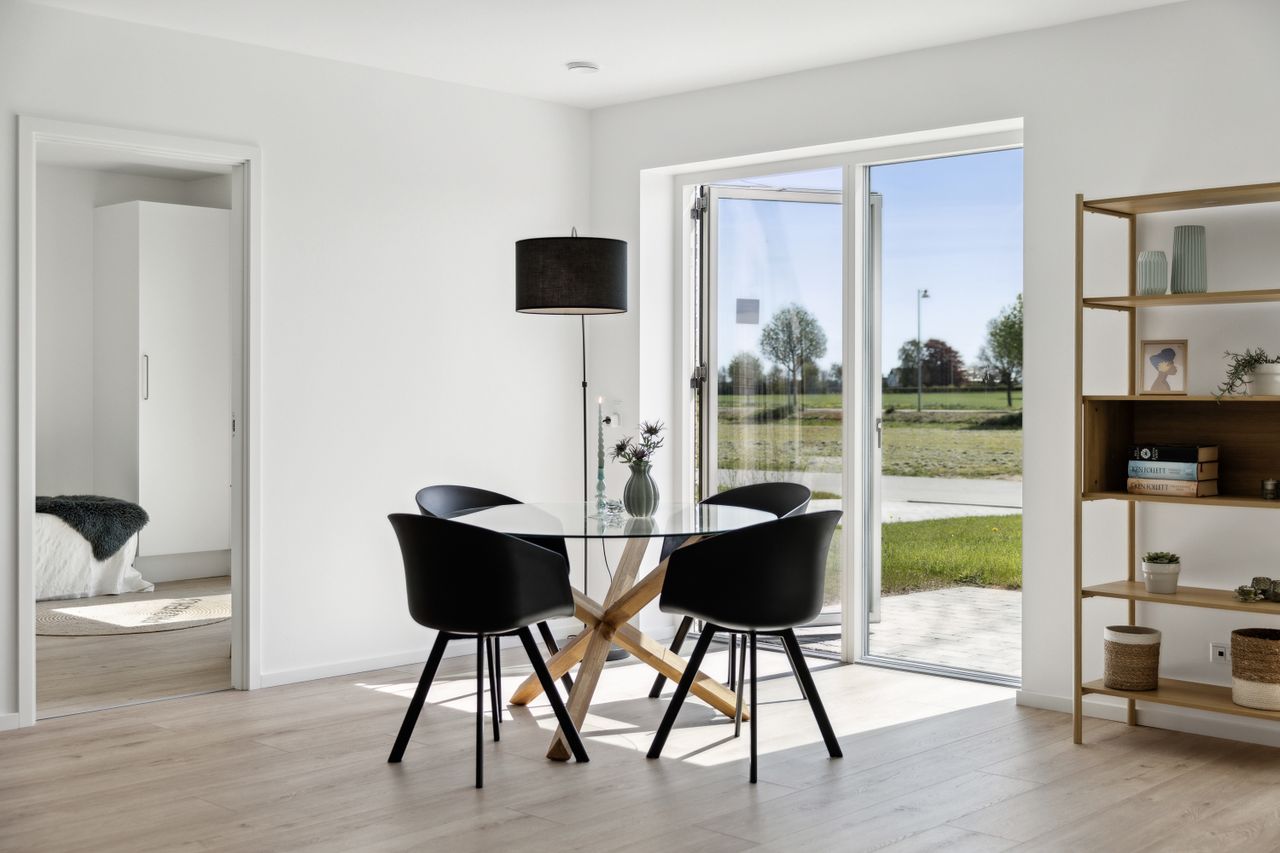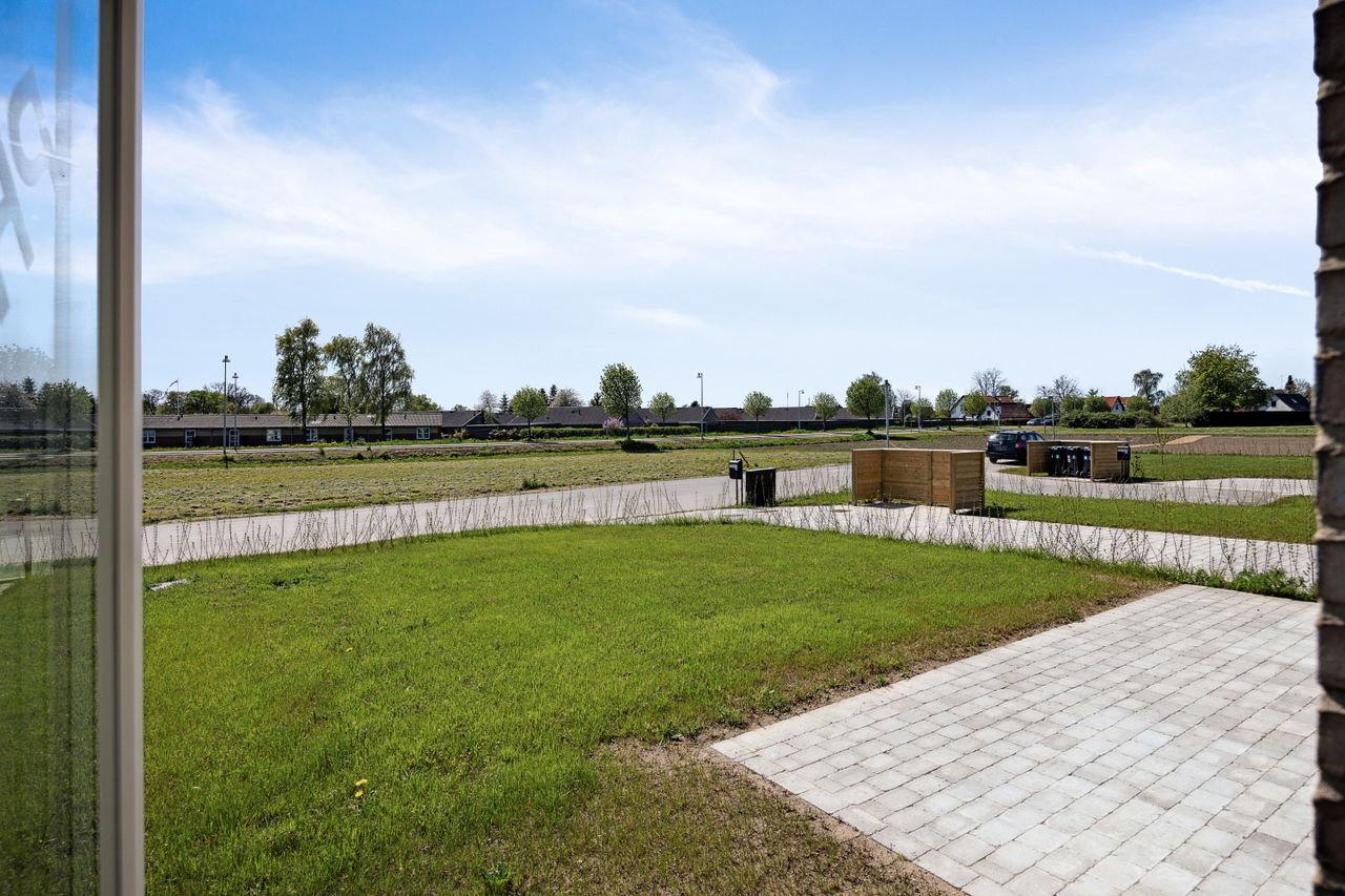 Udendørs finder du en solrig have med ny sået græs, sydvendt for optimal lysindfald hele dagen – ideel til afslapning eller leg for børnene. Beliggende i det nye område Bolunden i Hårlev får du her ikke blot et hjem men også et fællesskab præget af godt naboskab.
