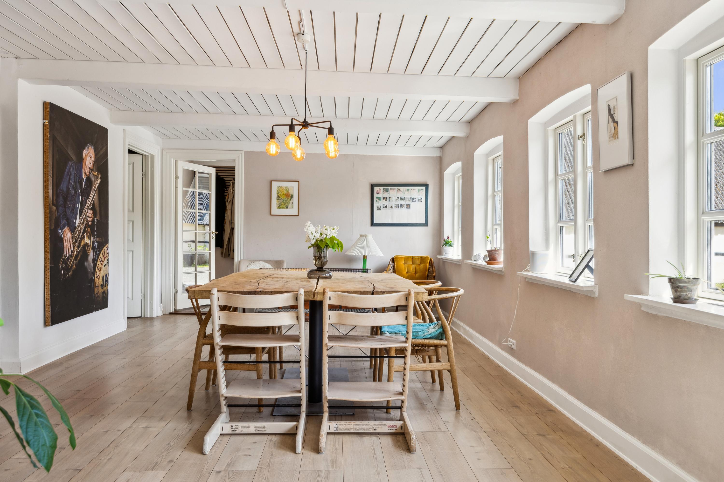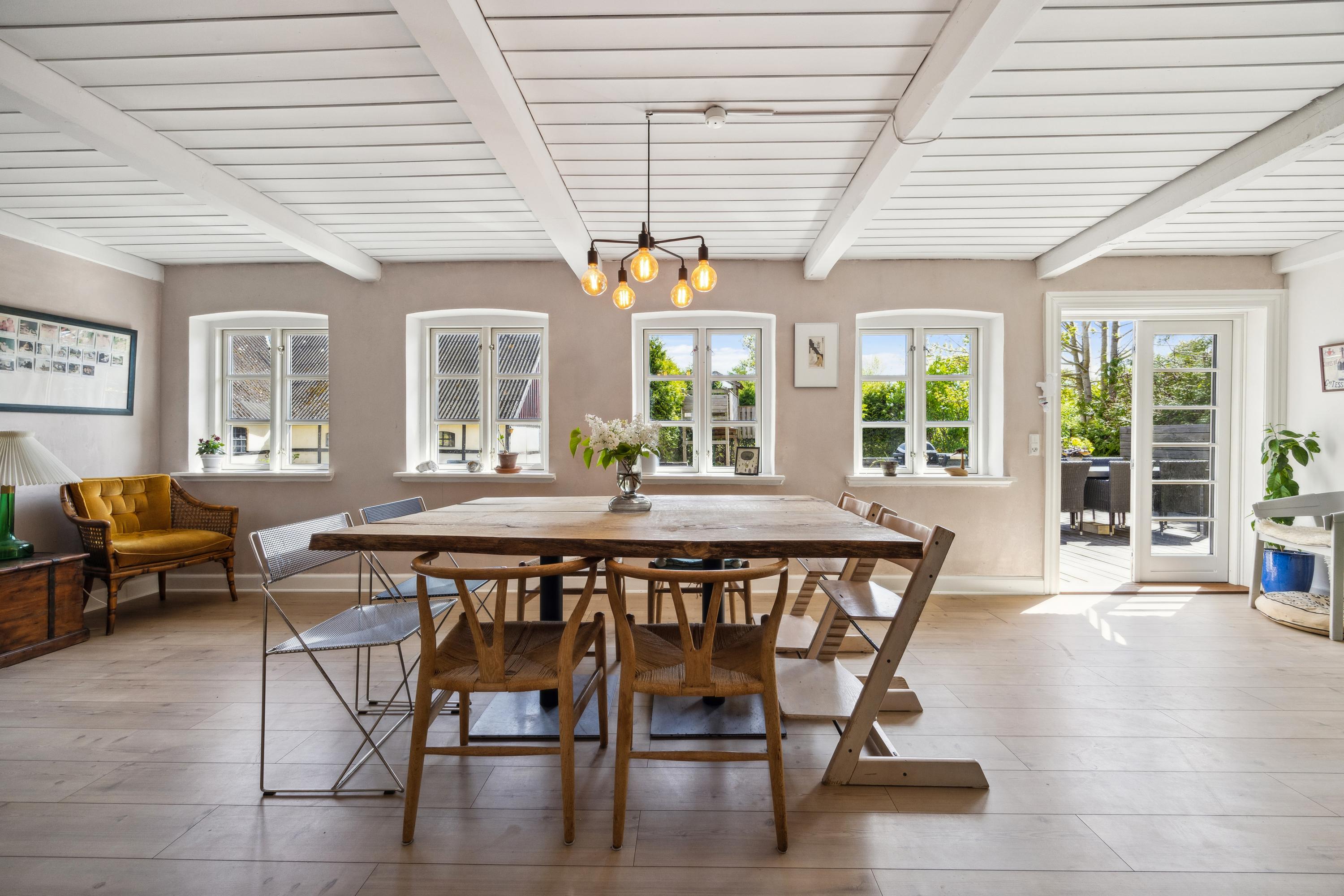 Velkommen til denne enestående villa, der kombinerer historisk charme med moderne bekvemmeligheder. Dette smukke bindingsværkshus fra 1877 byder på et boligareal på hele 237 m2, hvor hver kvadratmeter er udnyttet optimalt. Ved ankomsten mødes du af en indbydende hall, der fungerer som husets
