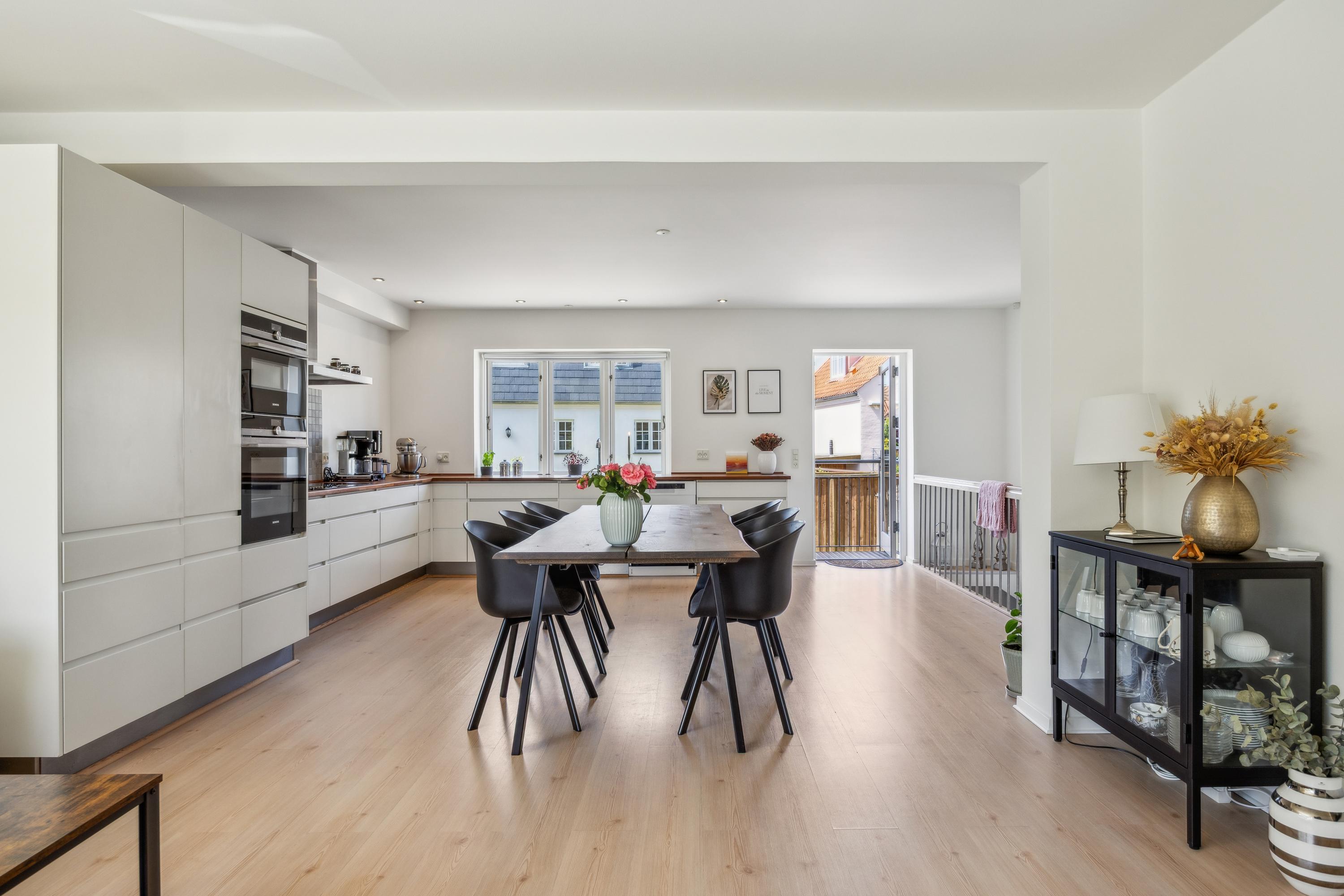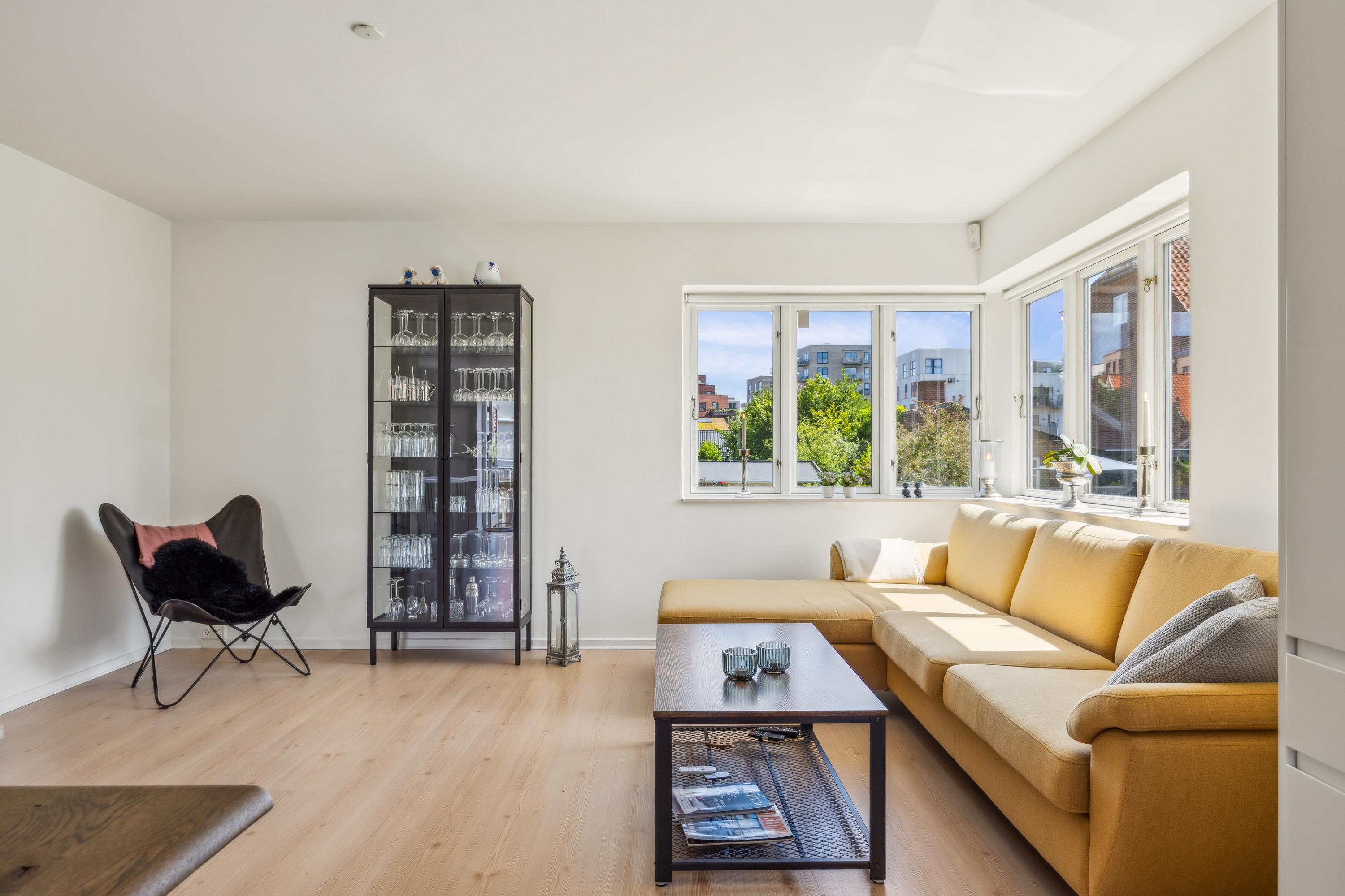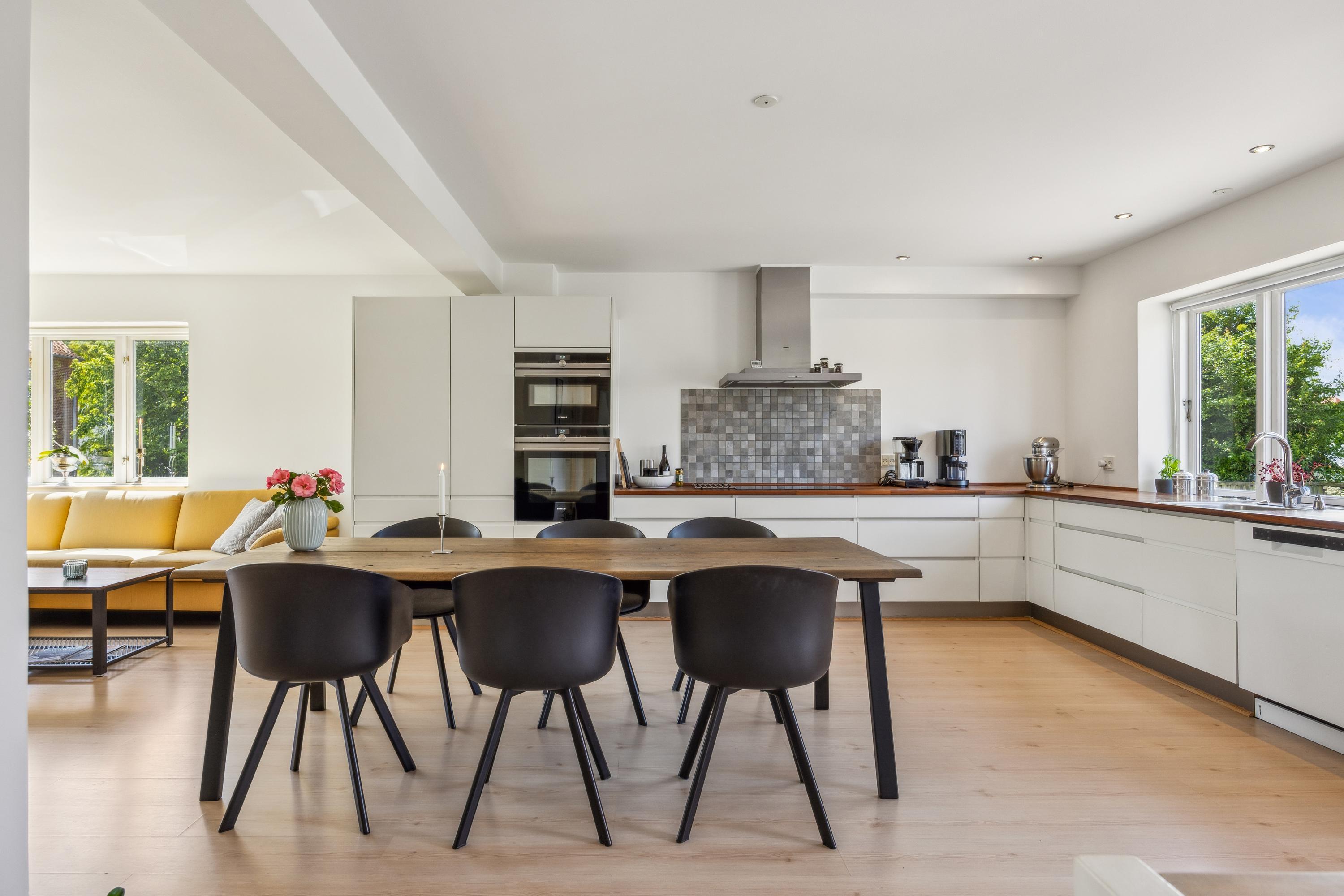 Velkommen til denne enestående ejerlejlighed, der strækker sig over hele 114 kvadratmeter i en smukt gennemrenoveret ejendom fra 1933. Her får du ikke blot et hjem, men en livsstil i hjertet af byen, hvor historie møder moderne komfort. Lejligheden byder på et stort køkken-alrum, der er ideelt for