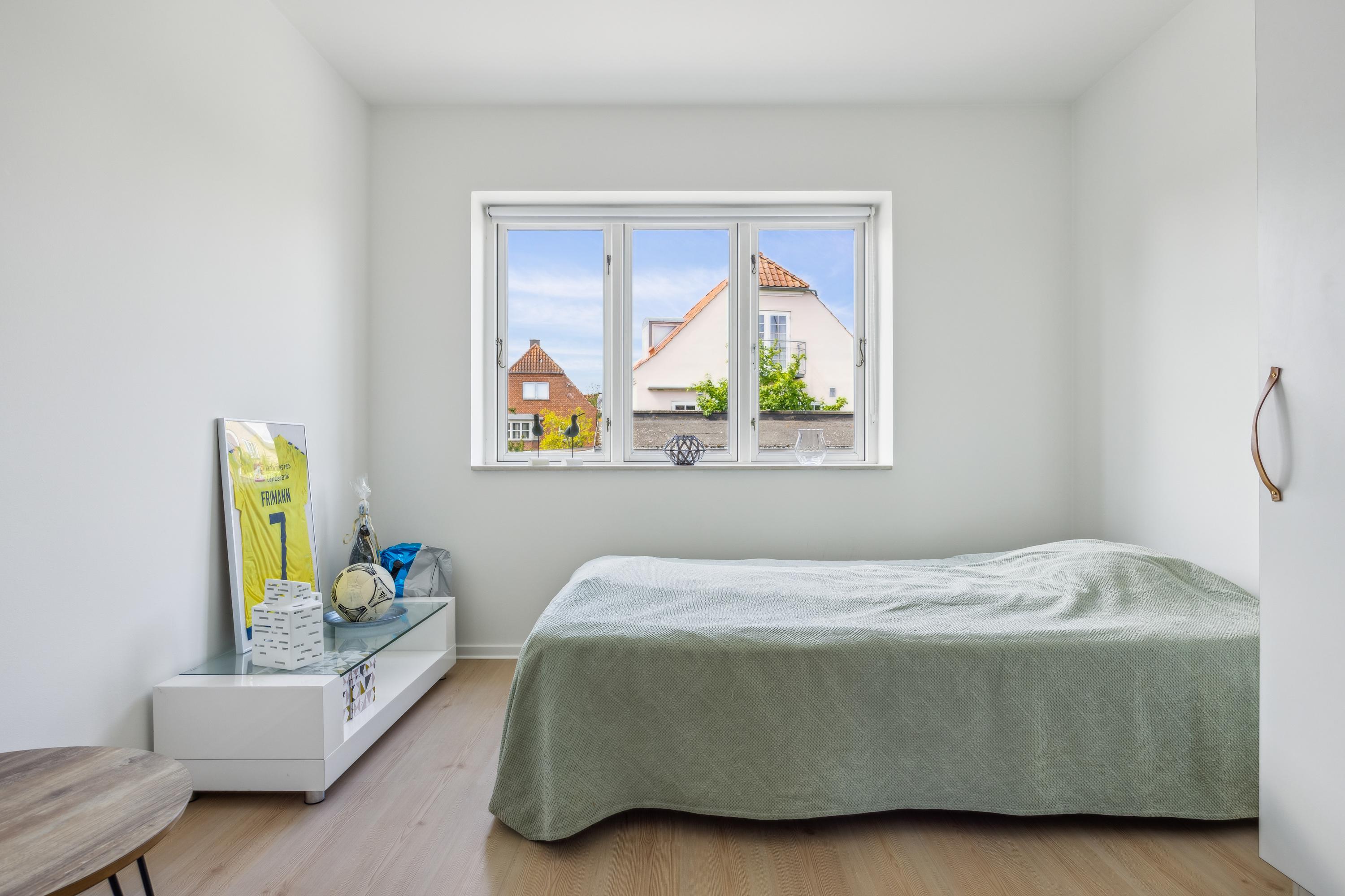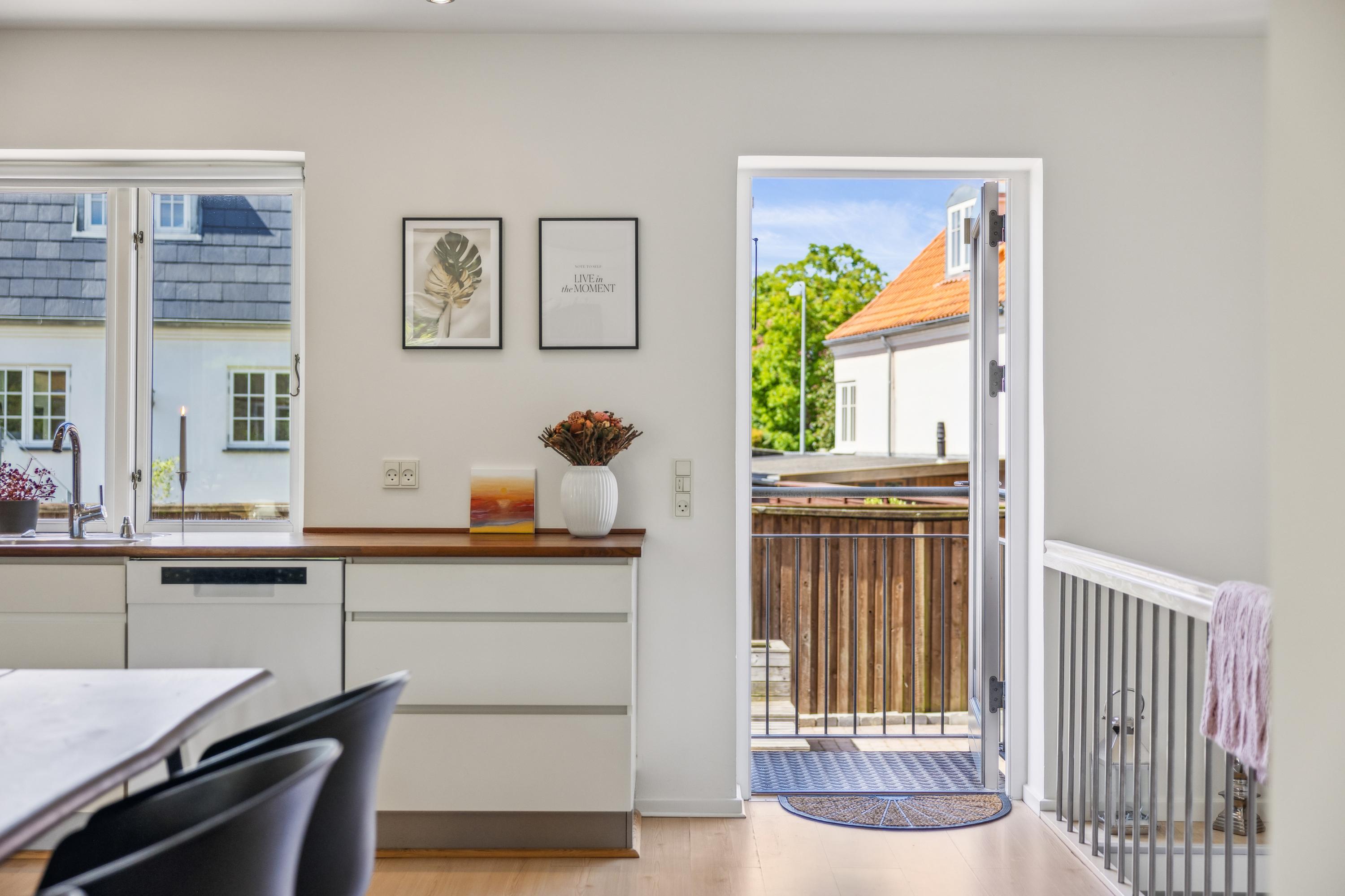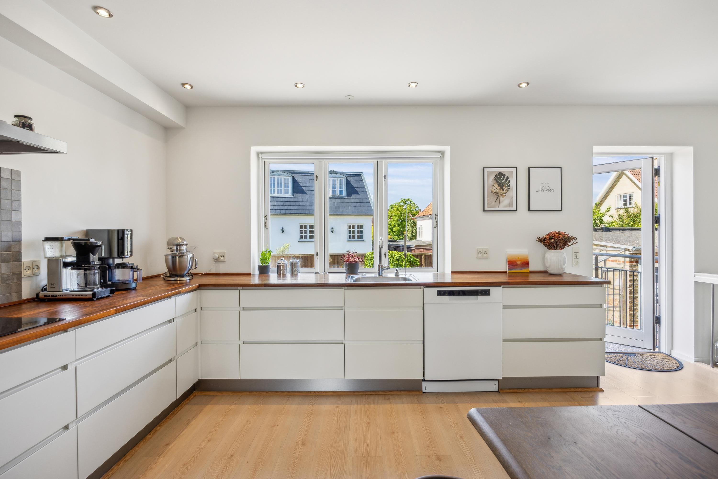 Velkommen til denne enestående ejerlejlighed, der strækker sig over hele 114 kvadratmeter i en smukt gennemrenoveret ejendom fra 1933. Her får du ikke blot et hjem, men en livsstil i hjertet af byen, hvor historie møder moderne komfort. Lejligheden byder på et stort køkken-alrum, der er ideelt for